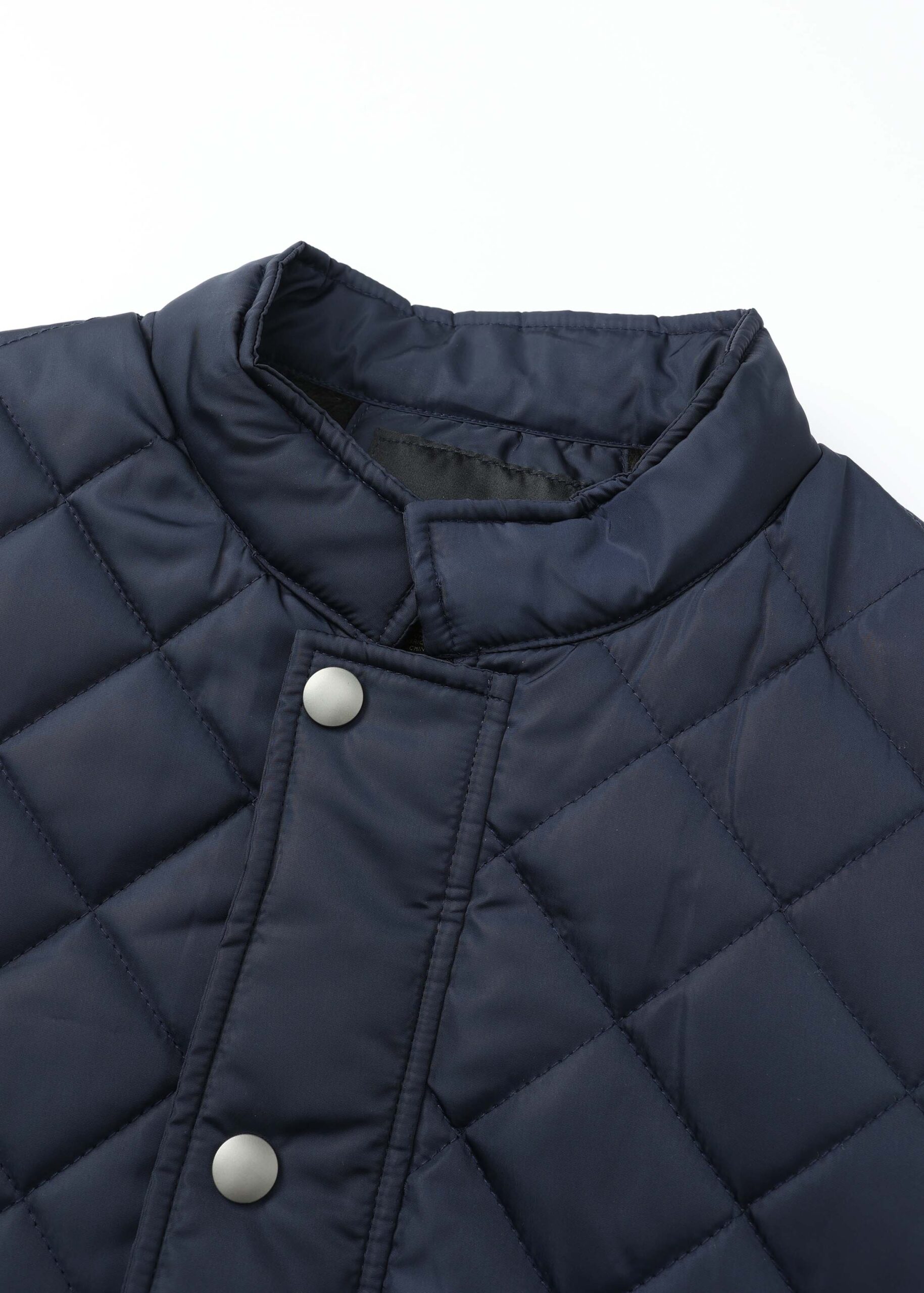 Men vest, padded, stand collar, sleeveless, front buttons and zipper closure, inner lining, front pockets, unique and warm