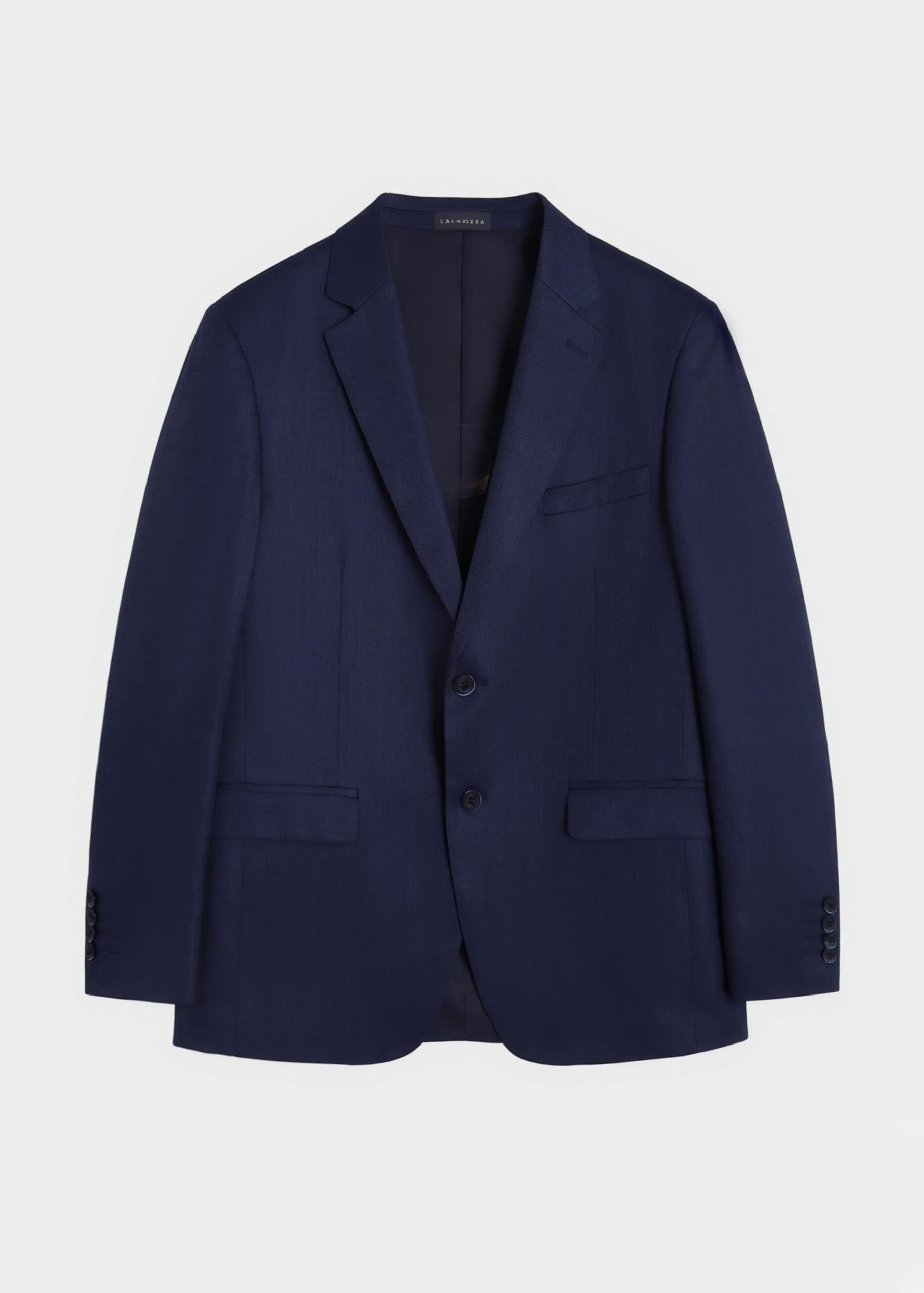 Men blazer, plain, lapel collar, long sleeves with buttoned cuffs, two-button fastening, chest pocket, front pockets, unique and modern