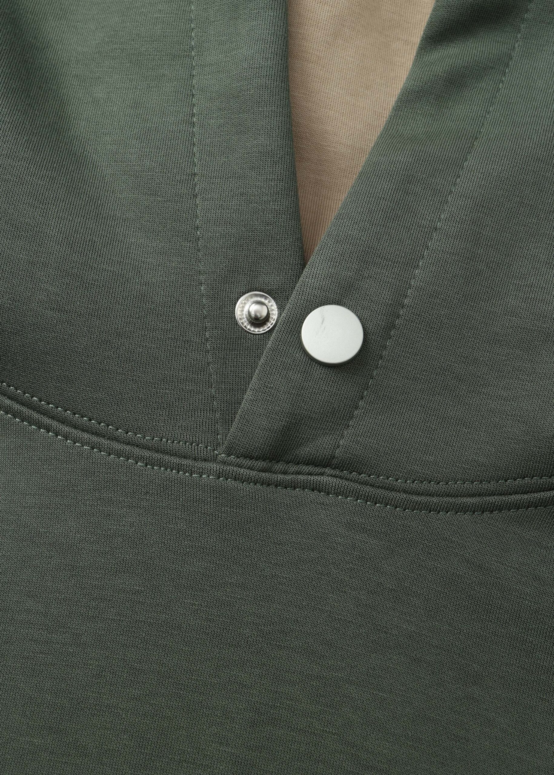 Men hoodie, plain, lined hood with front button, long sleeves with tight cuff, front pocket, unique and modern