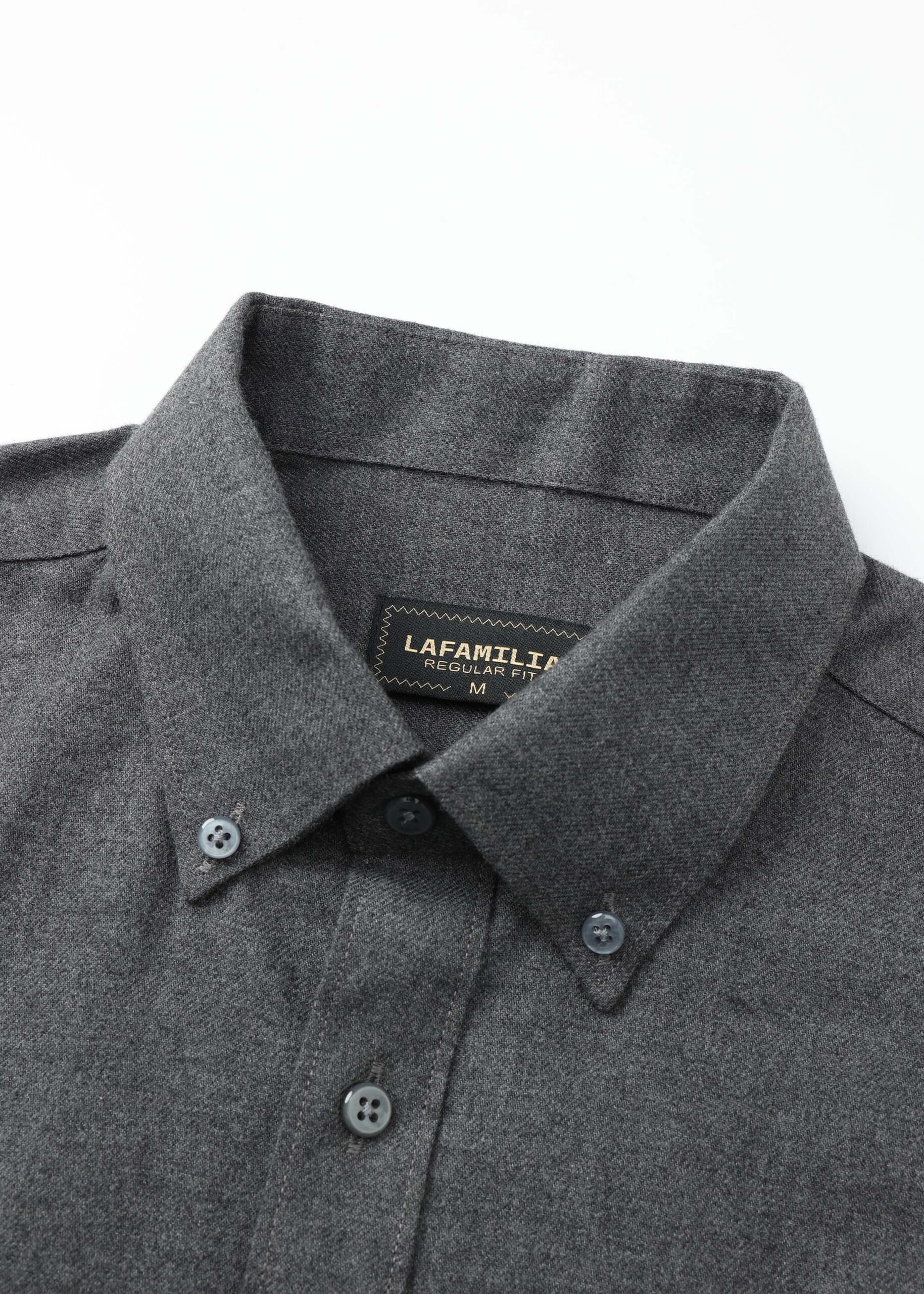 Men shirt, plain, regular-fit, rolled collar with front button, long sleeves, tight cuff with buttons, front buttons to close, unique and modern