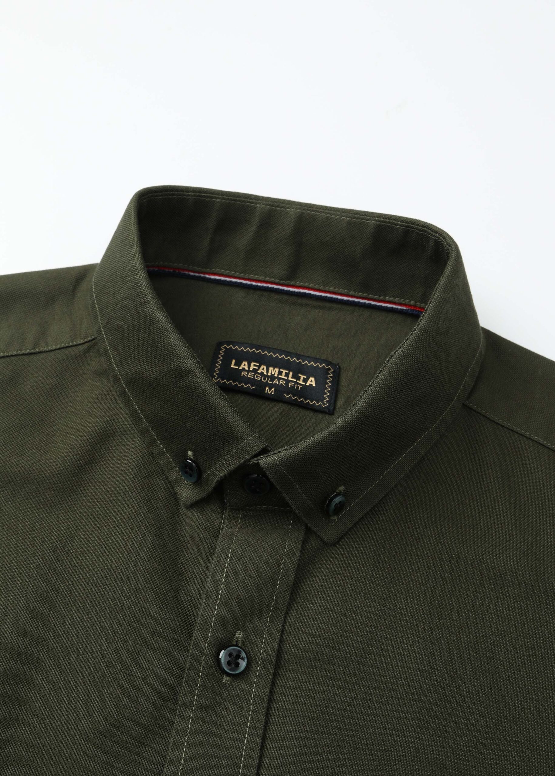 Men shirt, plain, regular-fit, rolled collar with front button, long sleeves, tight cuff with buttons, front buttons to close, front pocket, unique and modern
