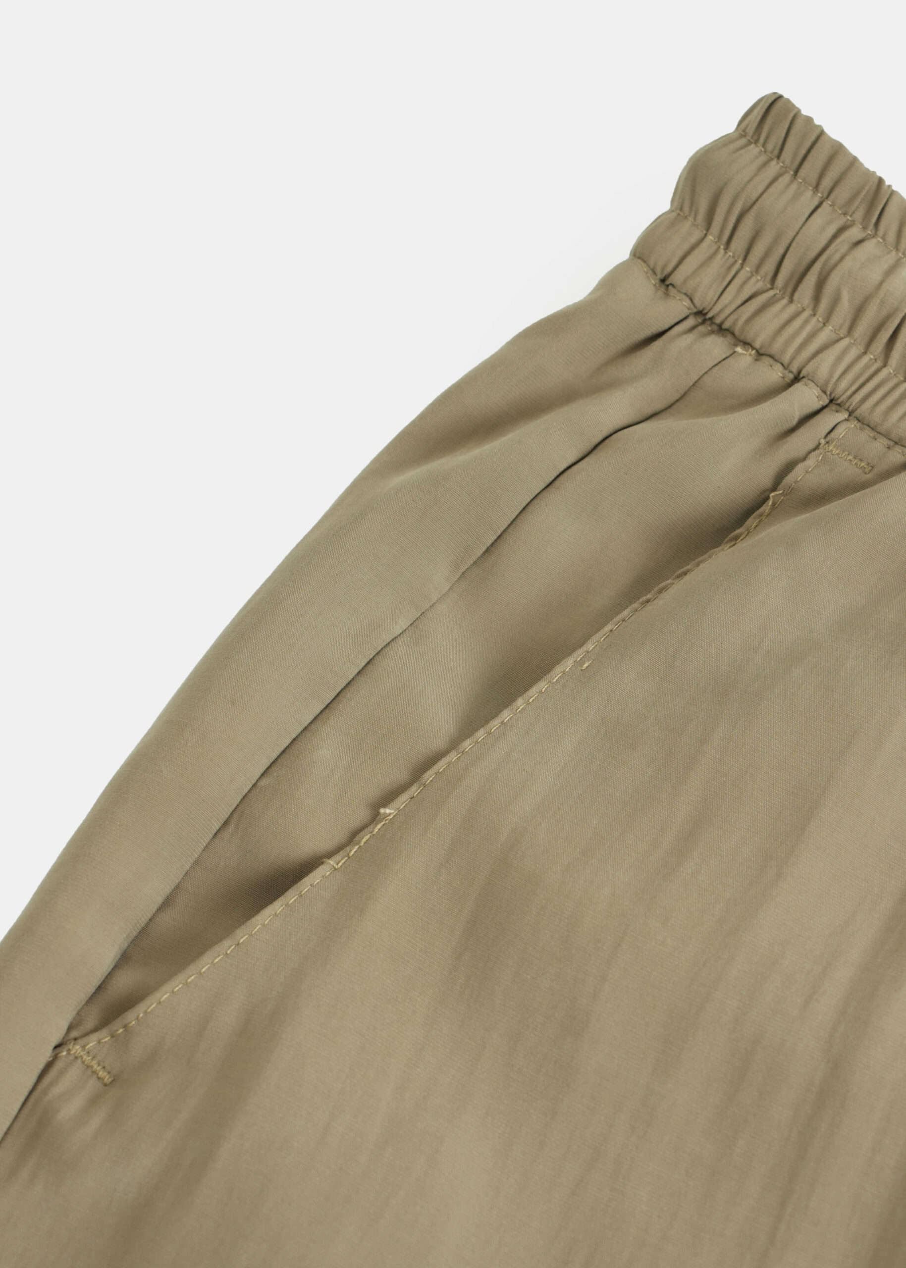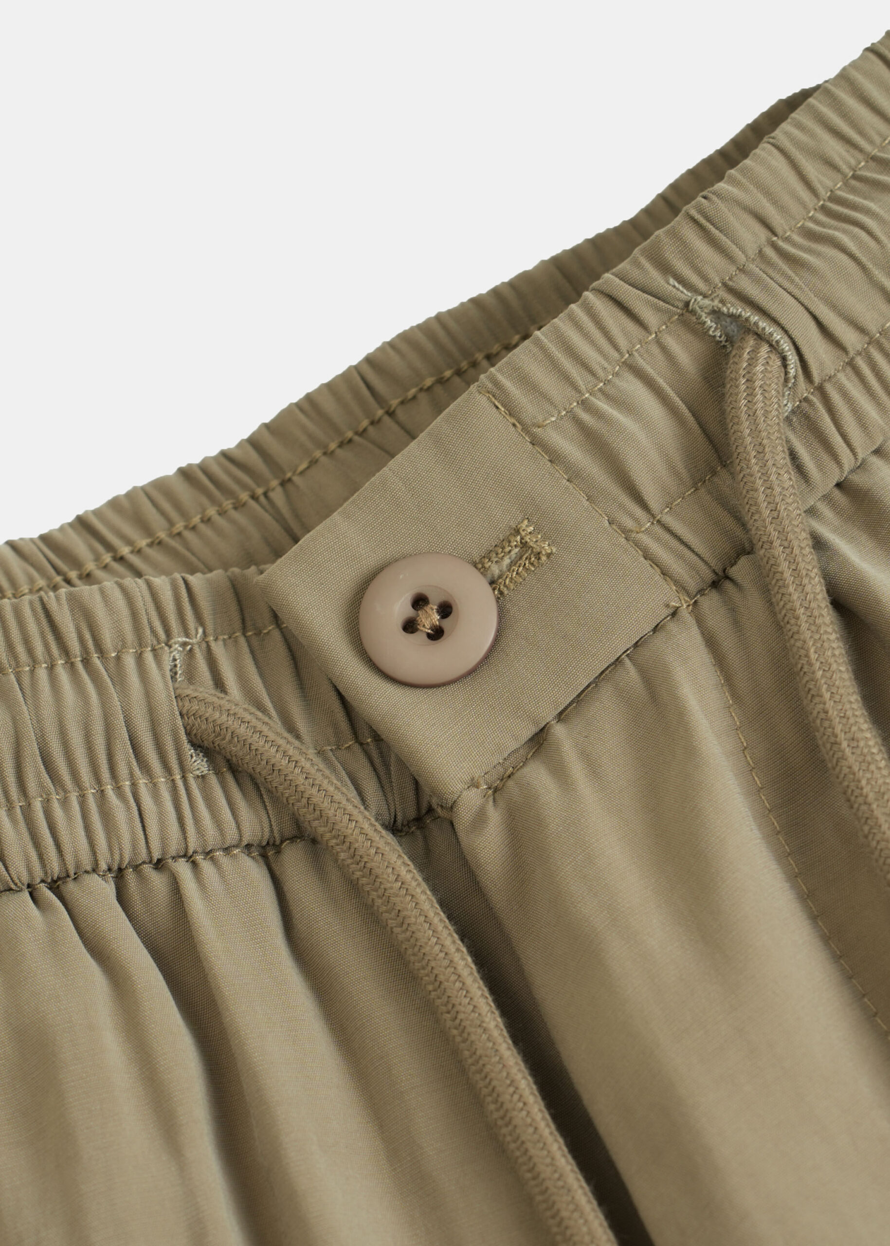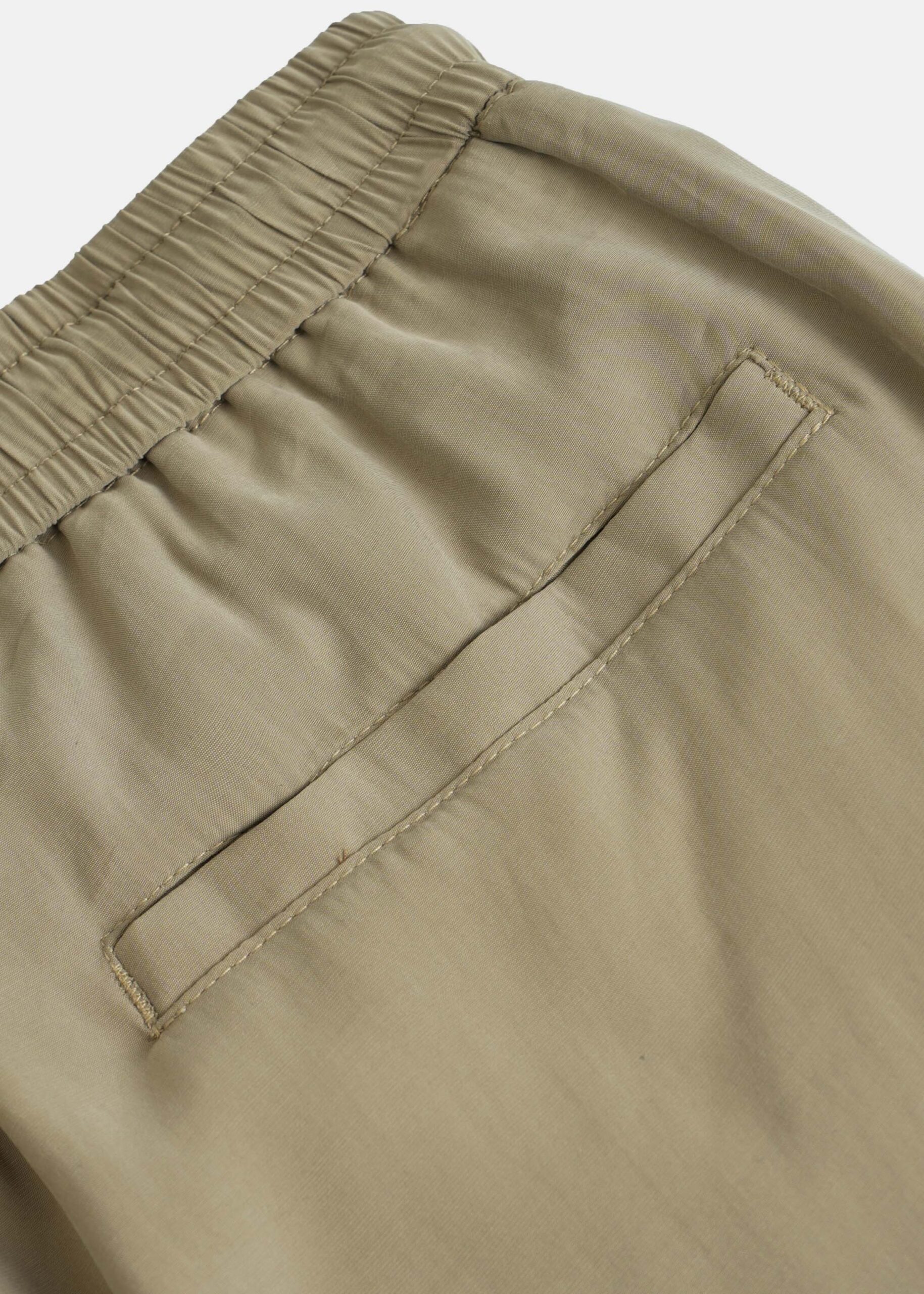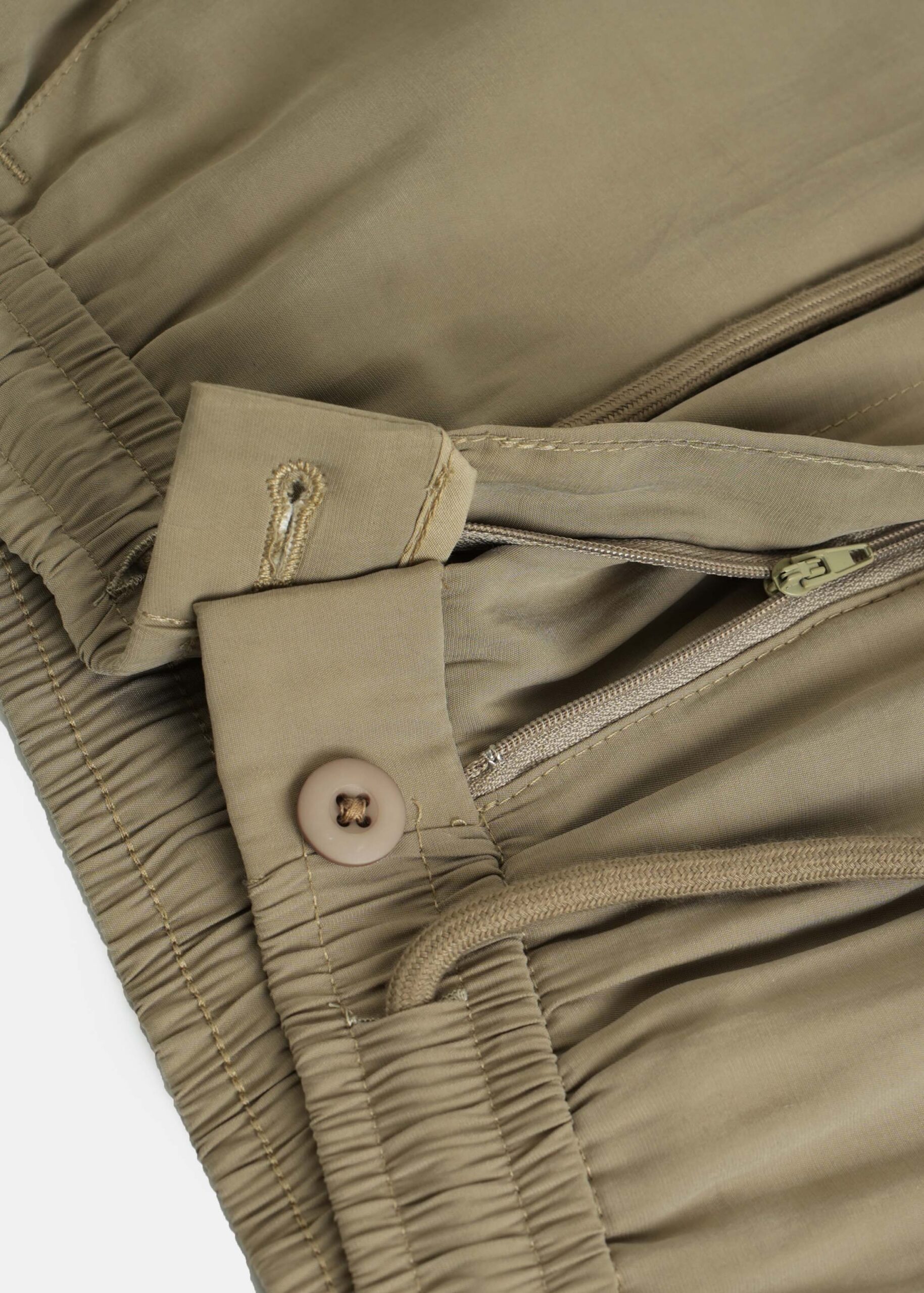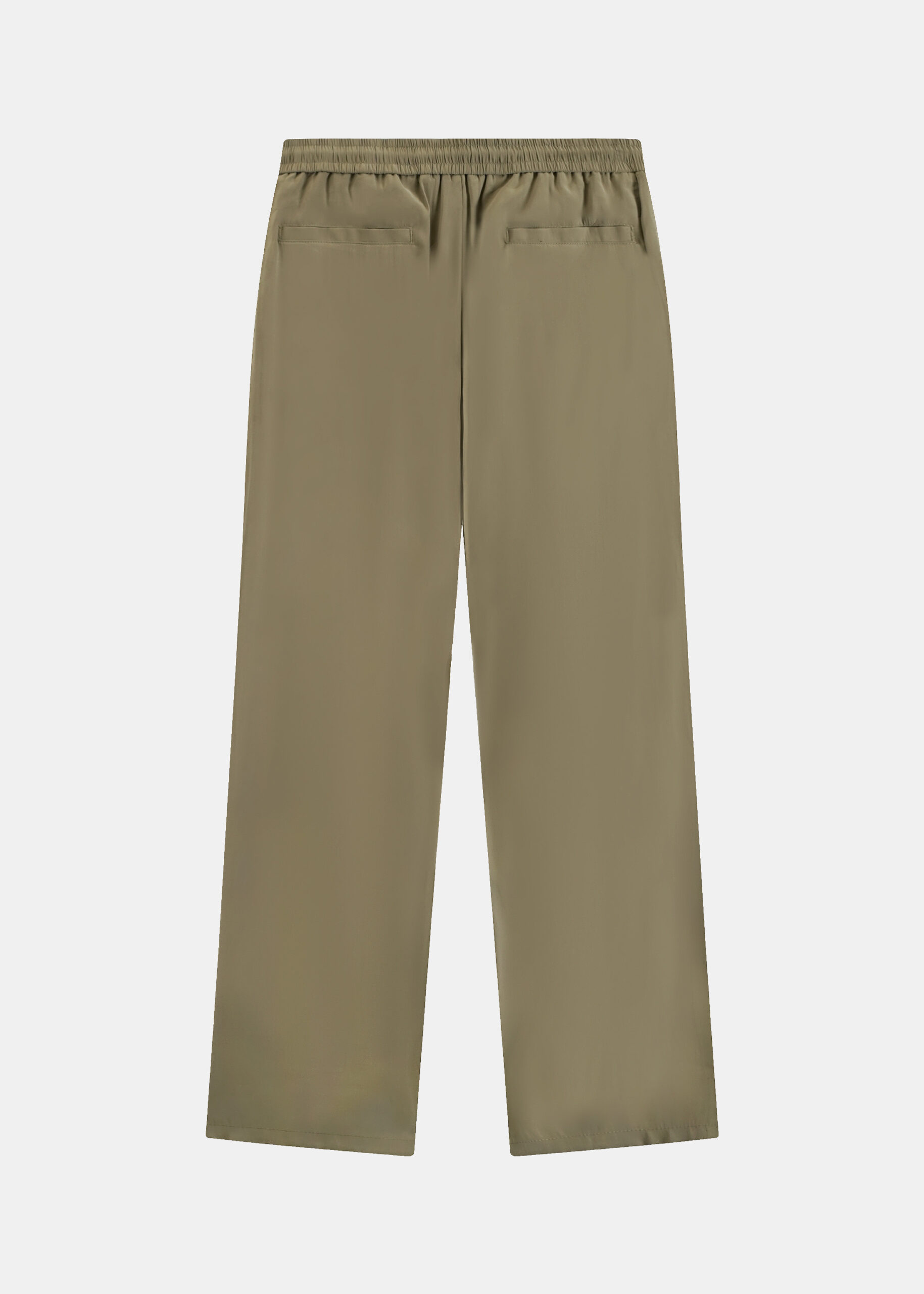 Men trouser, plain, loose, elastic waist with front tie, front zipper closure and button, front and back pockets, practical and comfortable