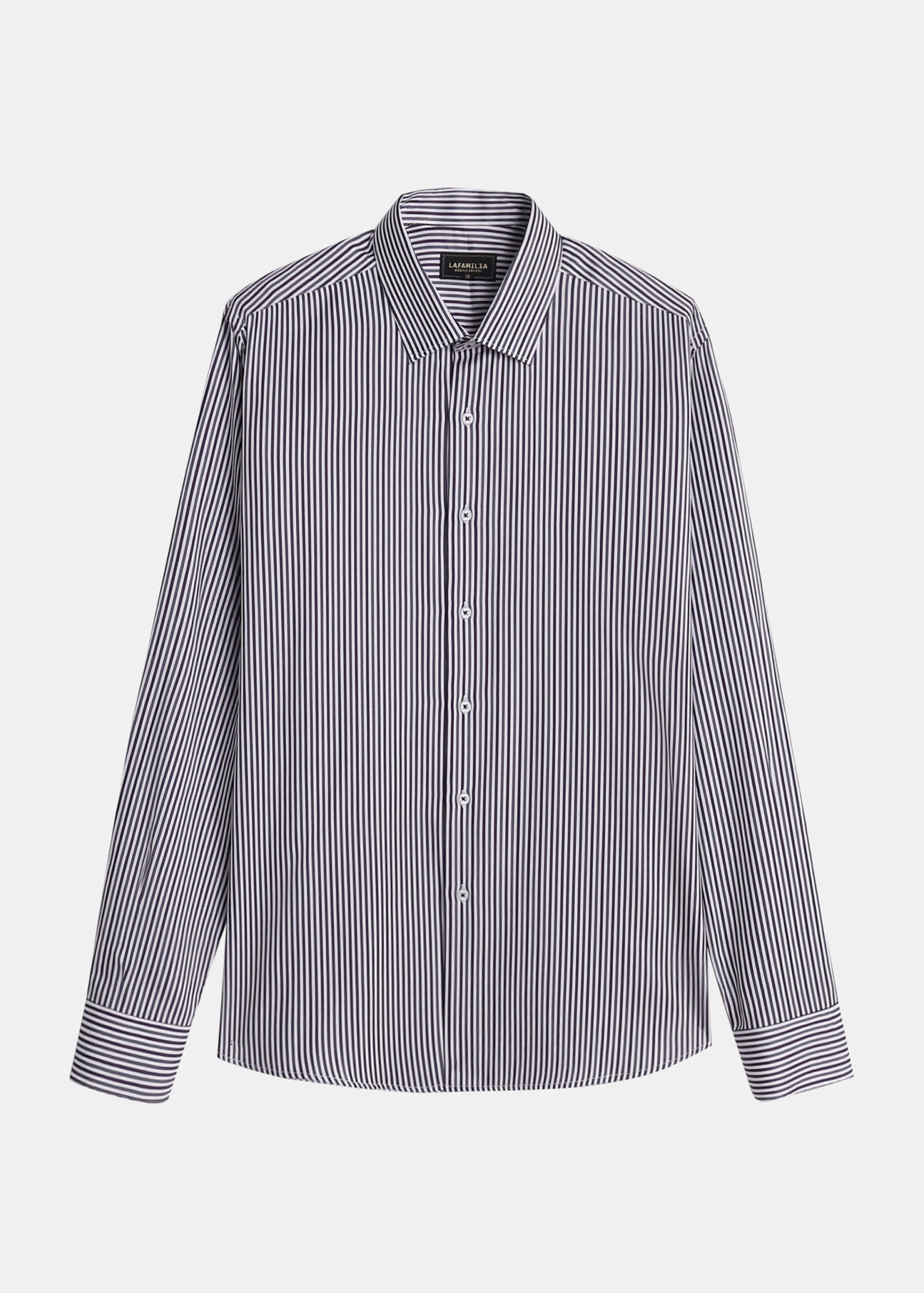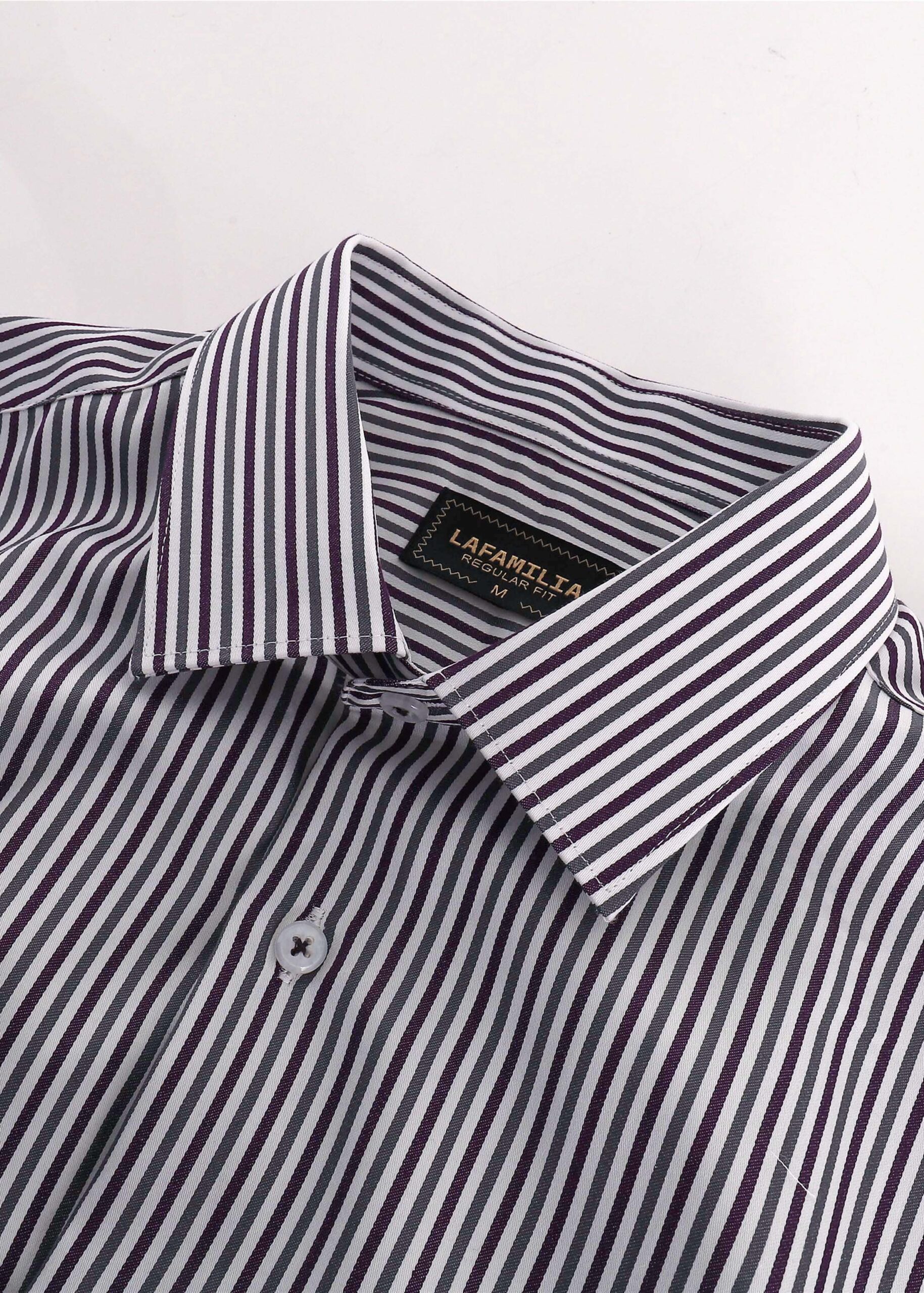 Men shirt, regular-fit, striped, rolled collar, front buttons to close, long sleeves with buttoned cuffs, unique and modern