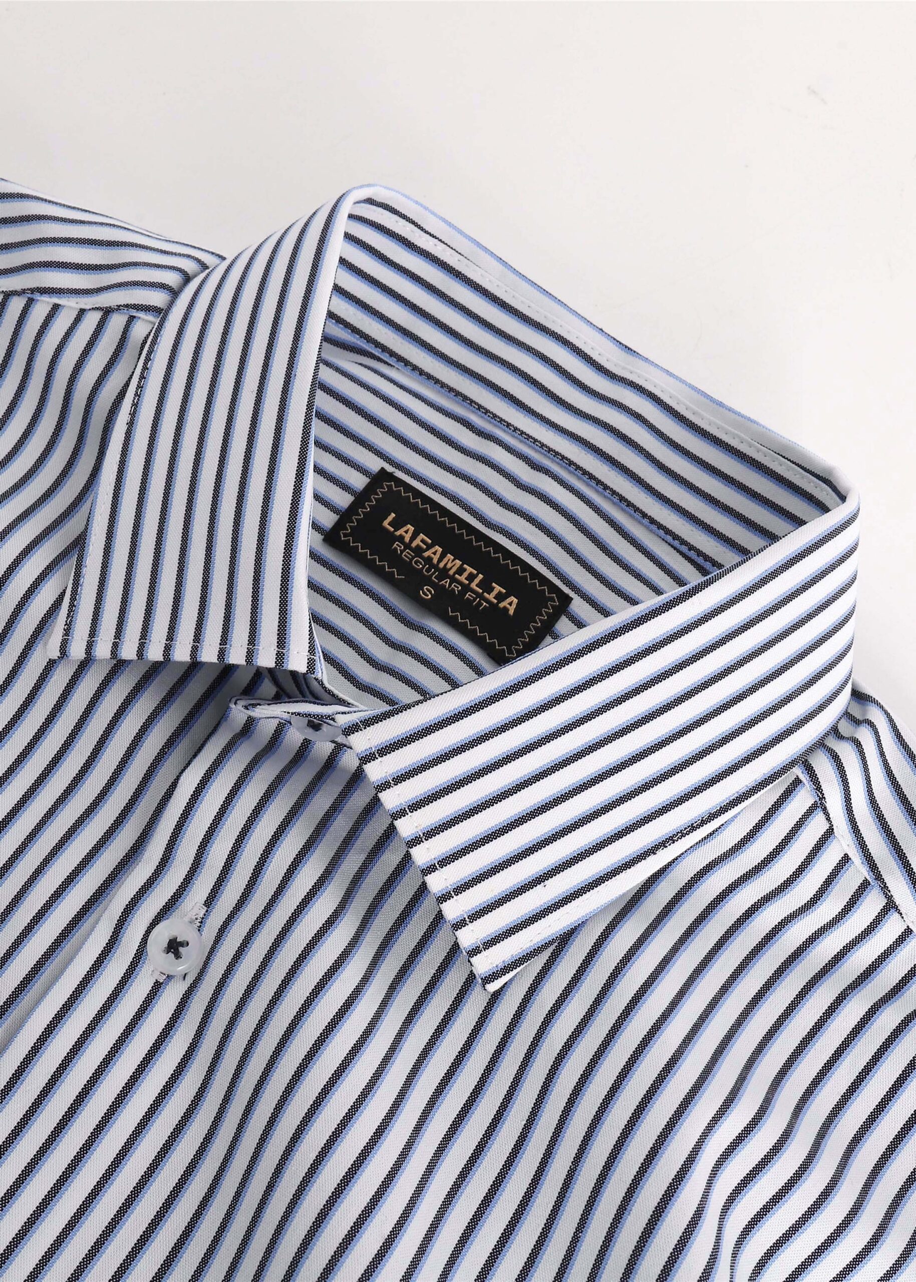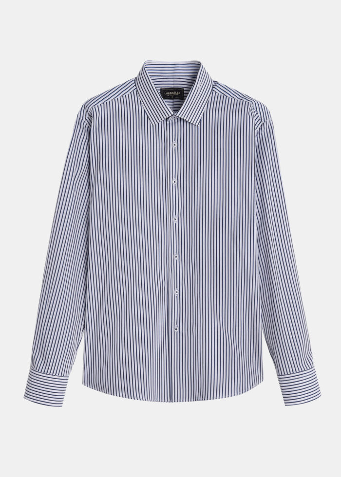 Men shirt, regular-fit, striped, rolled collar, front buttons to close, long sleeves with buttoned cuffs, unique and modern