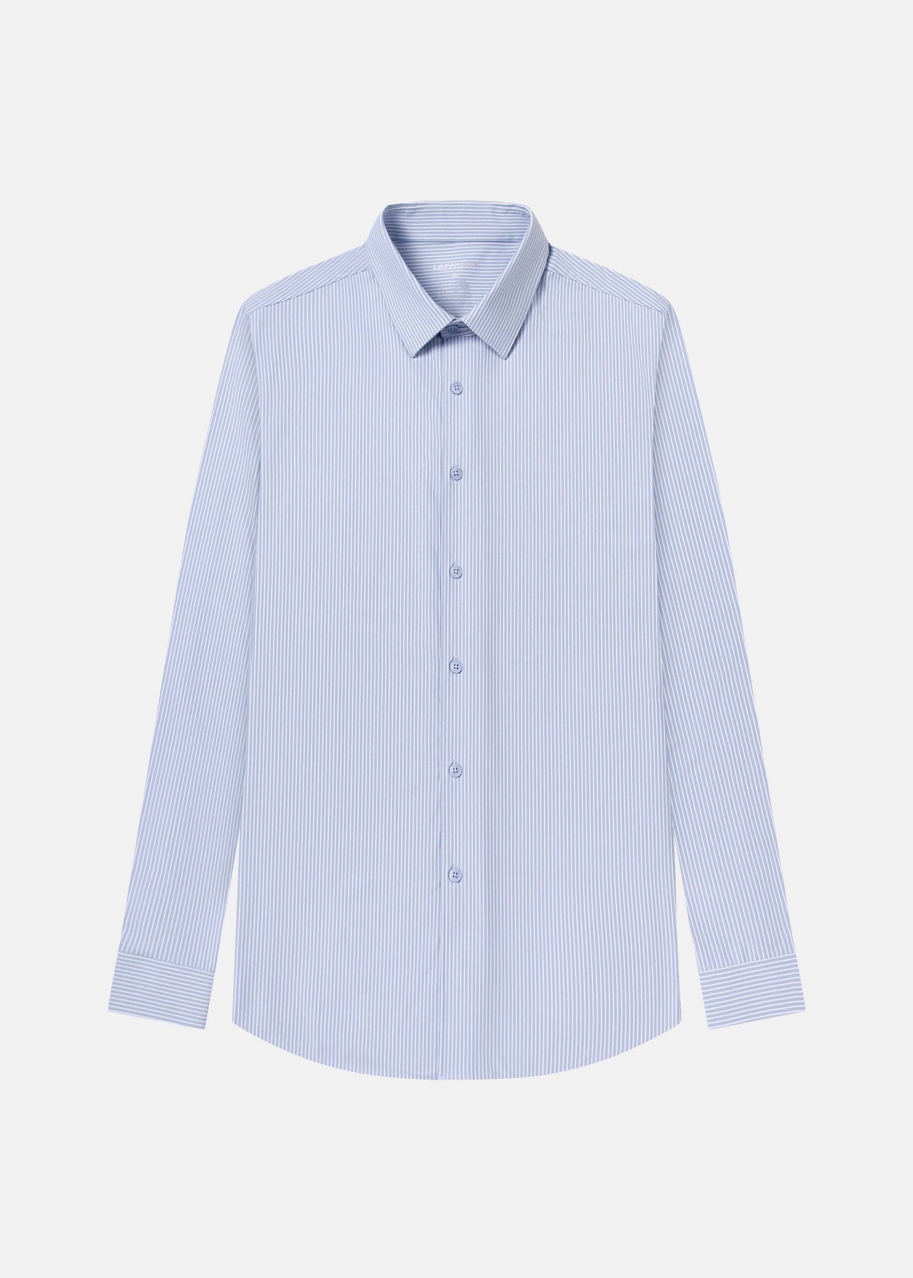 Men shirt, regular-fit, striped, rolled collar, front buttons to close, long sleeves with tight cuff, unique and modern