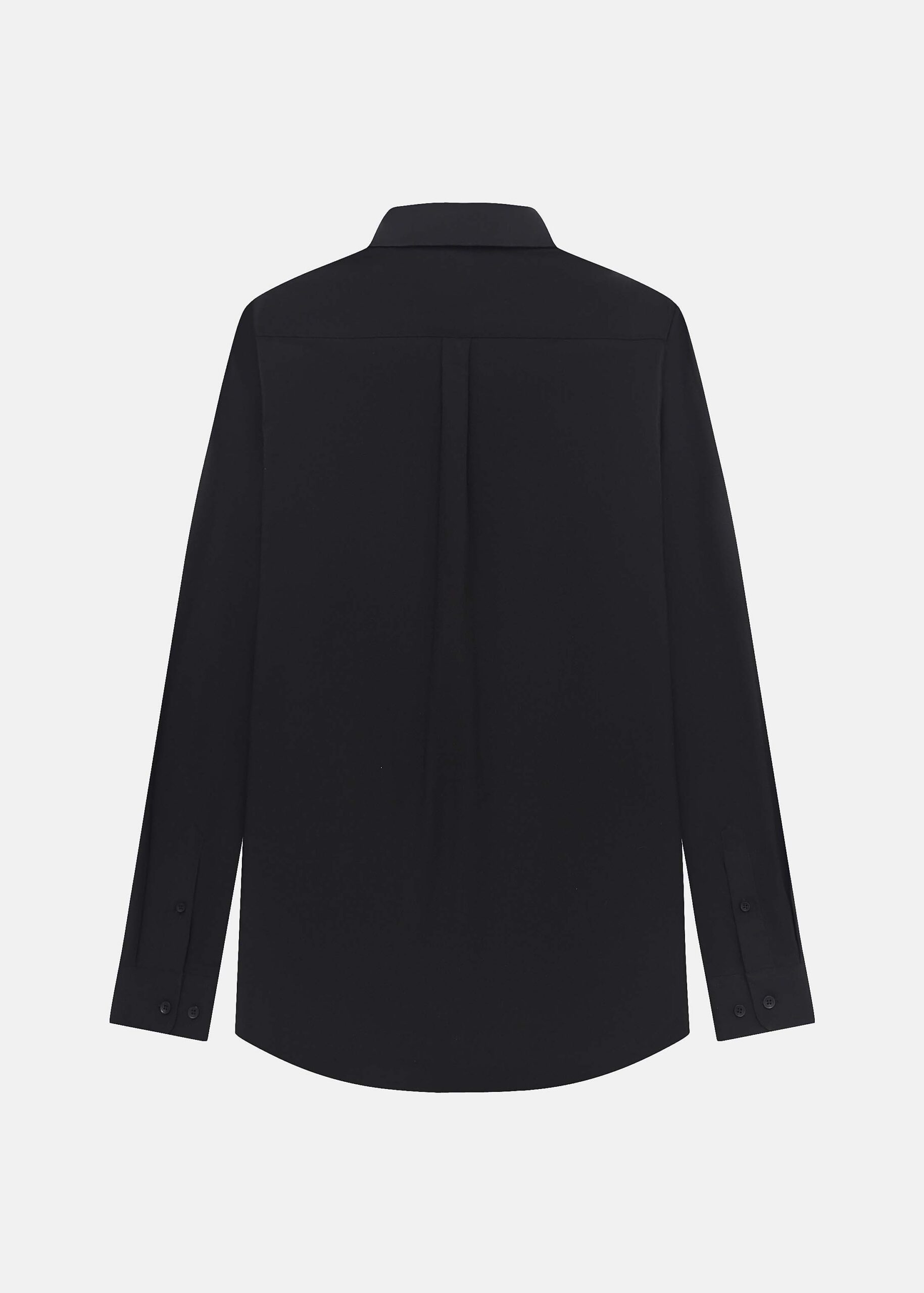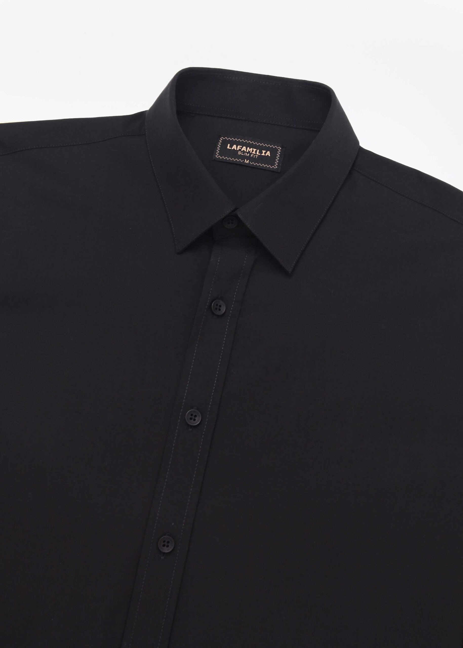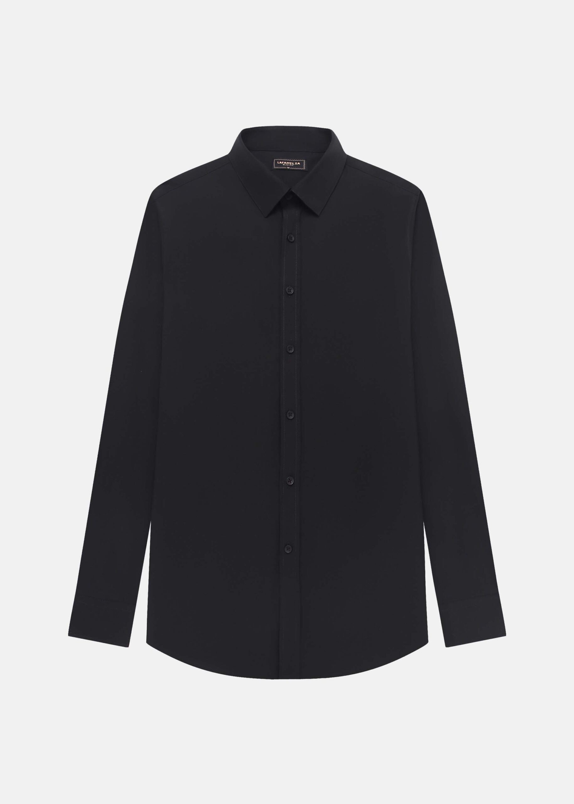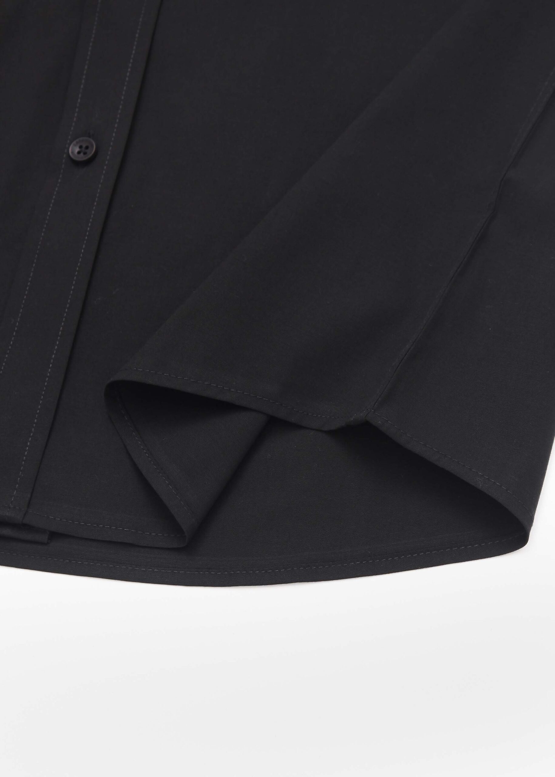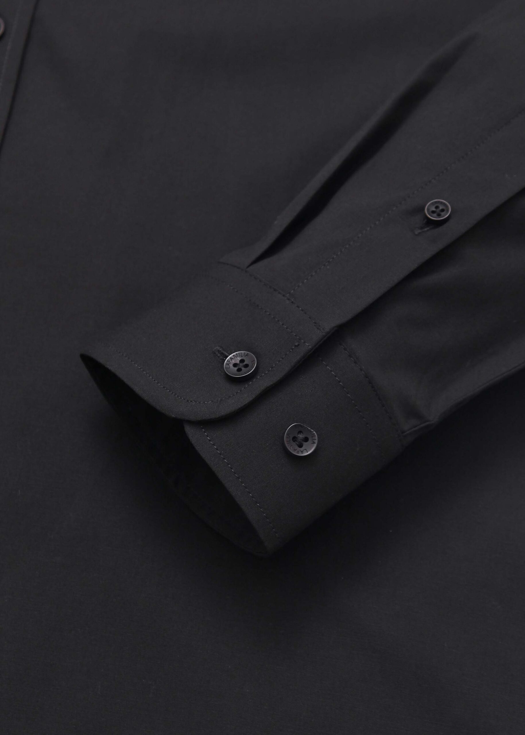 Men shirt, slim-fit, plain, rolled collar, front buttons to close, long sleeves with tight cuff, unique and modern