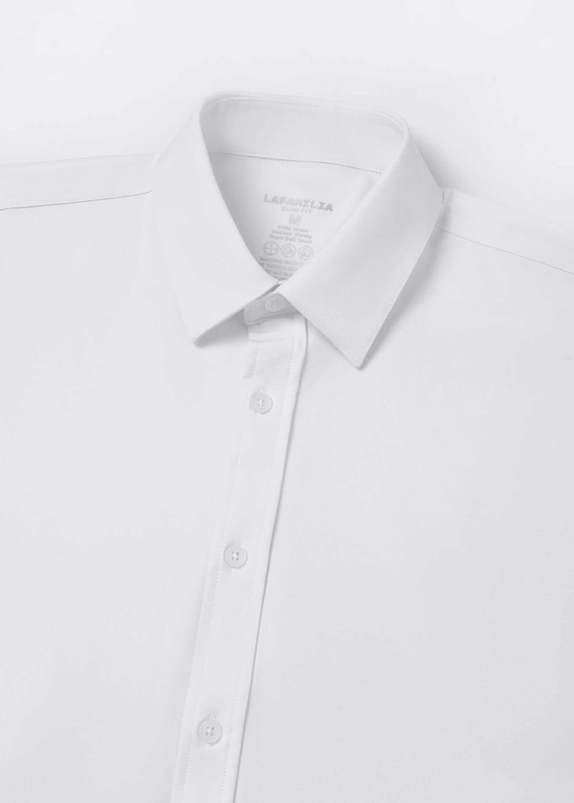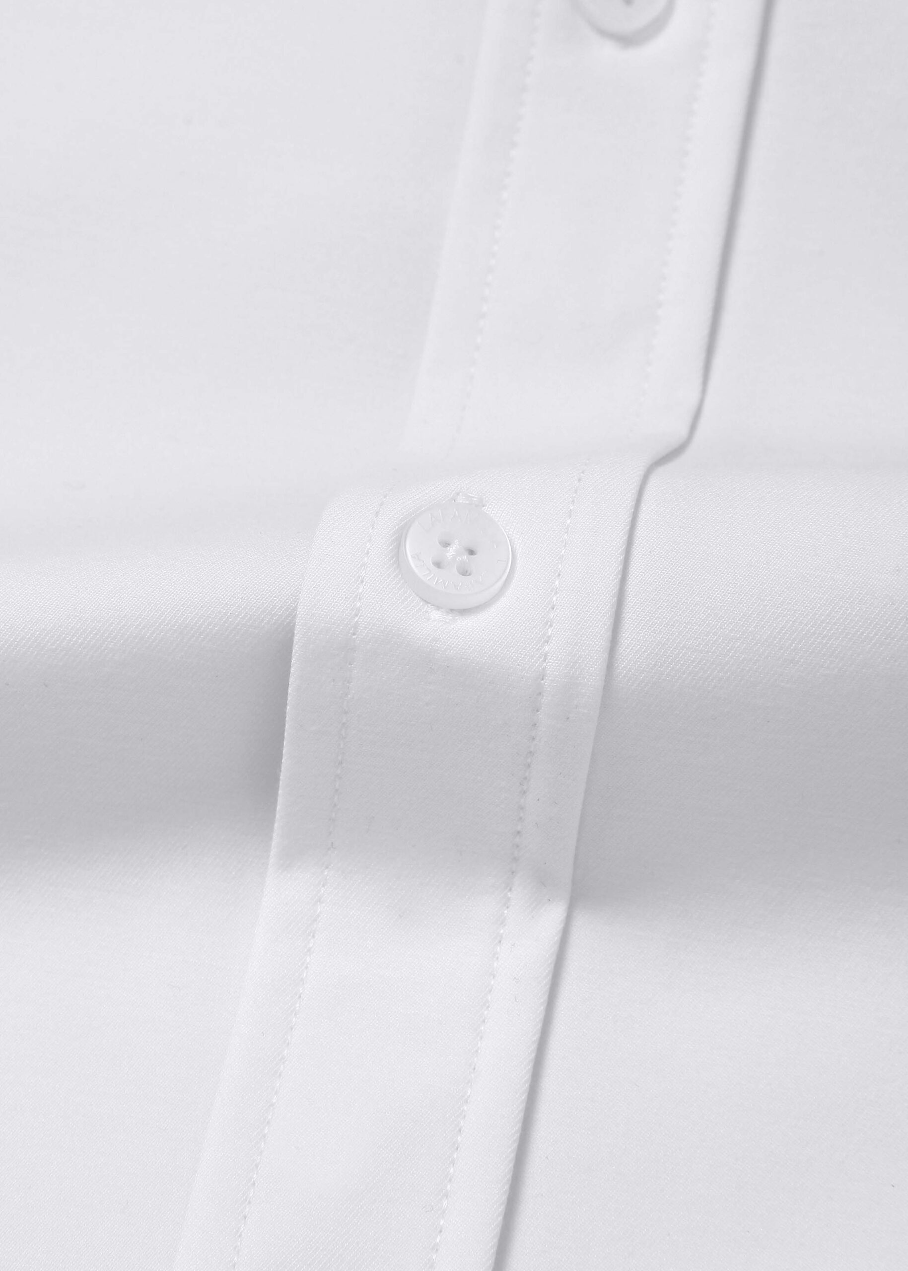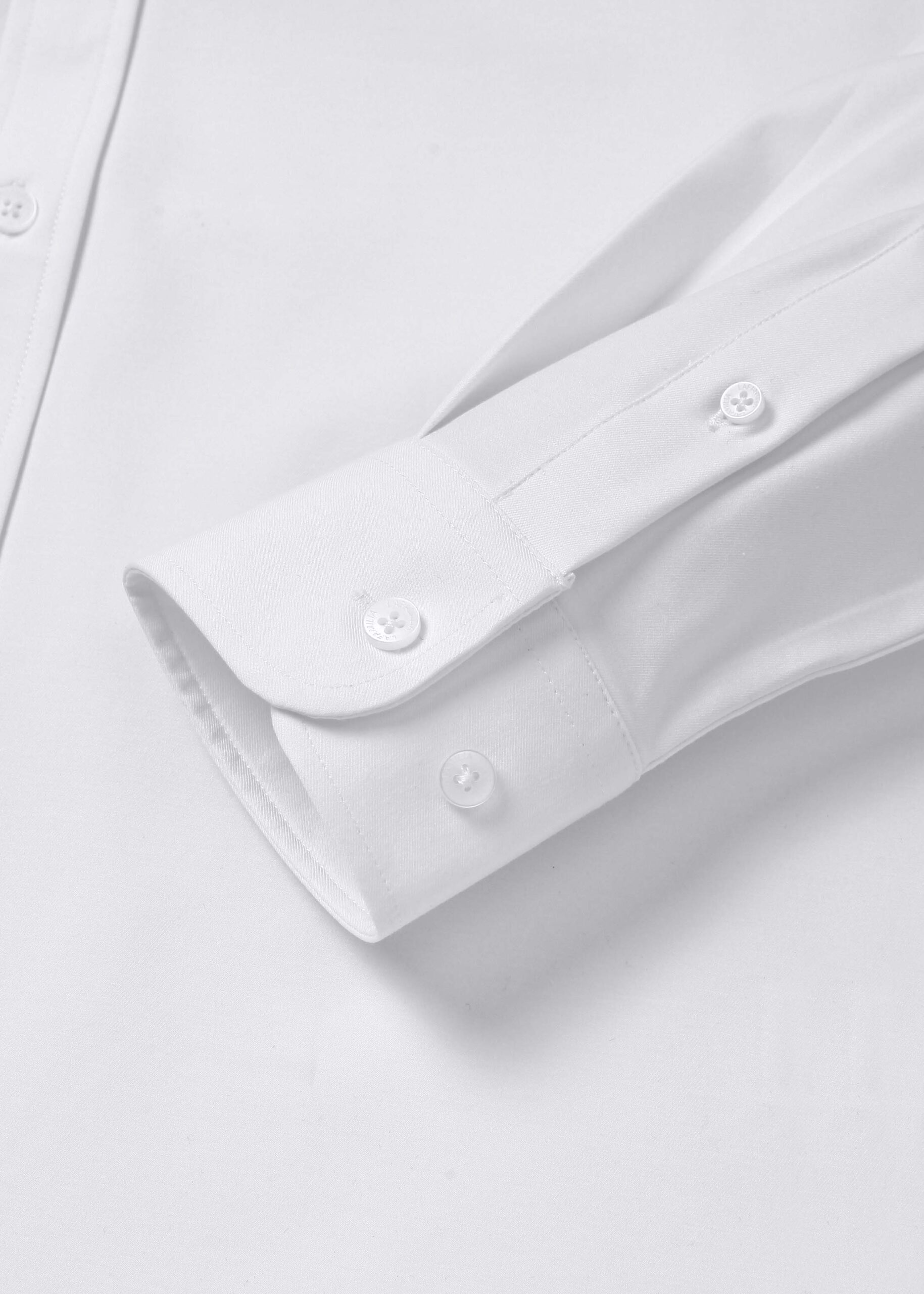 Men shirt, slim-fit, plain, rolled collar, front buttons to close, long sleeves with tight cuff, unique and modern