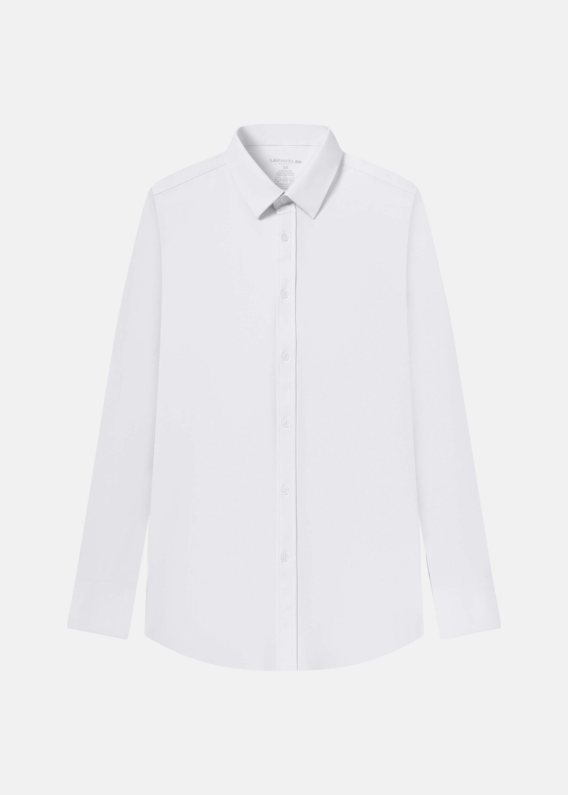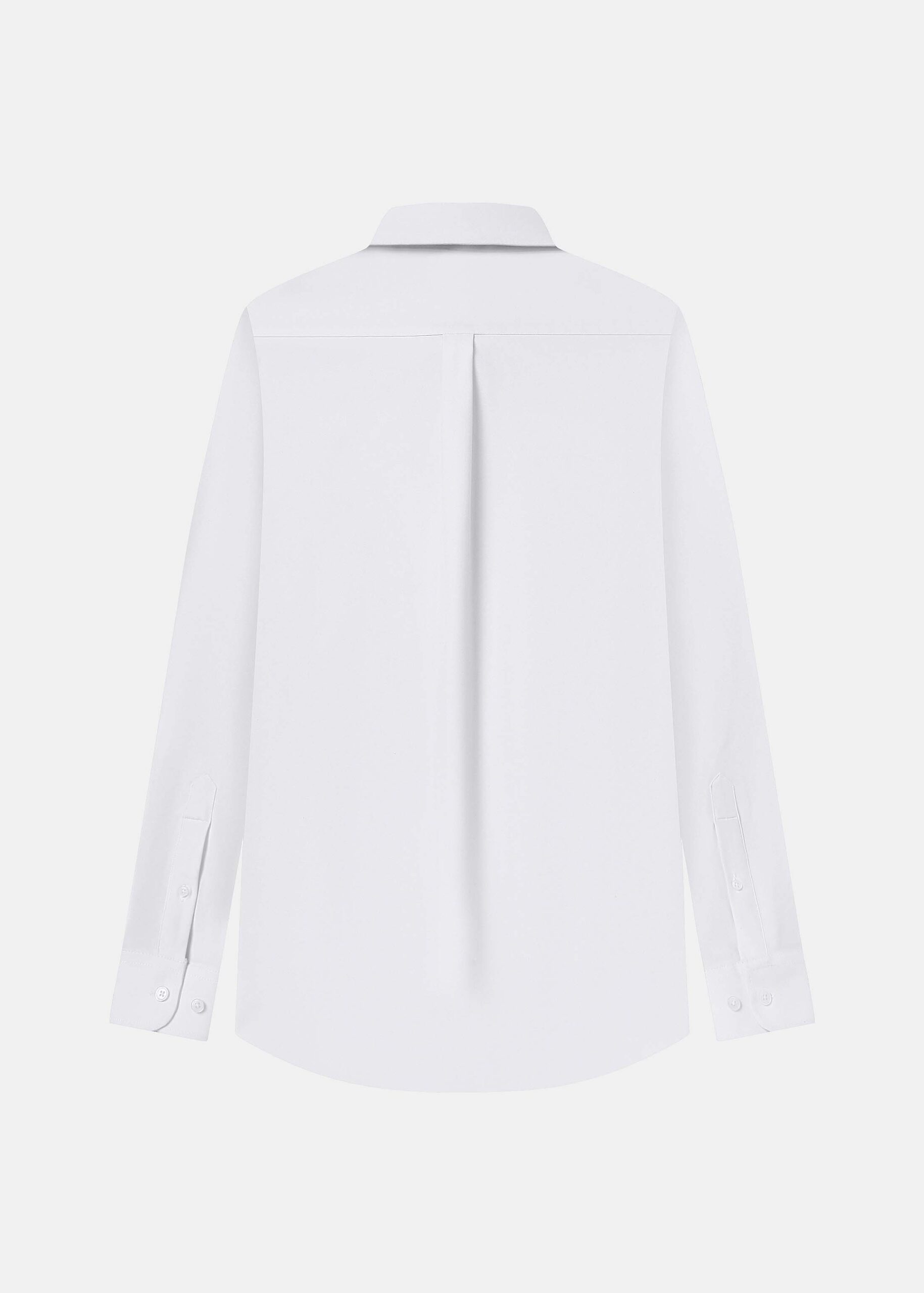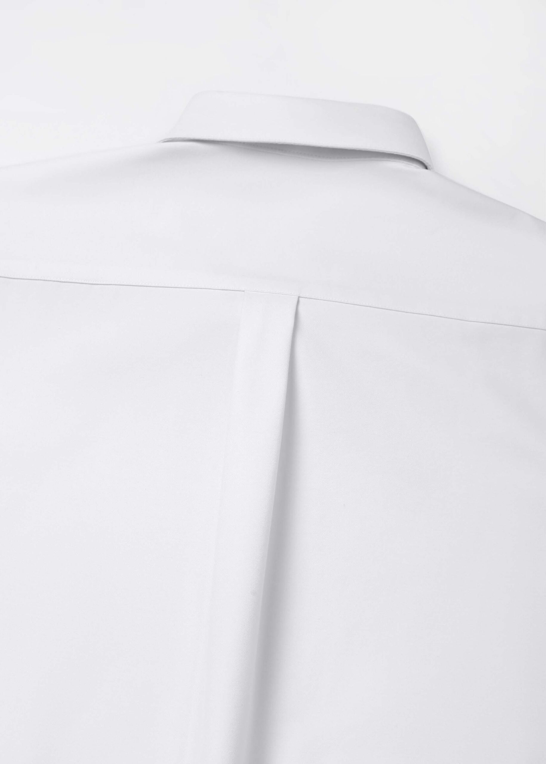 Men shirt, slim-fit, plain, rolled collar, front buttons to close, long sleeves with tight cuff, unique and modern