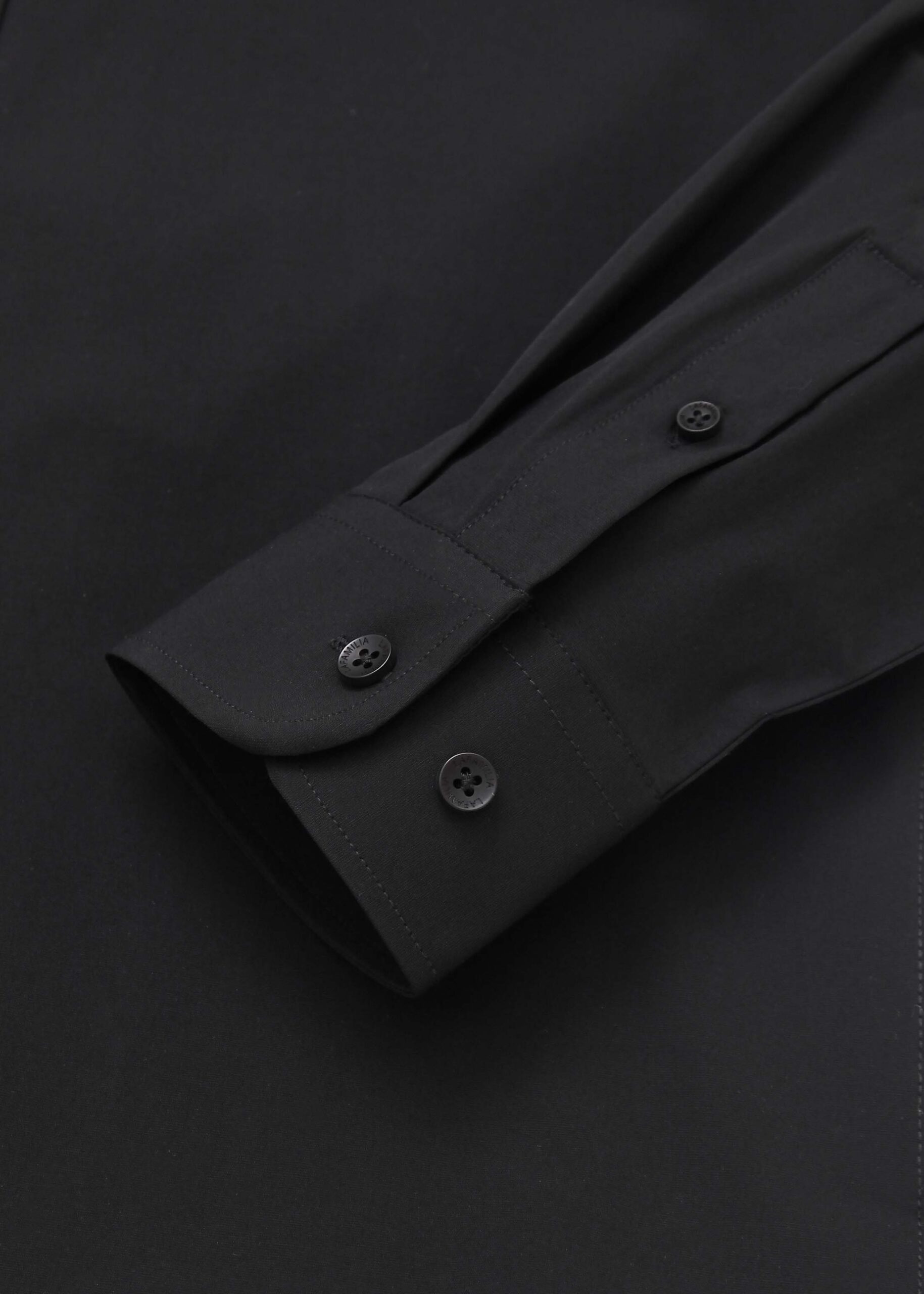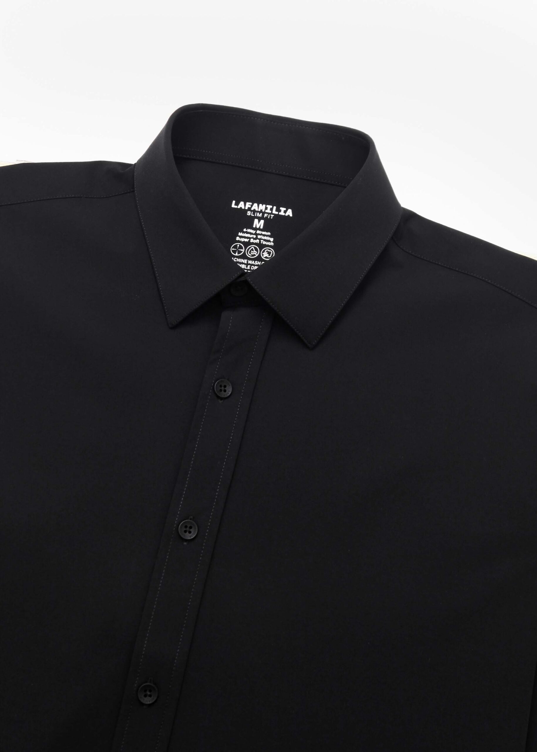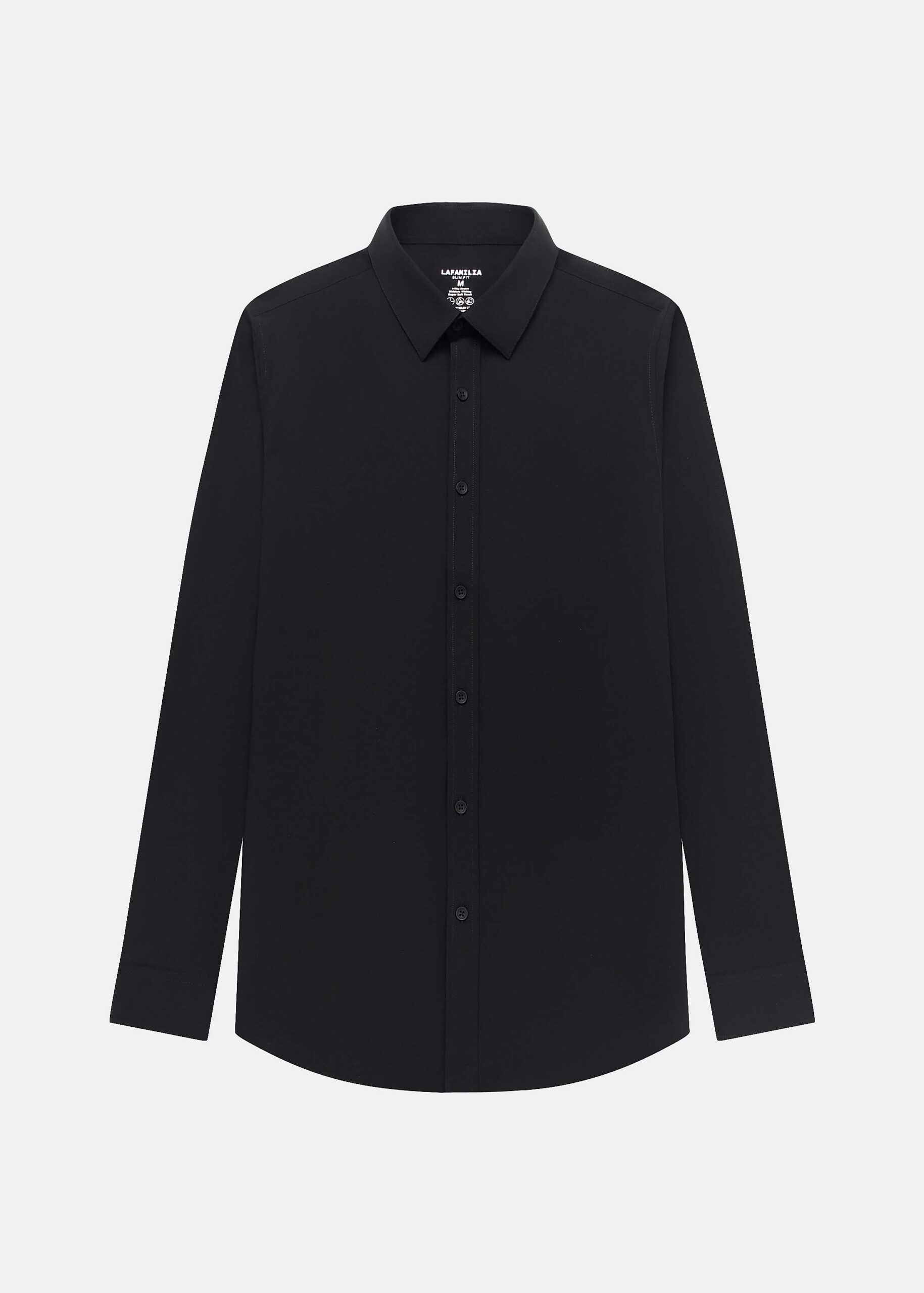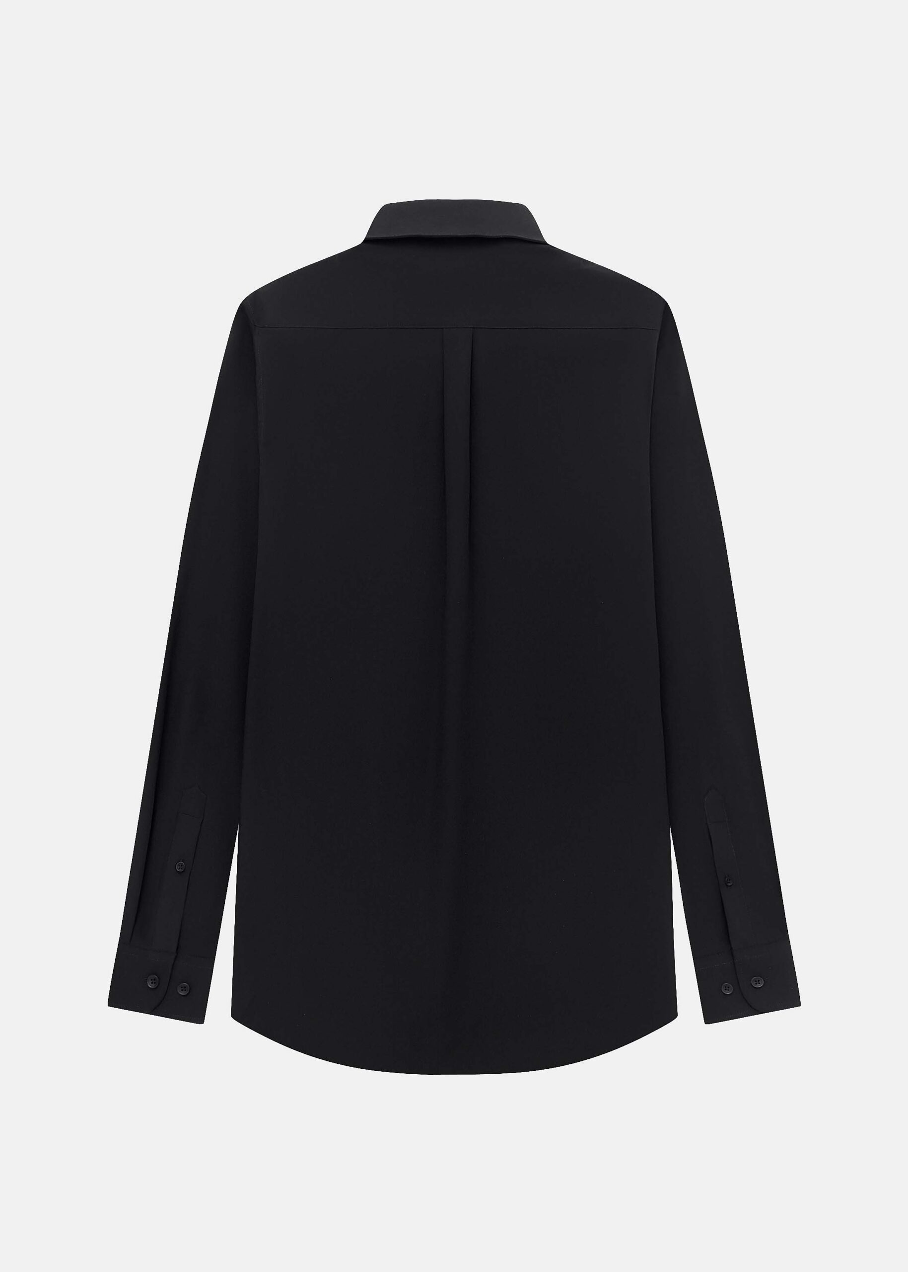 Men shirt, slim-fit, plain, rolled collar, front buttons to close, long sleeves with tight cuff, unique and modern