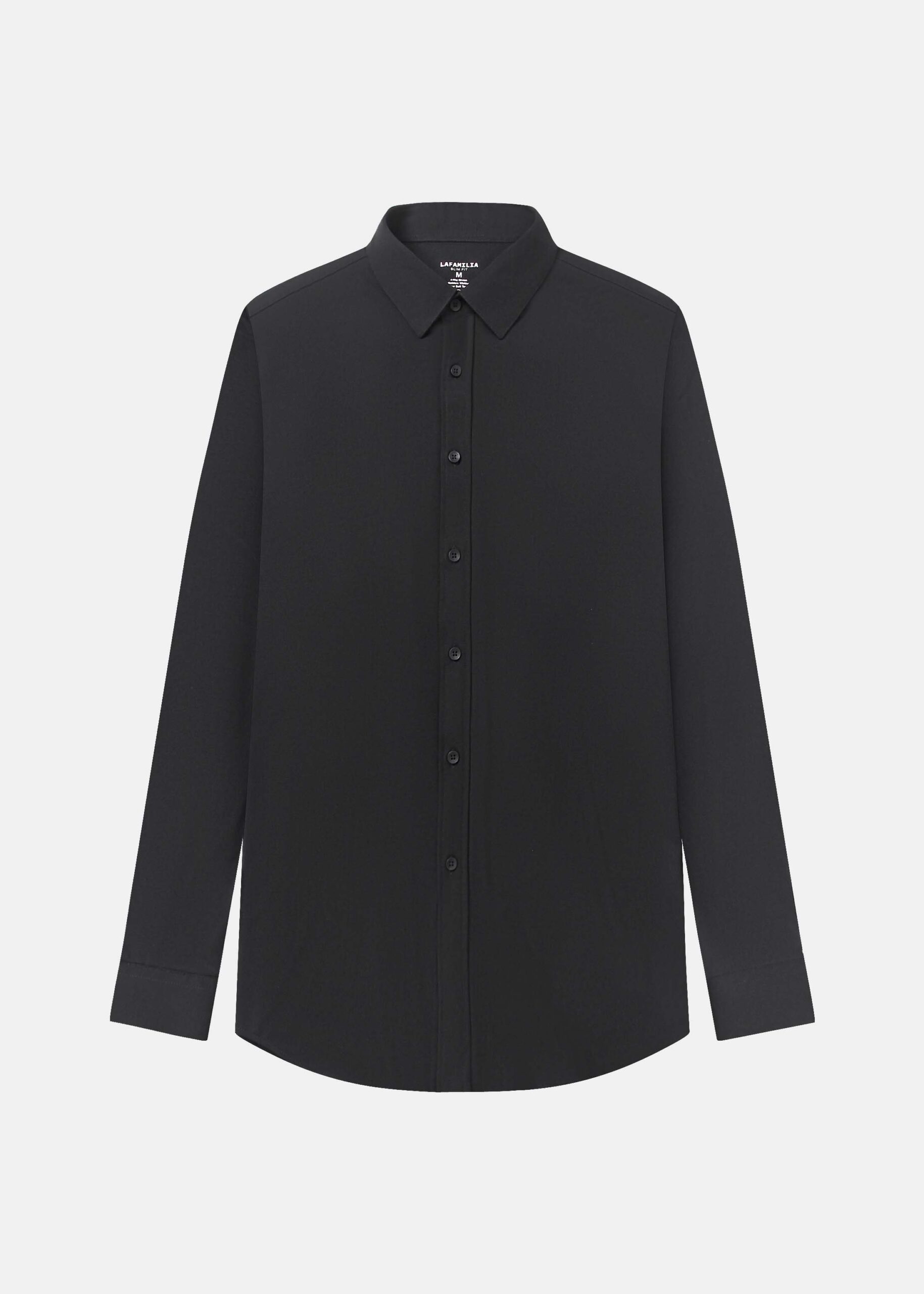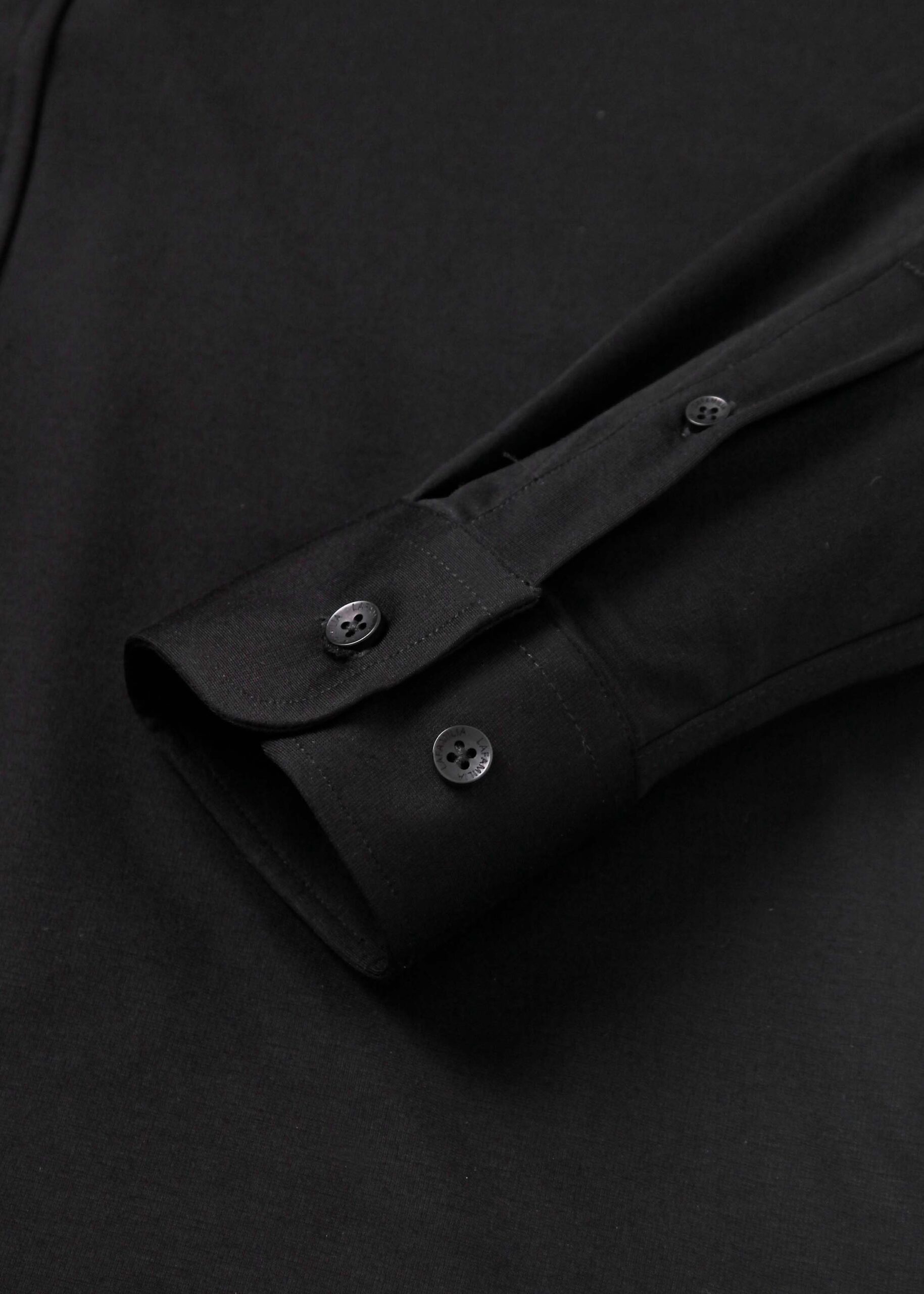 Men shirt, slim-fit, plain, rolled collar, front buttons to close, long sleeves with tight cuff, unique and modern