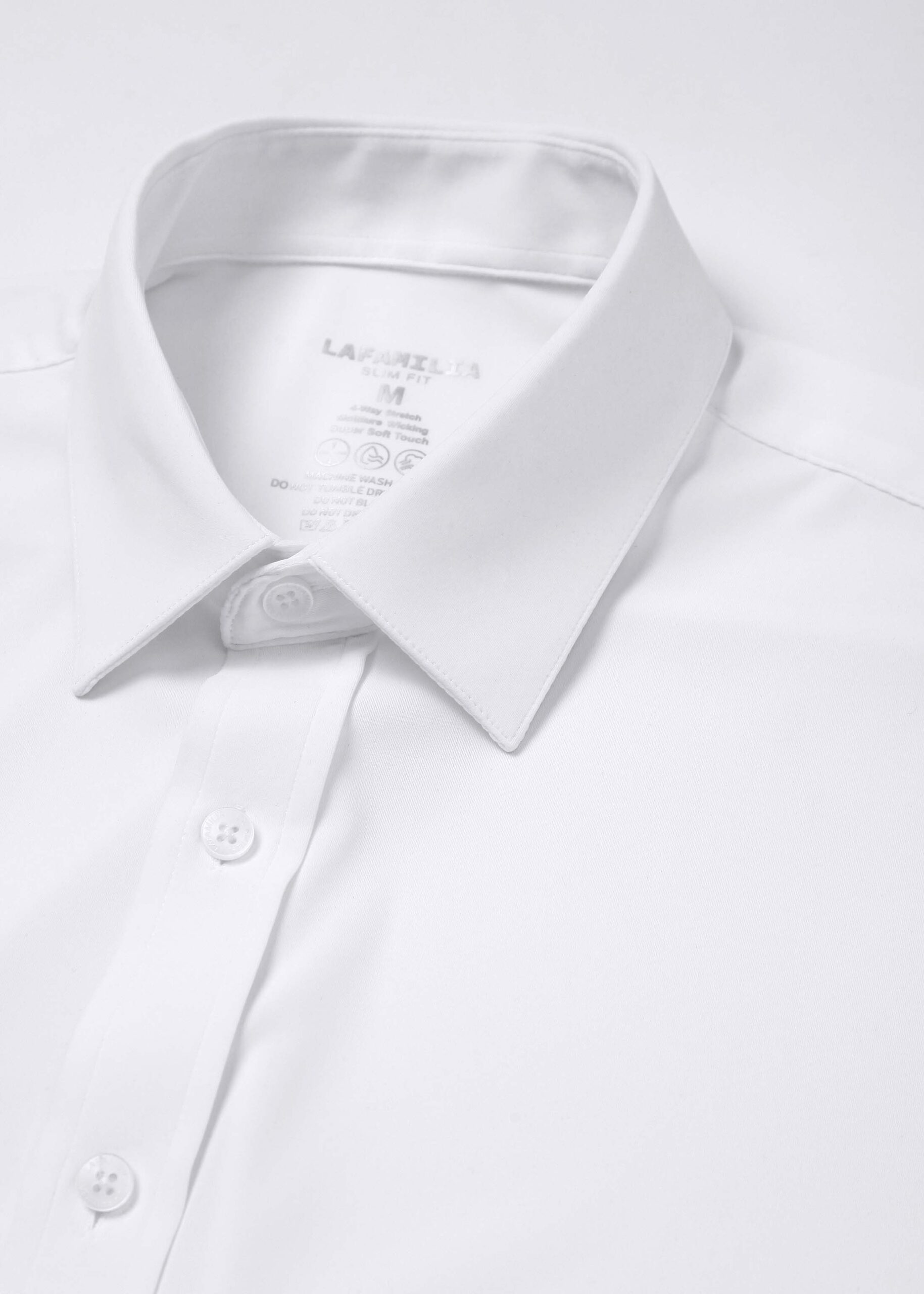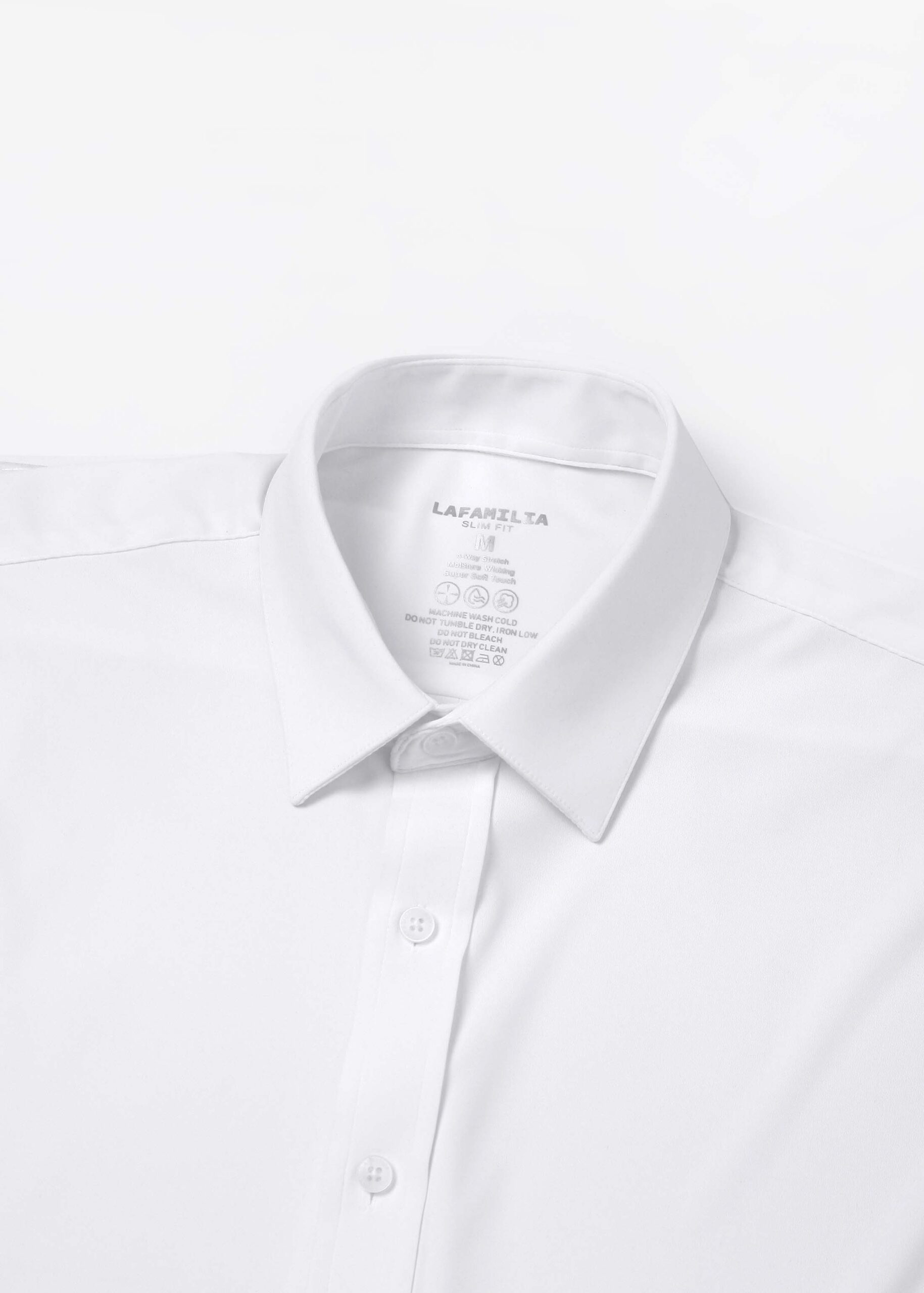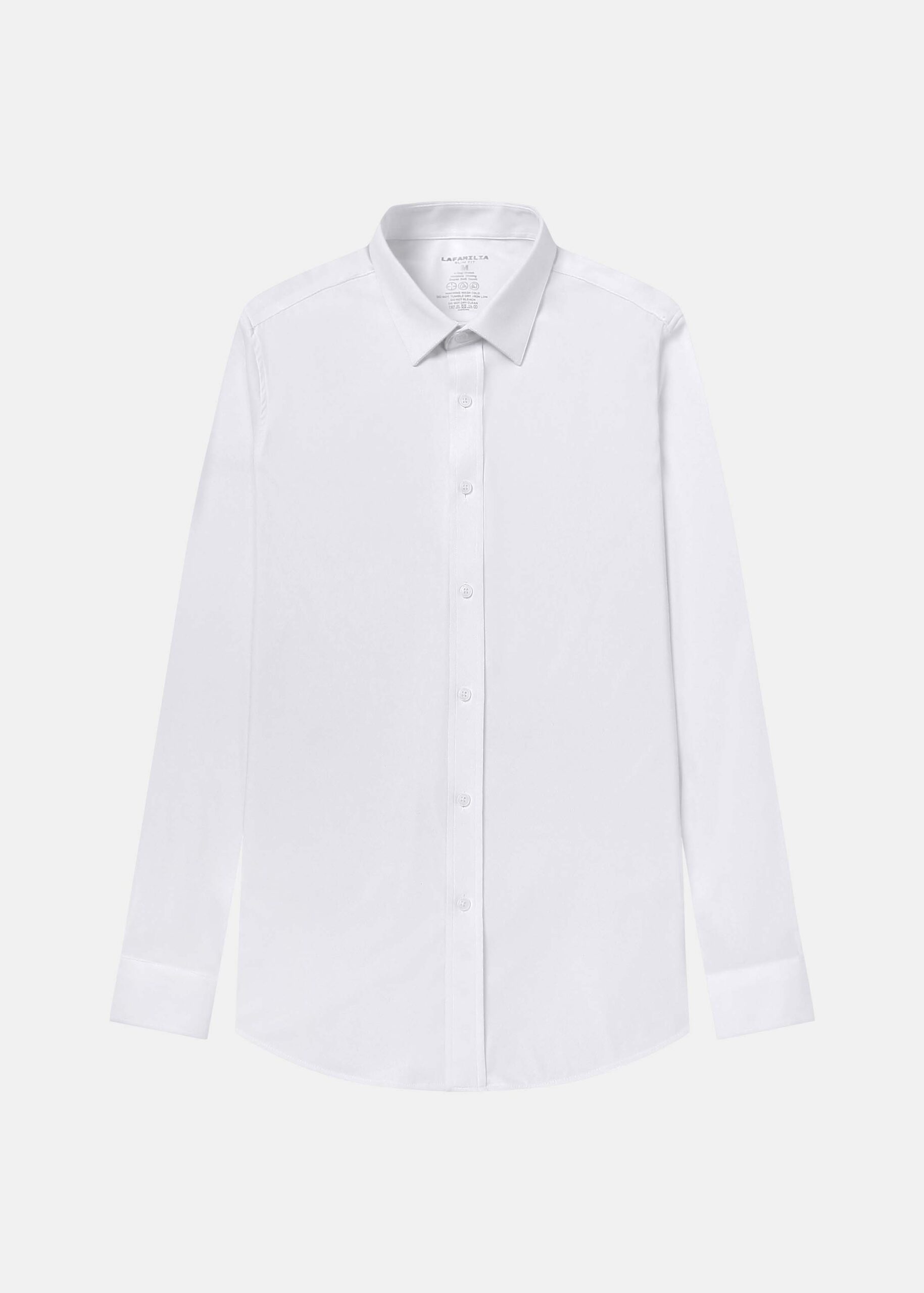 Men shirt, slim-fit, plain, rolled collar, front buttons to close, long sleeves with tight cuff, unique and modern