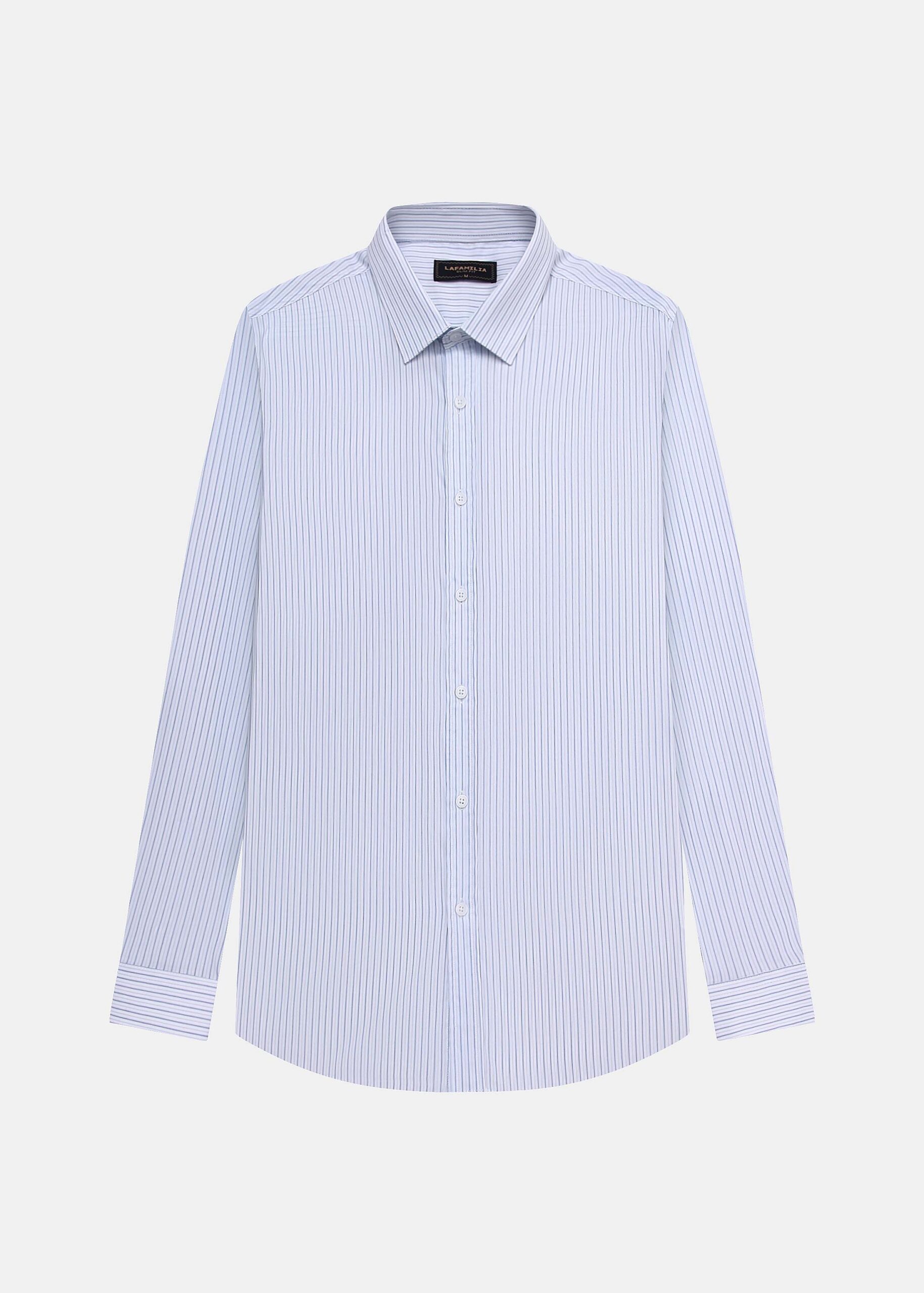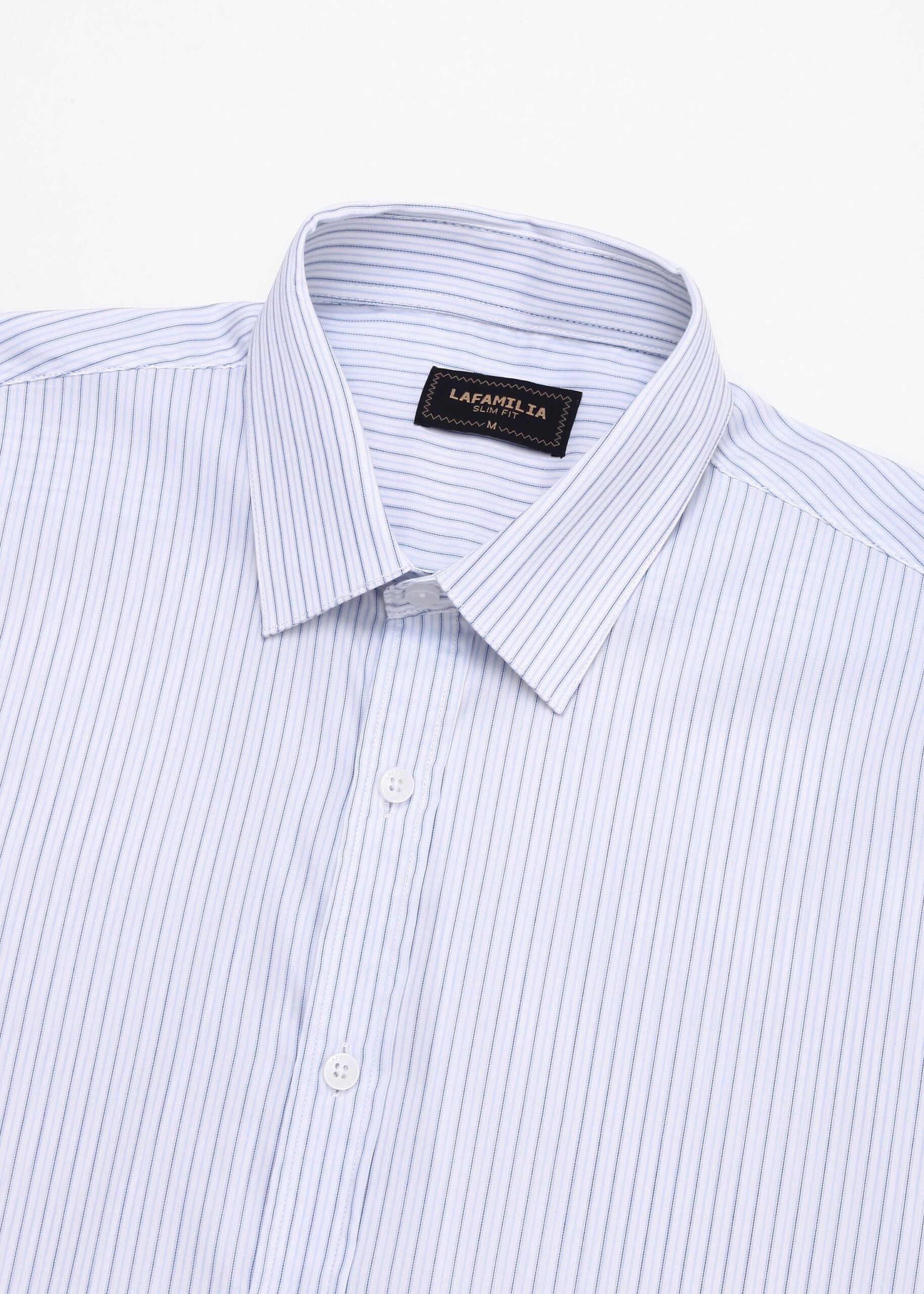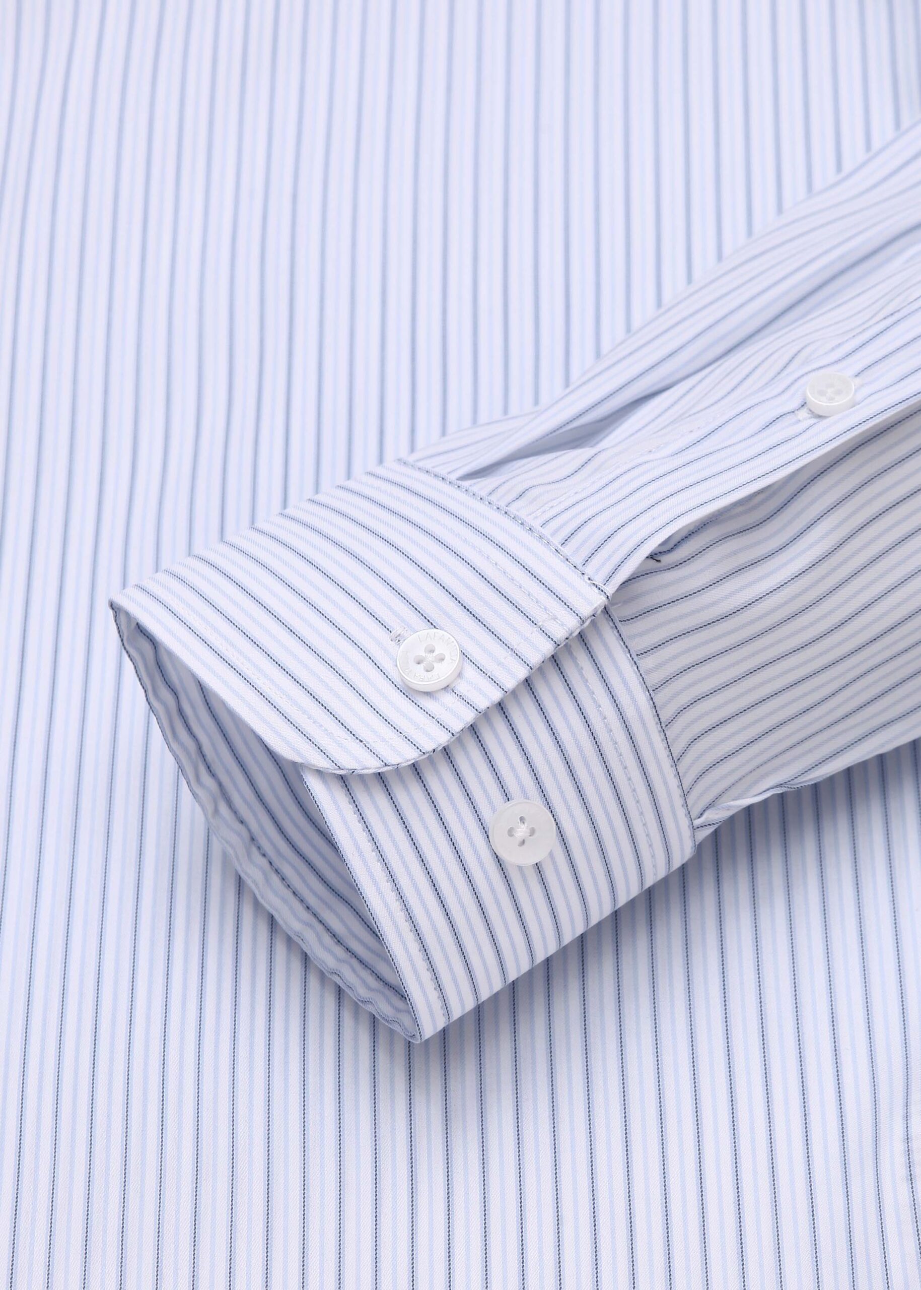 Men shirt, slim-fit, striped, rolled collar, front buttons to close, long sleeves with tight cuff, unique and modern