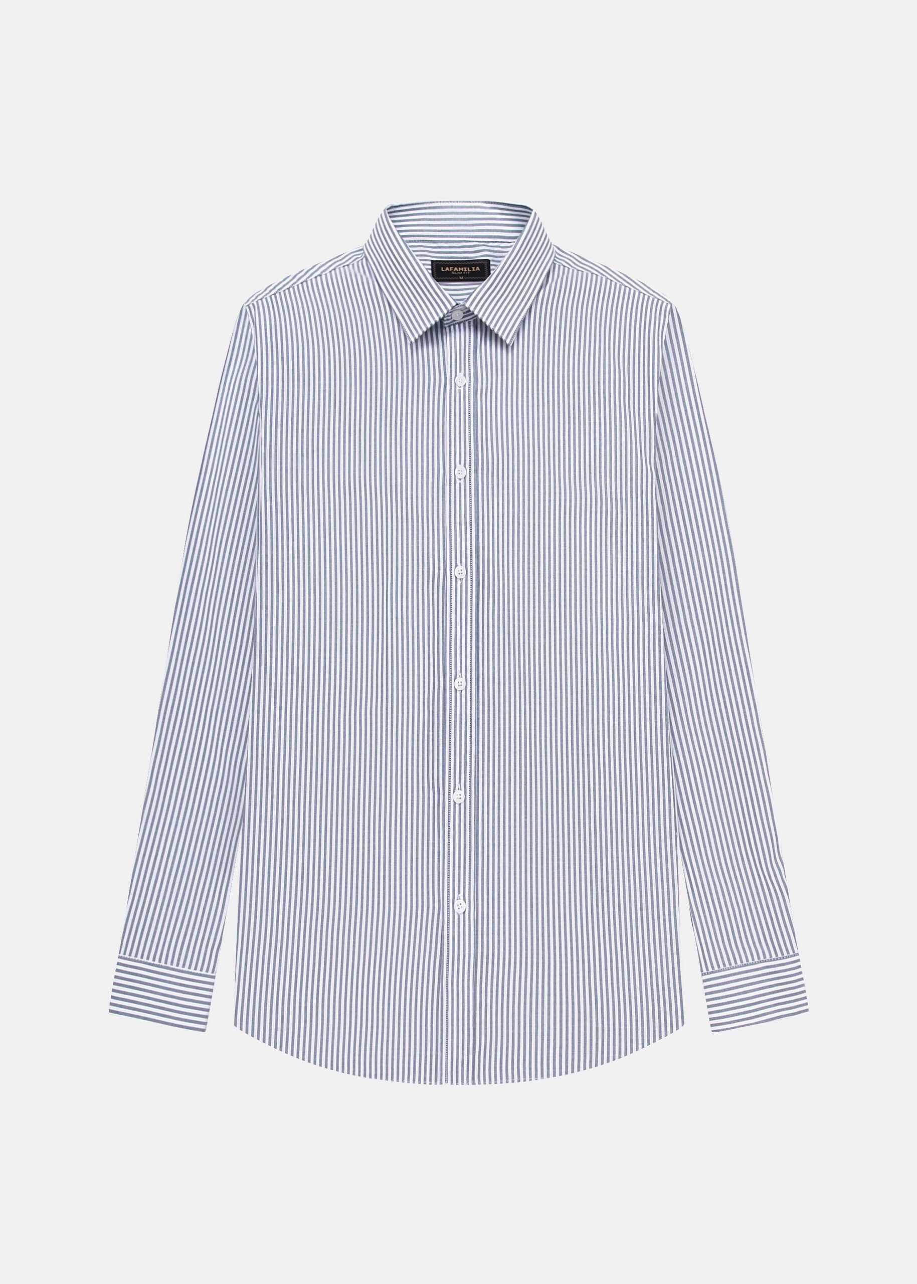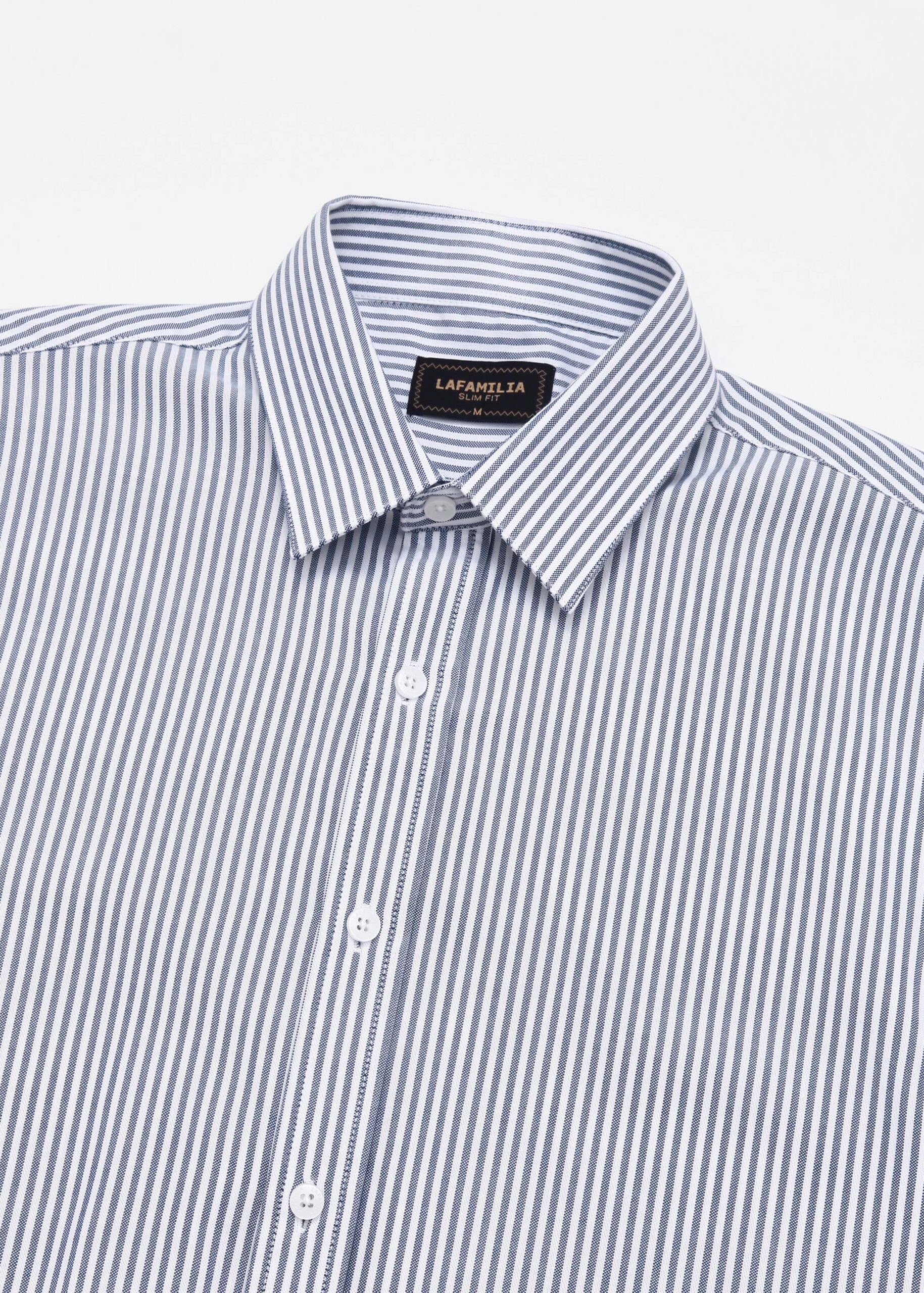 Men shirt, slim-fit, striped, rolled collar, front buttons to close, long sleeves with tight cuff, unique and modern