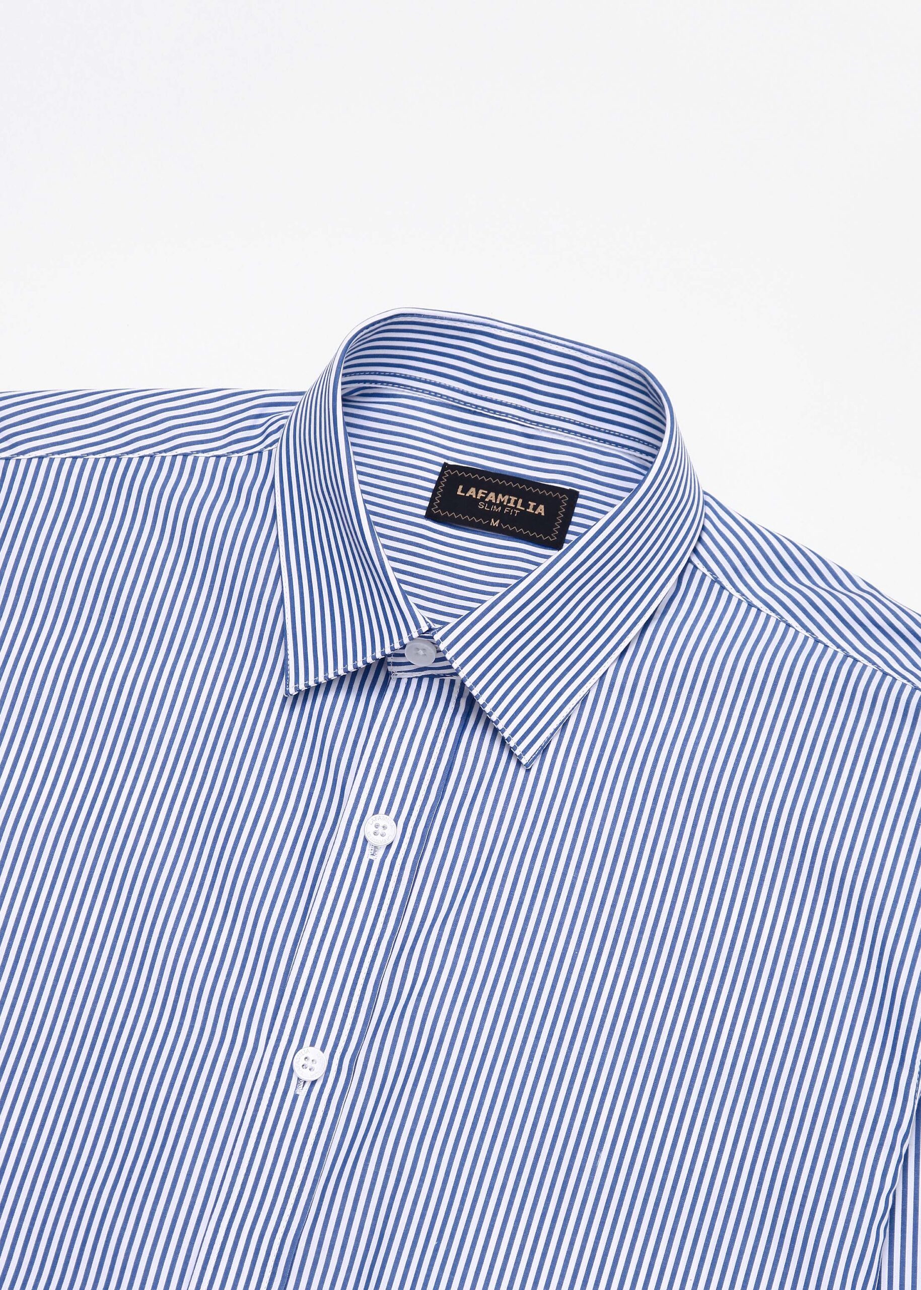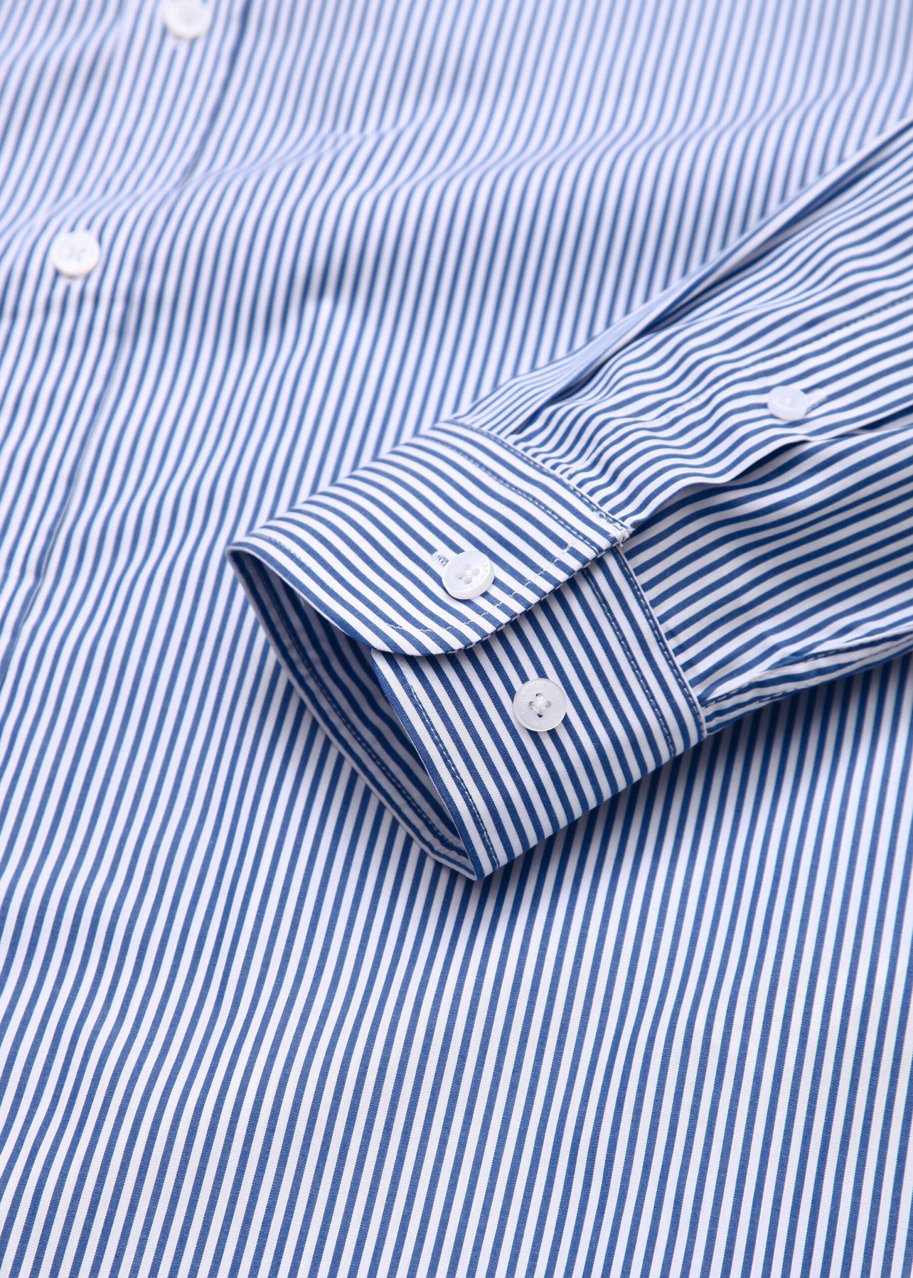 Men shirt, slim-fit, striped, rolled collar, front buttons to close, long sleeves with tight cuff, unique and modern