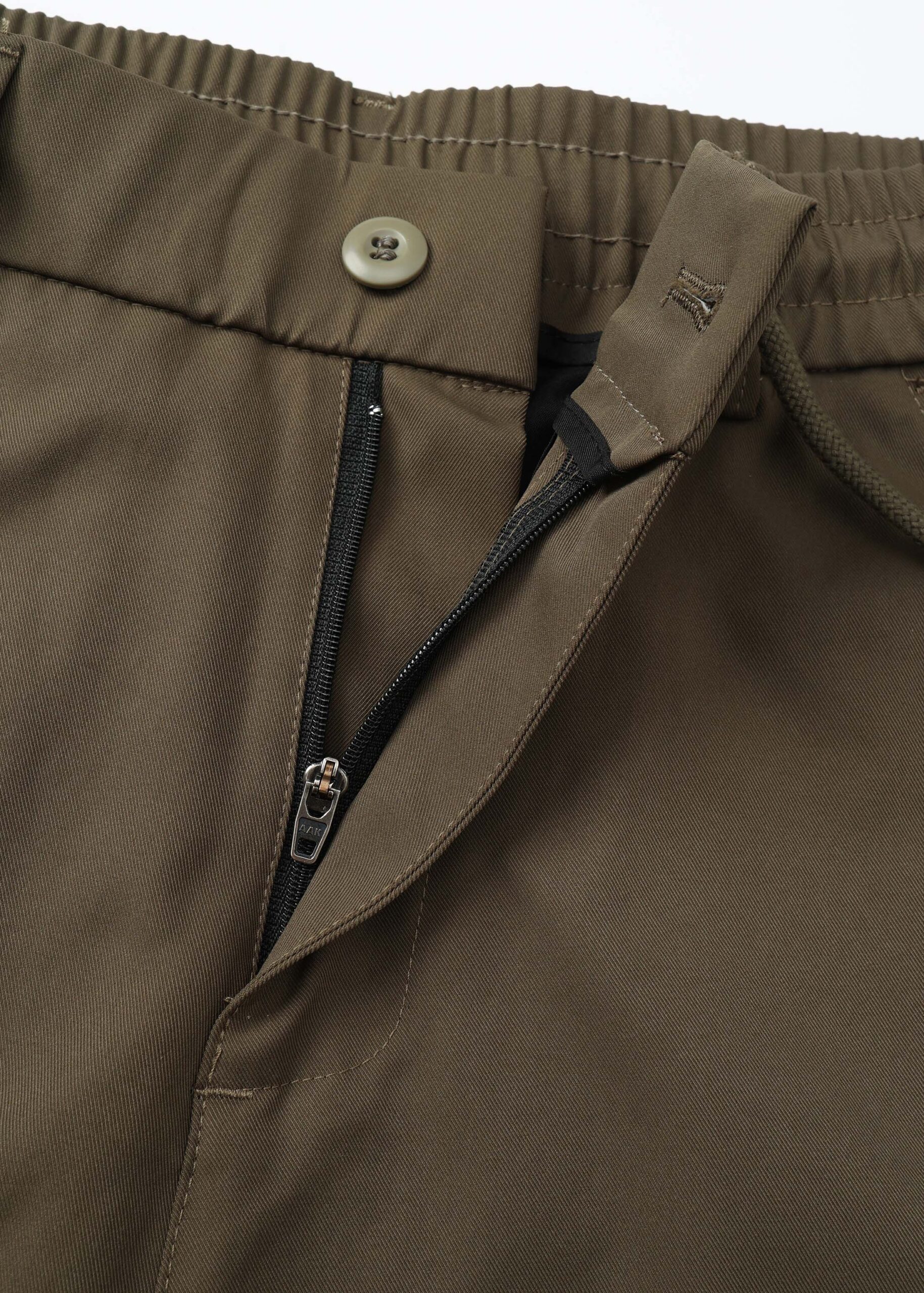 Men trouser, sport, plain, elastic waist with front tie, front button and zipper closure, front and side pockets, back pockets, comfortable and practical wok
