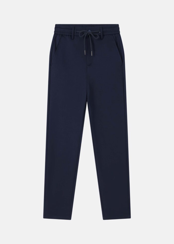 Men trouser, sport, plain, elastic waist with front tie, front button and zipper closure, front and back pockets, comfortable and practical