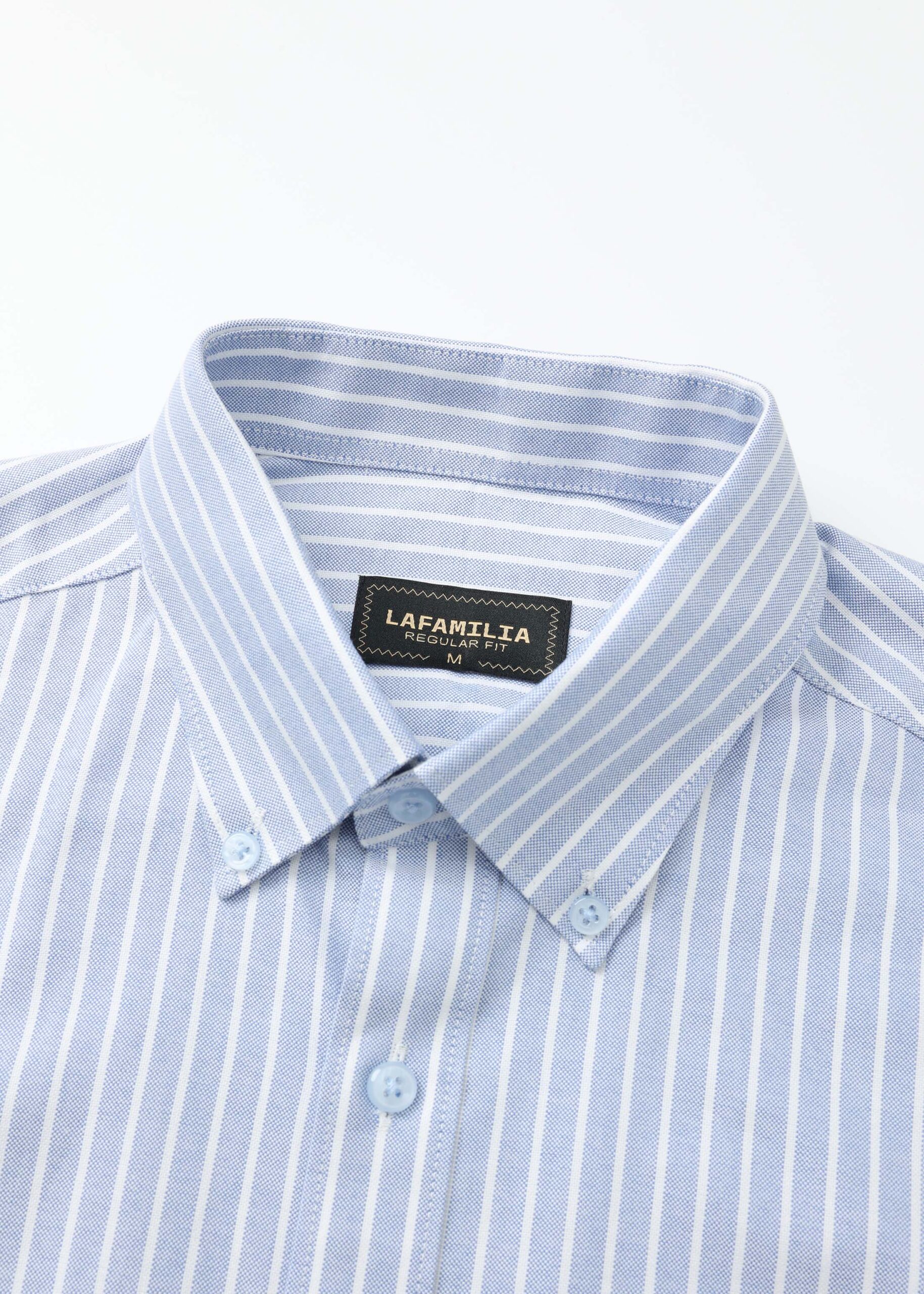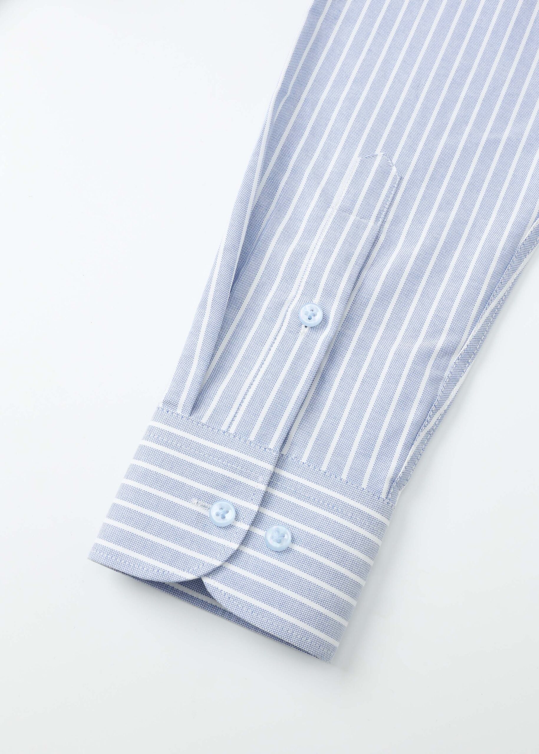 Men shirt, striped, regular-fit, rolled collar with front button, long sleeves, tight cuff with buttons, front buttons to close, unique and modern
