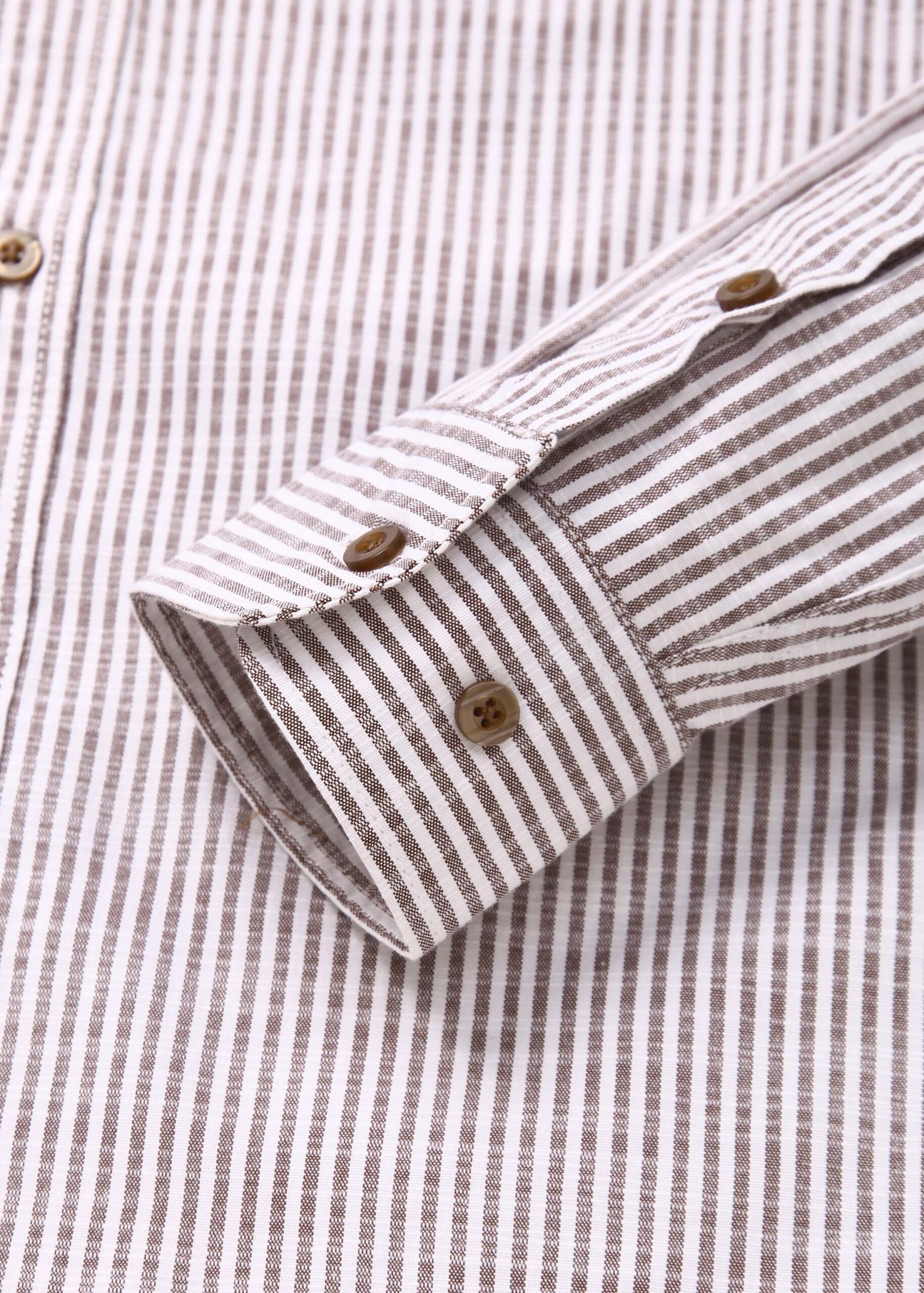Men shirt, striped, rolled collar, front buttons to close, long sleeves with tight cuff, unique and modern