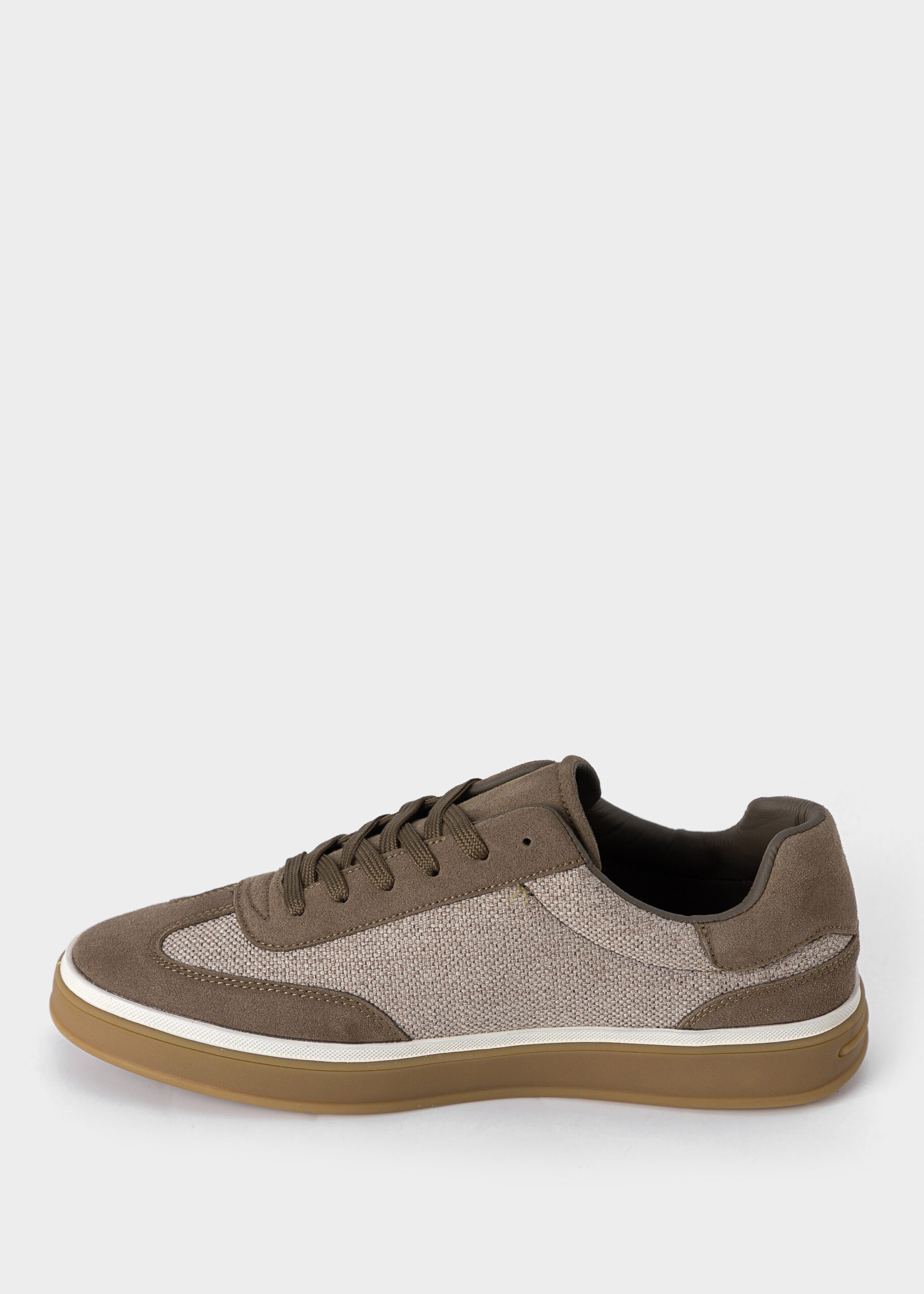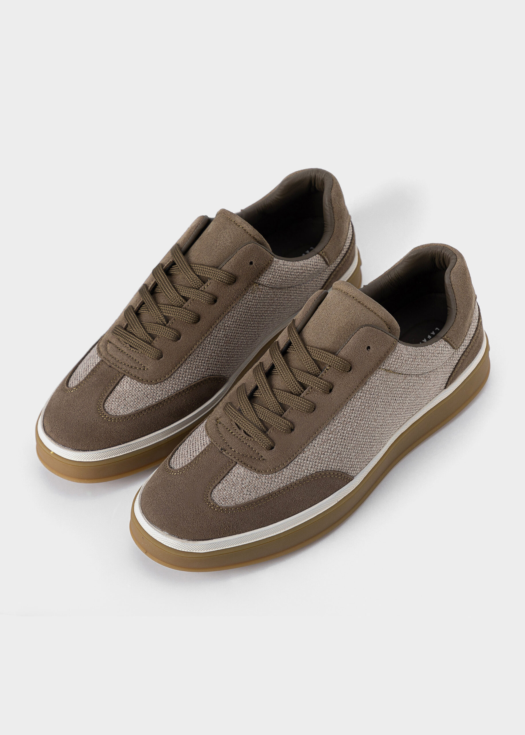 Men trainers, suede and fabric, round toe, rubber sole, lace up, comfortable and practical