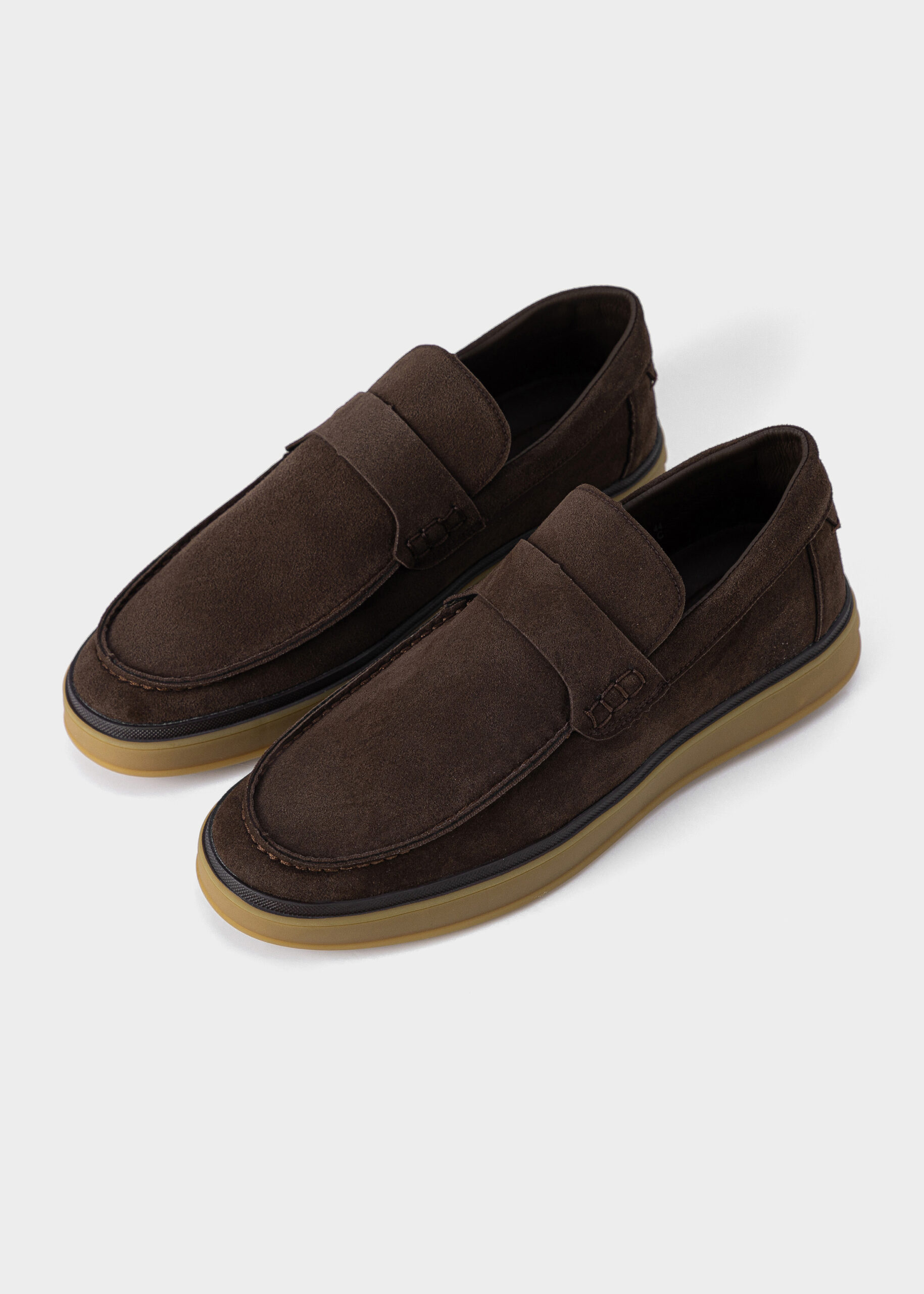 Men topsider, suede, round toe, rubber sole, unique and modern