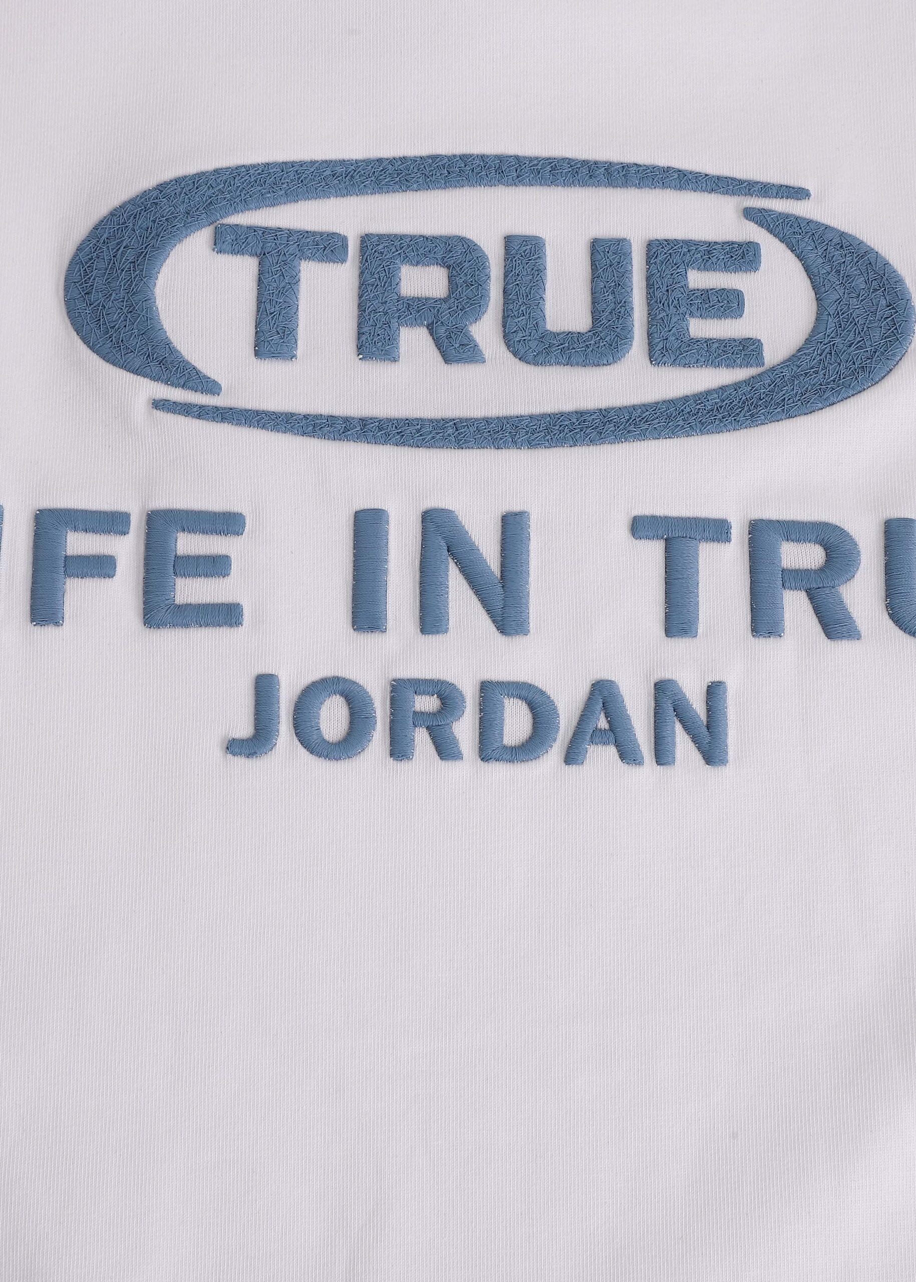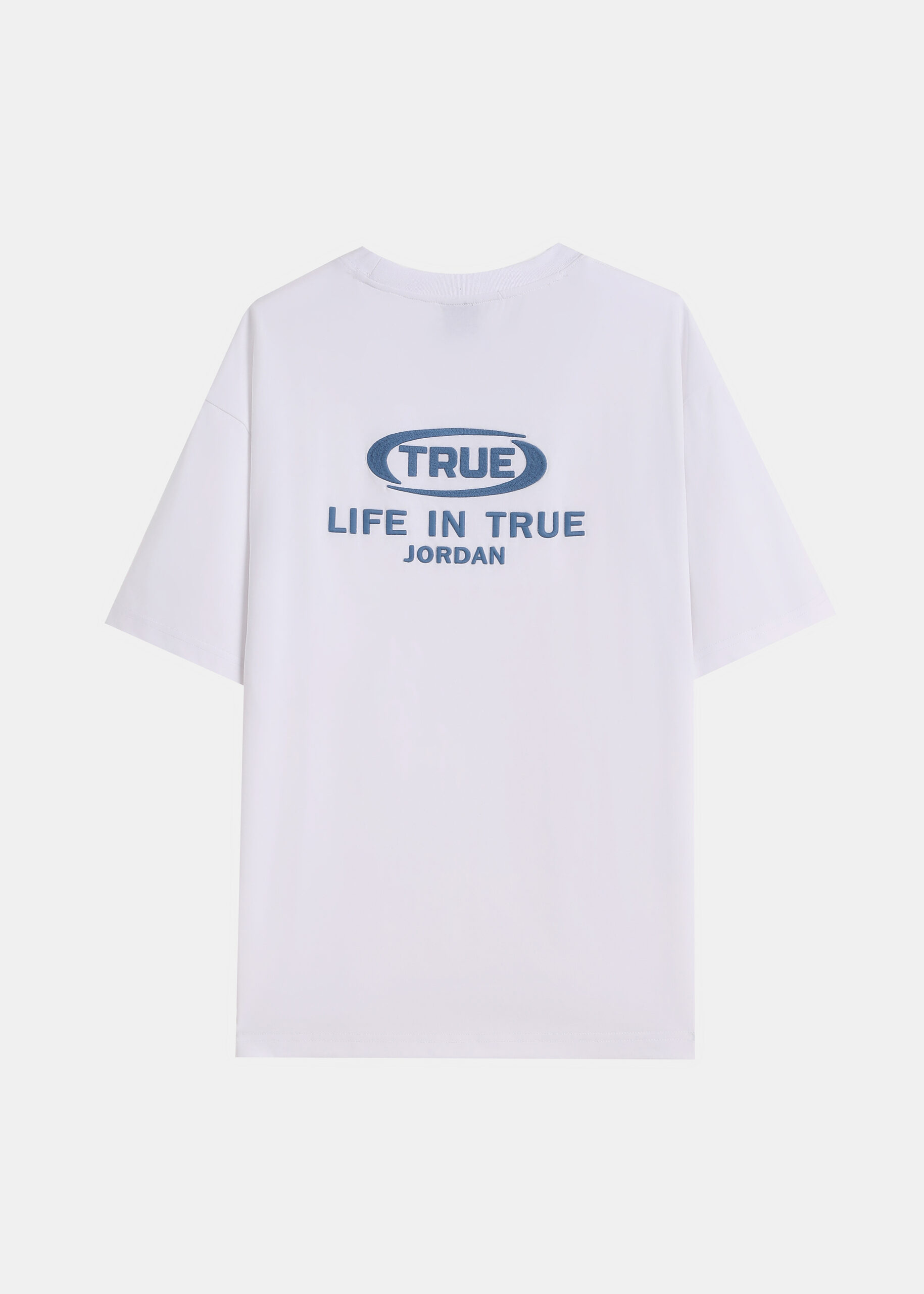 Men t-shirt, “True Life in True Jordan” printed from the front and back, round neck, short sleeves, unique and practical