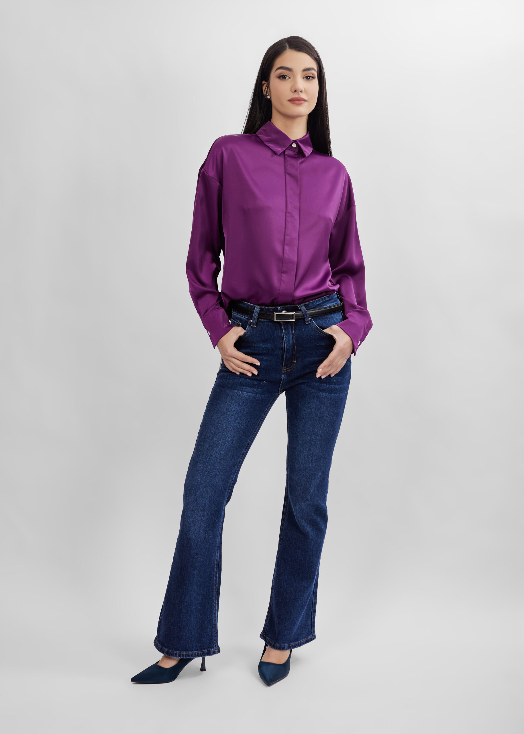 Women trouser, jeans, Boot-Cut, front button and zipper closure, front and back pockets, unique and modern