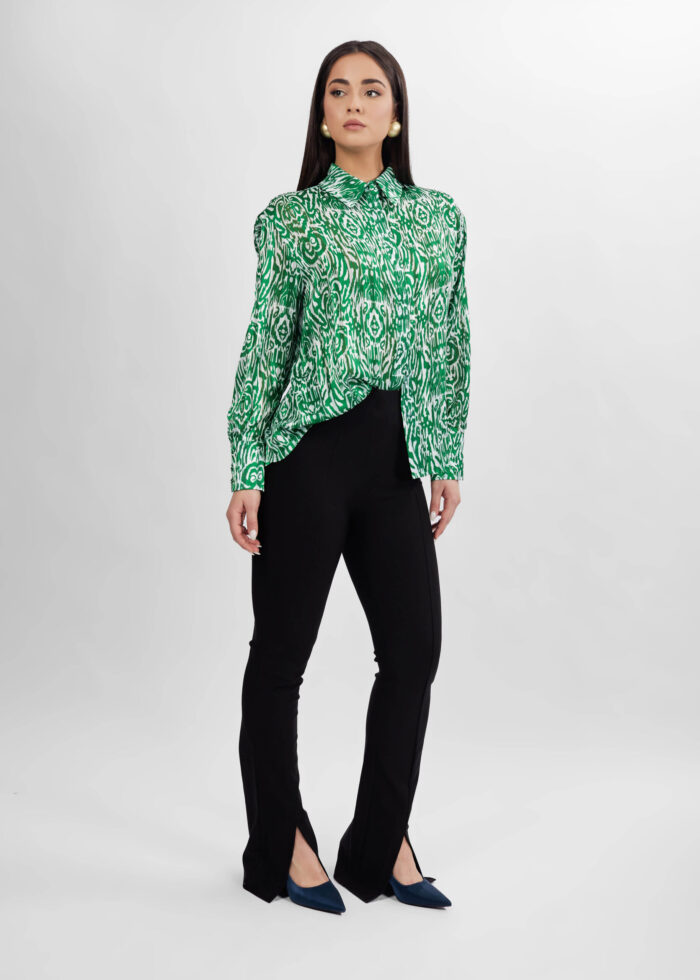Women trouser, boot-cut, elastic waist, front slit design, unique and modern
