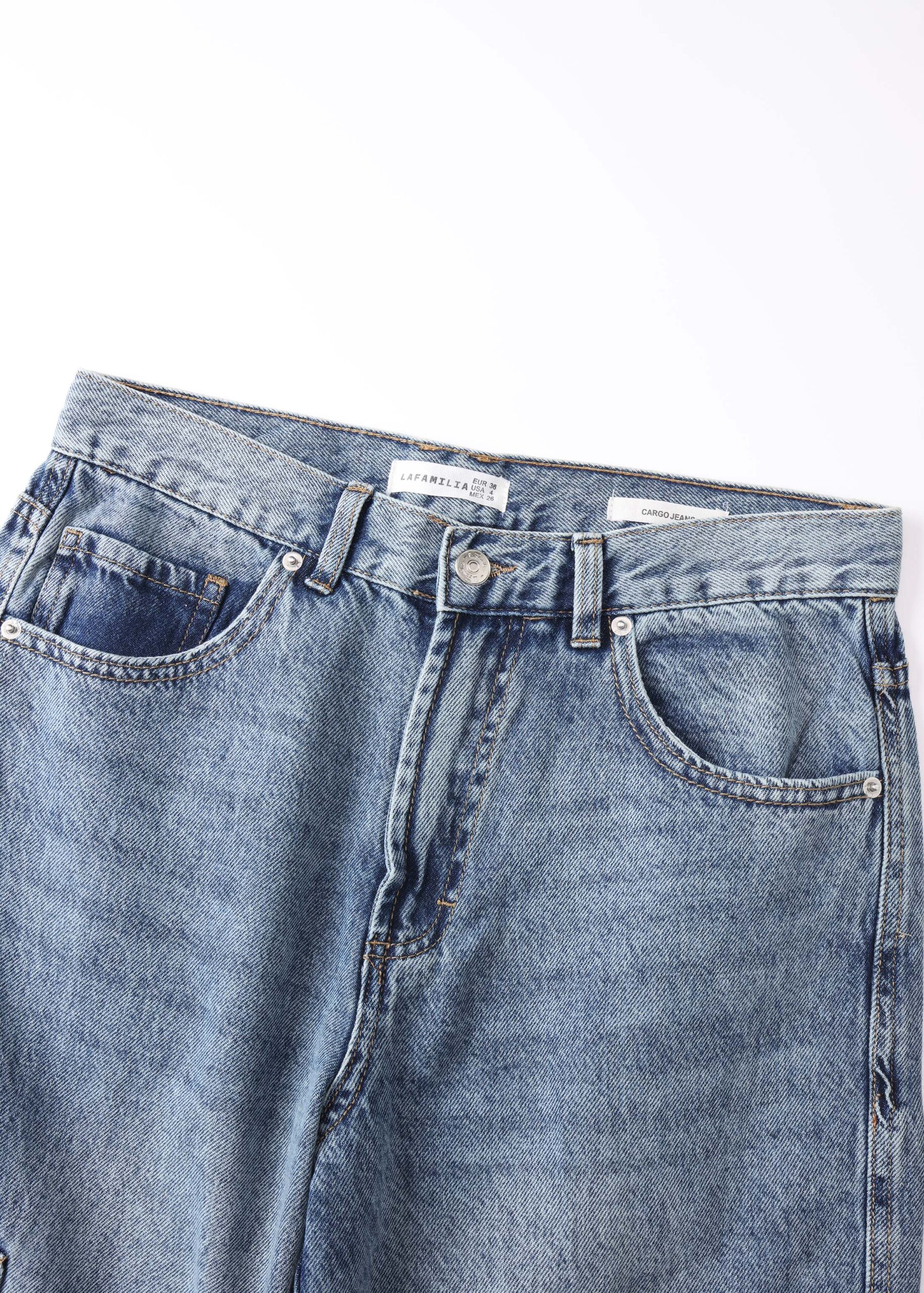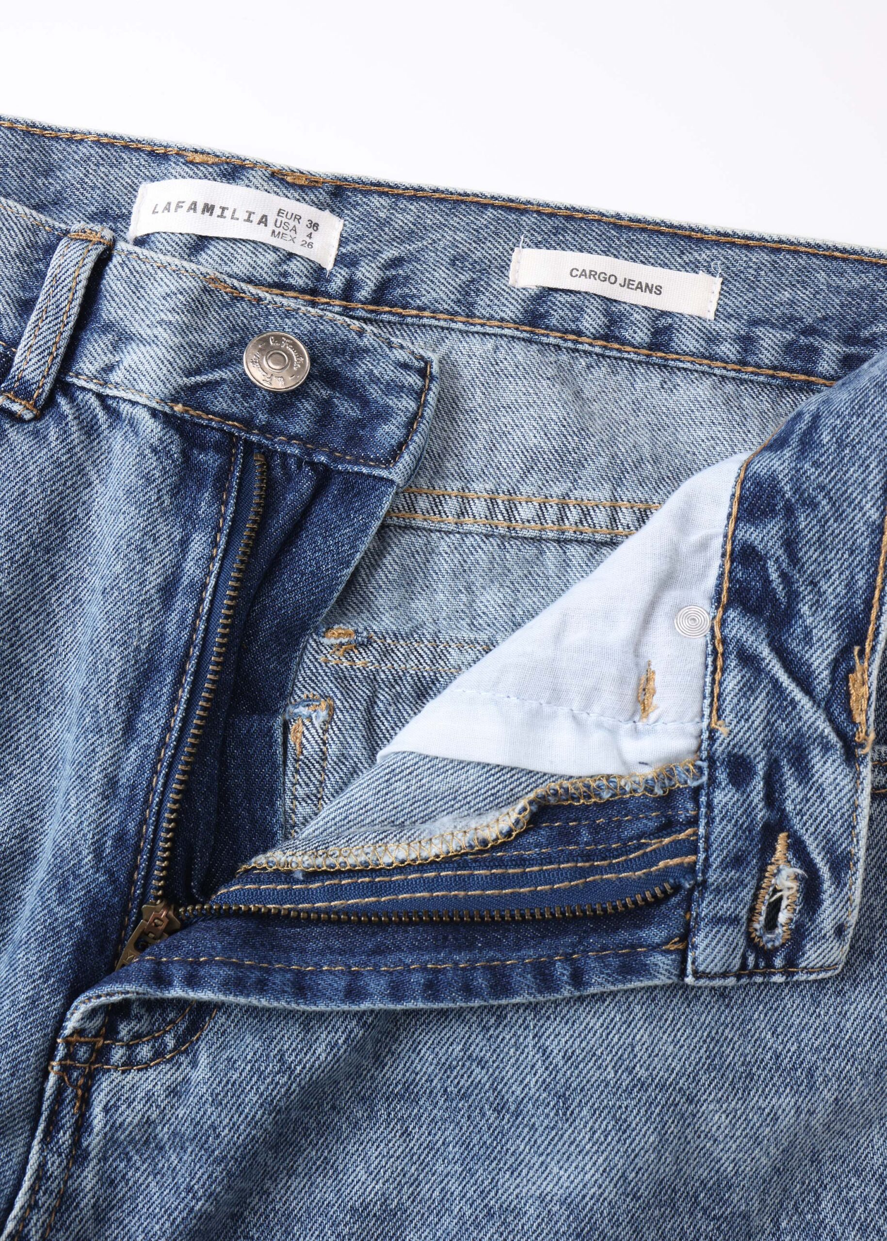 Women trouser, jeans, Cargo, pockets from the front, side and back pockets with flaps, front button and zipper clousre, unique and practical
