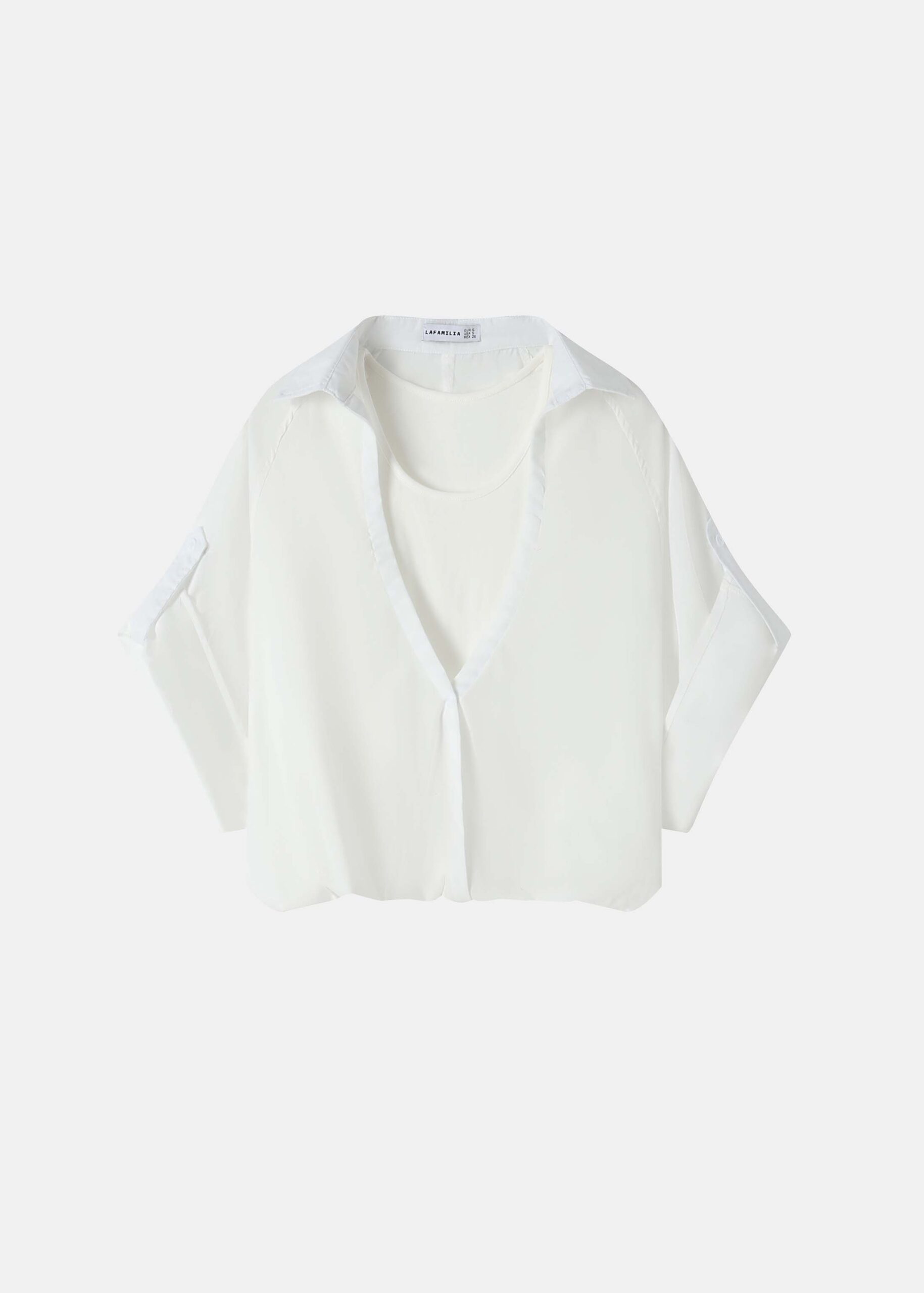 Women blouse, two-pieces, top, plain, sleeveless, round neck, shirt, plain, classic collar, V neckline, short rolled-up sleeves, unique and modern