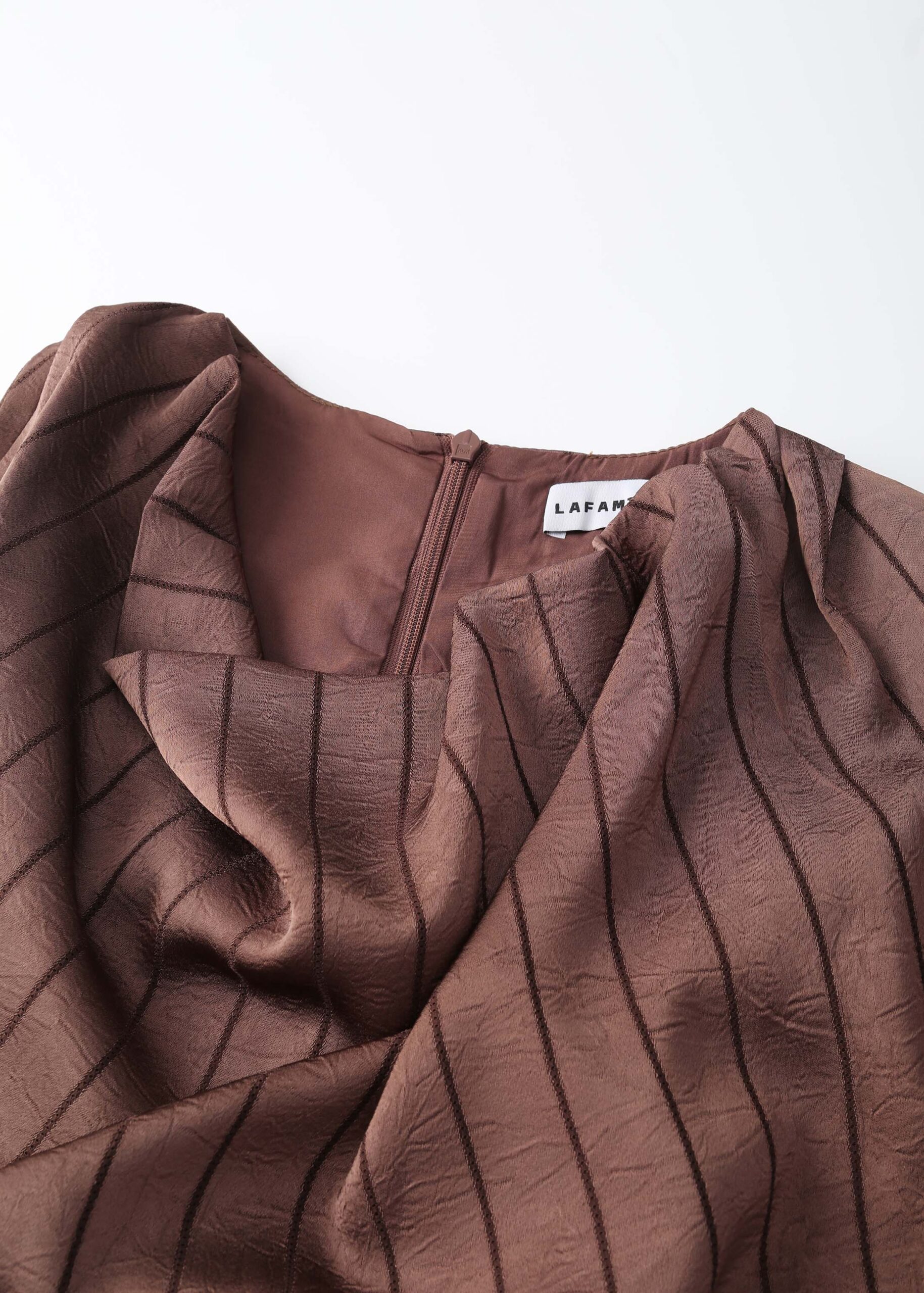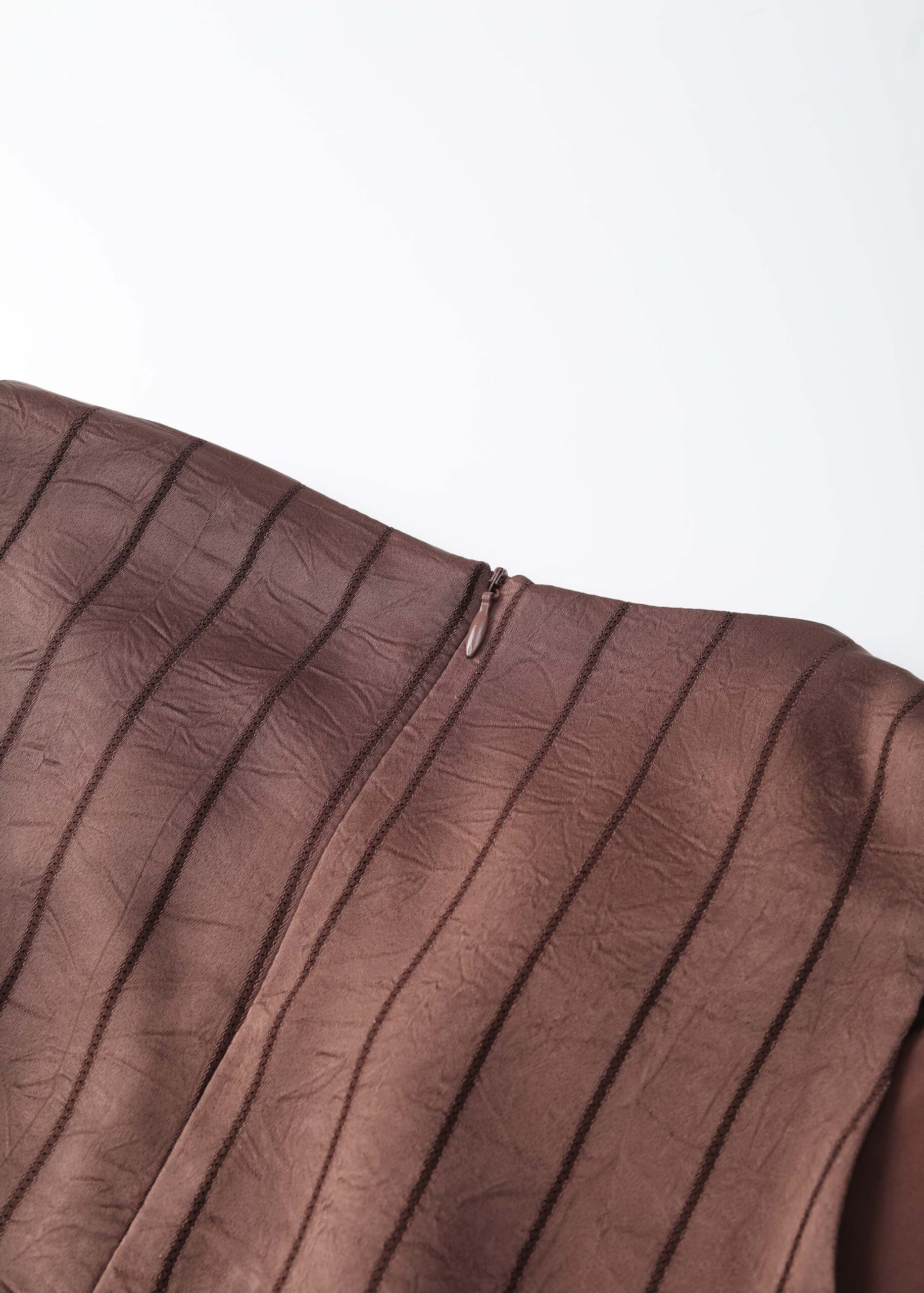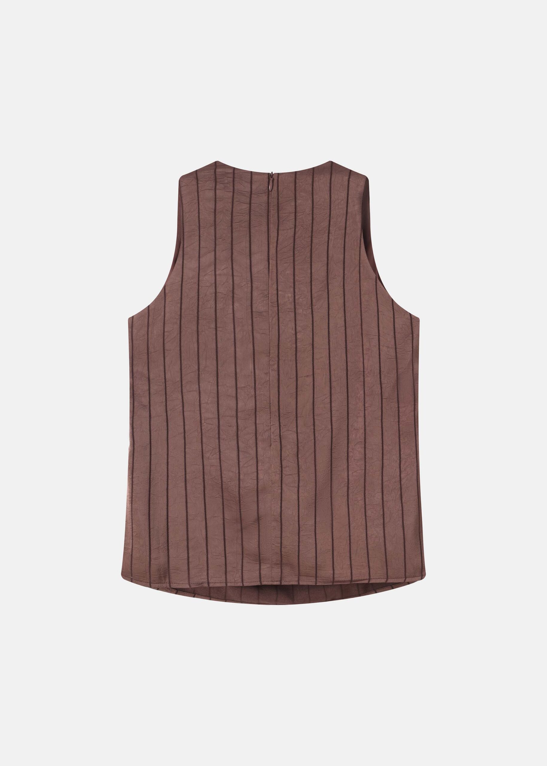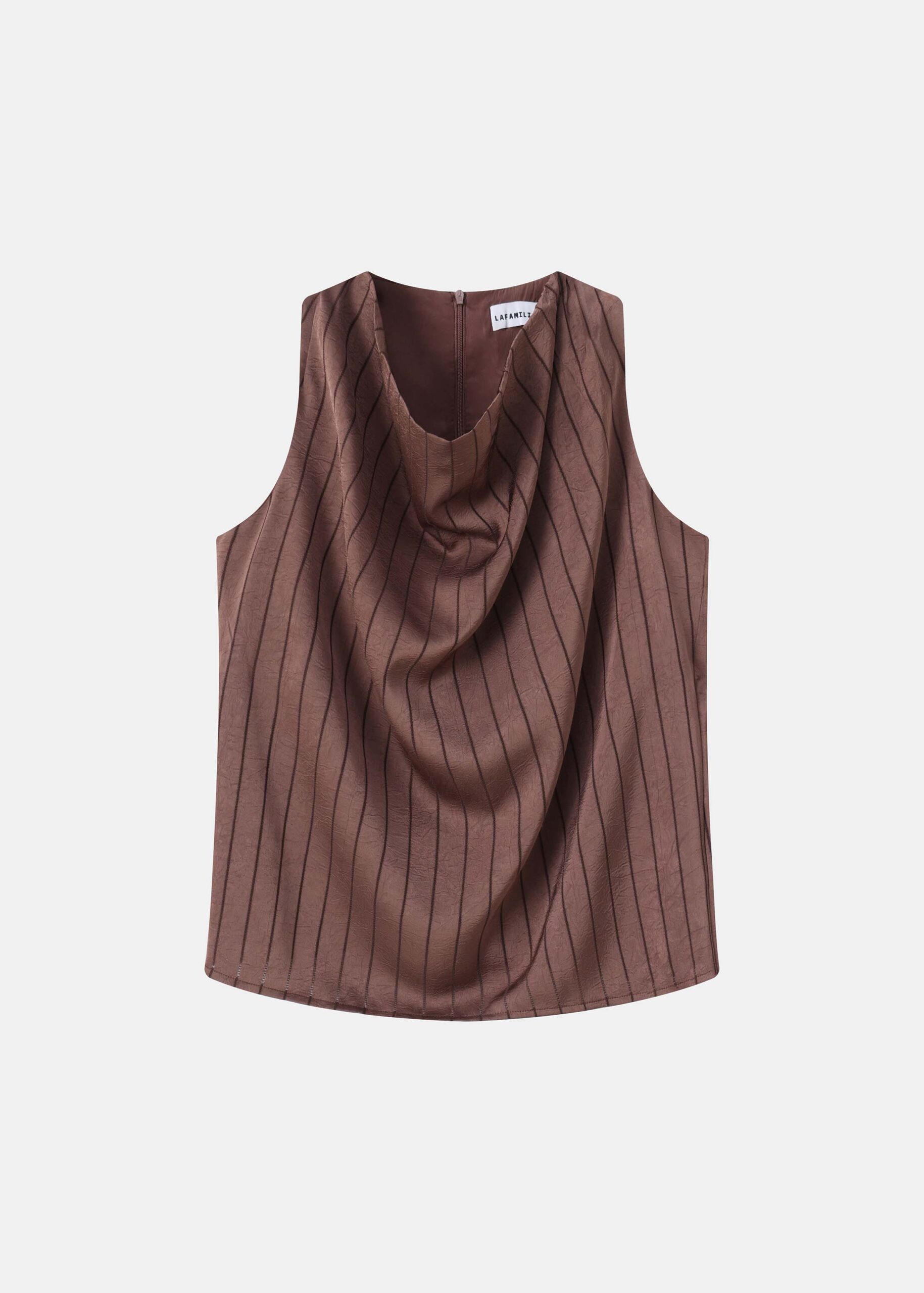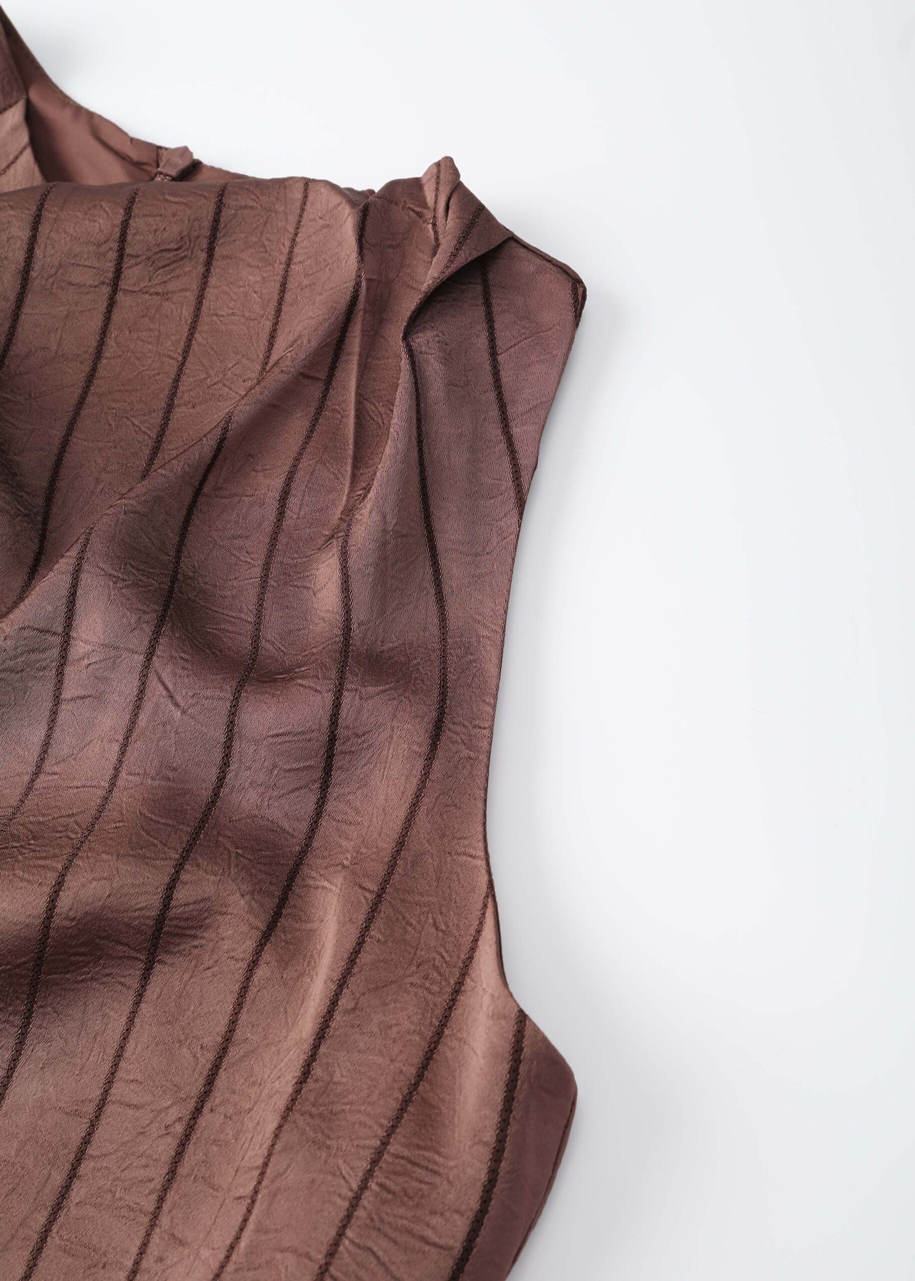 Women top, satin, striped, crinkled fabric, cowl neck, sleeveless, back zipper closure, unique and modern