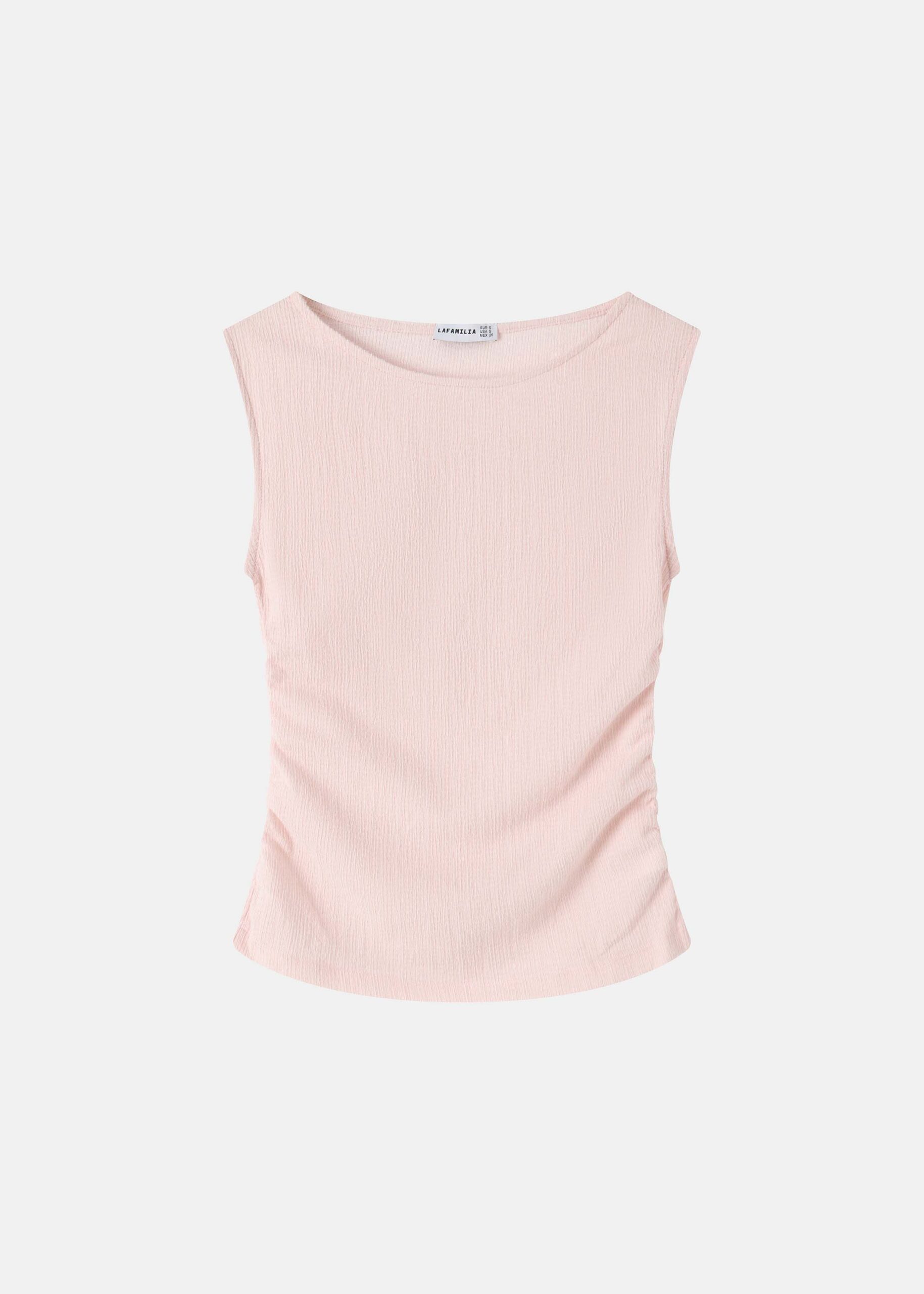 Women top, plain, crew neck, sleeveless, ruched design from the sides, unique and practical