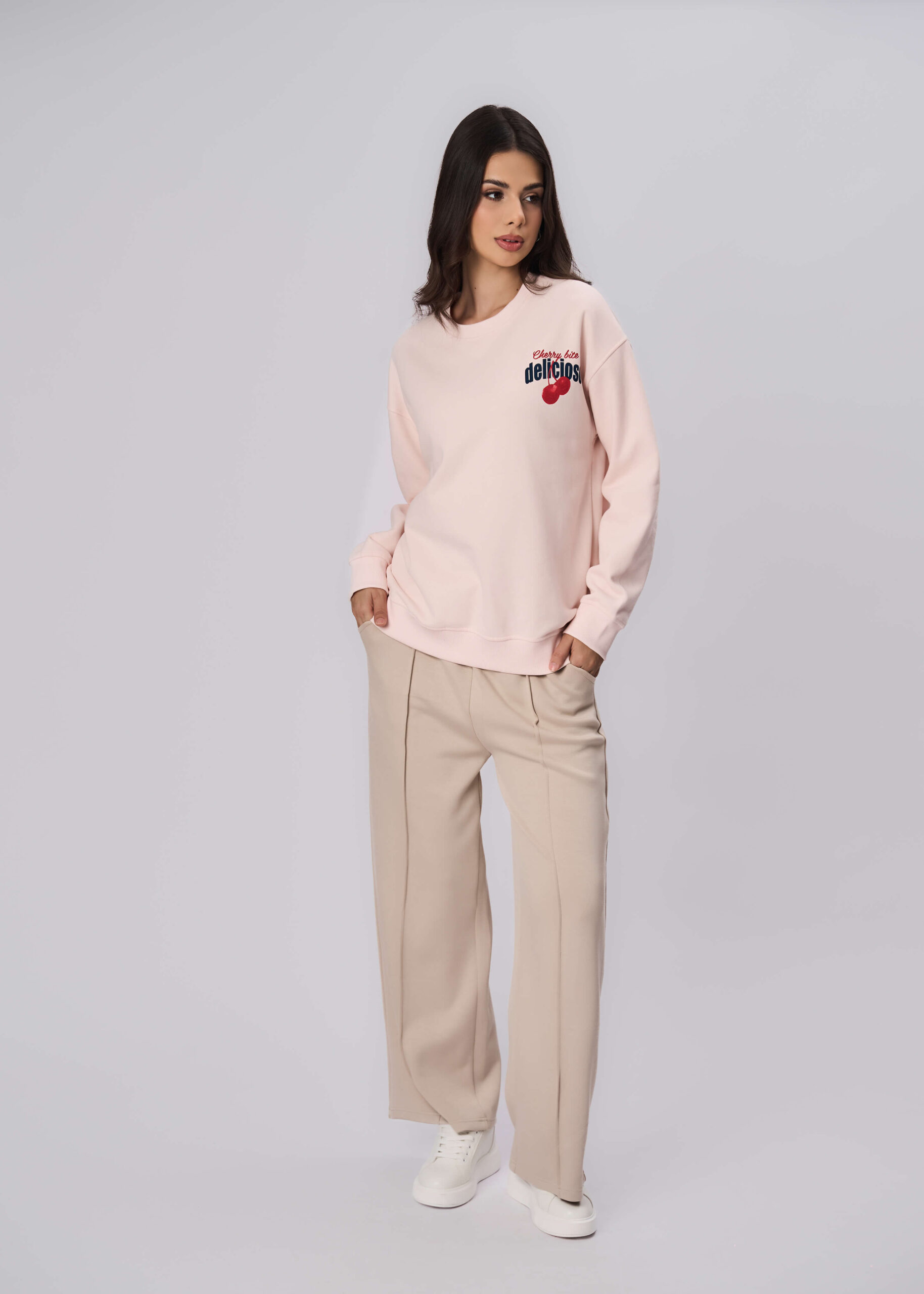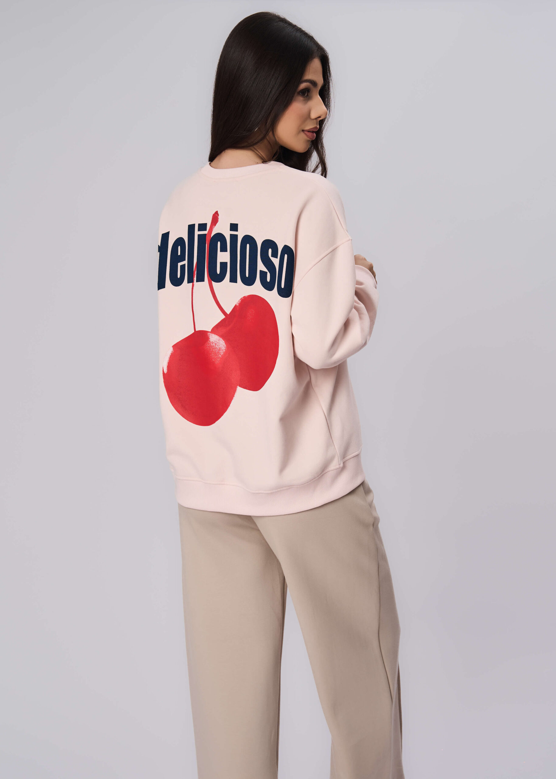 Women sweatshirt, “Delicioso” printed from the front and back, round neck, long sleeves with tight cuff, unique and practical