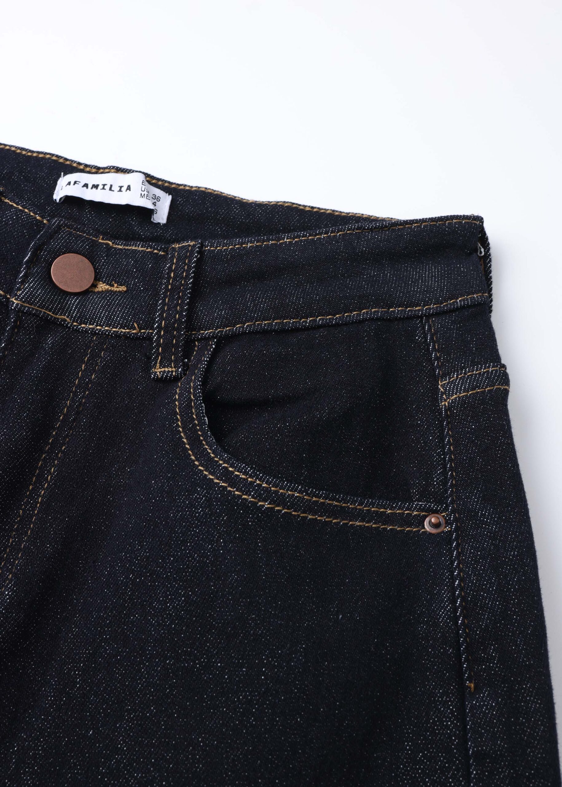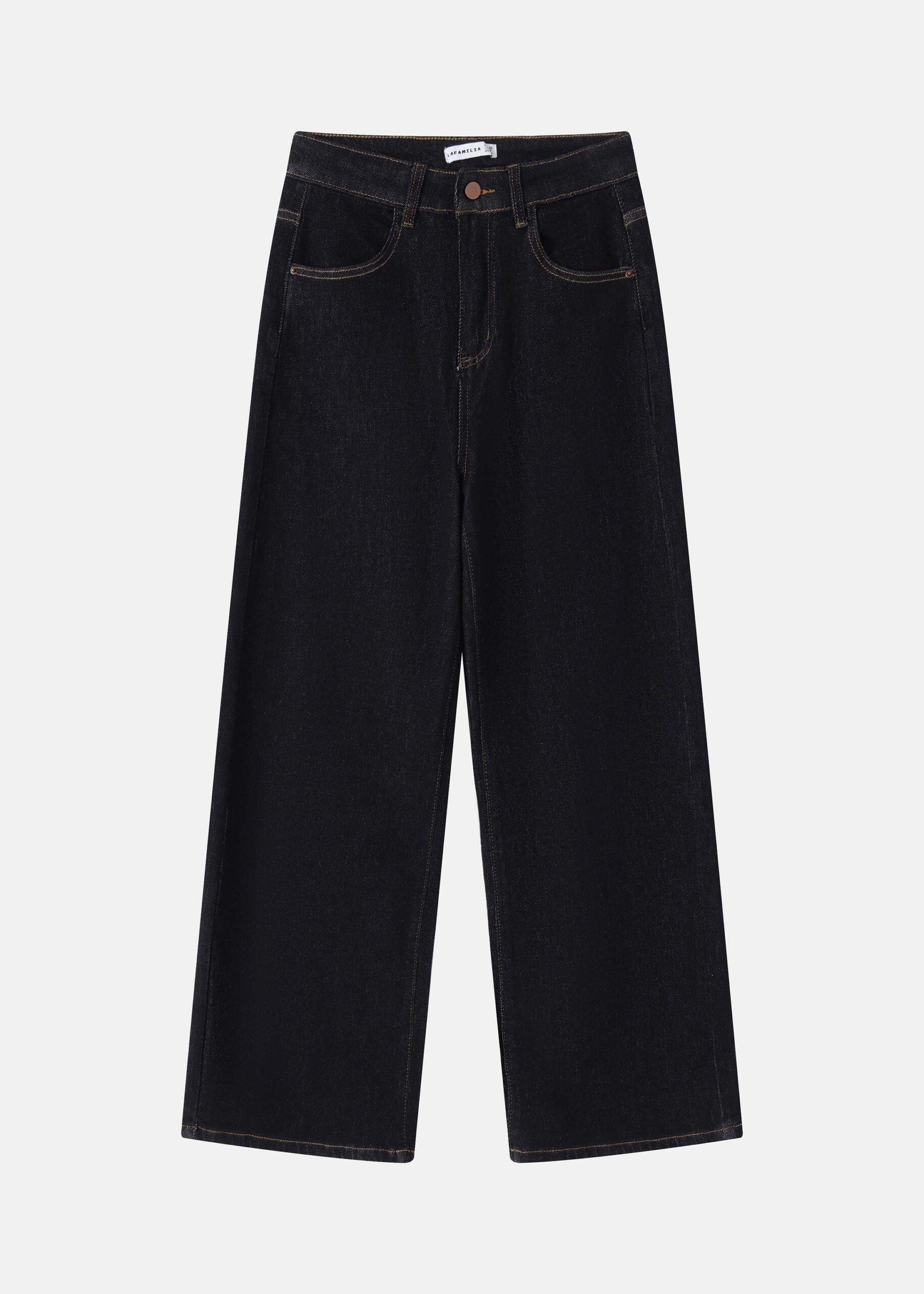 Women trouser, denim, wide-leg, front button and zipper clousre, front and back pockets, unique and modern