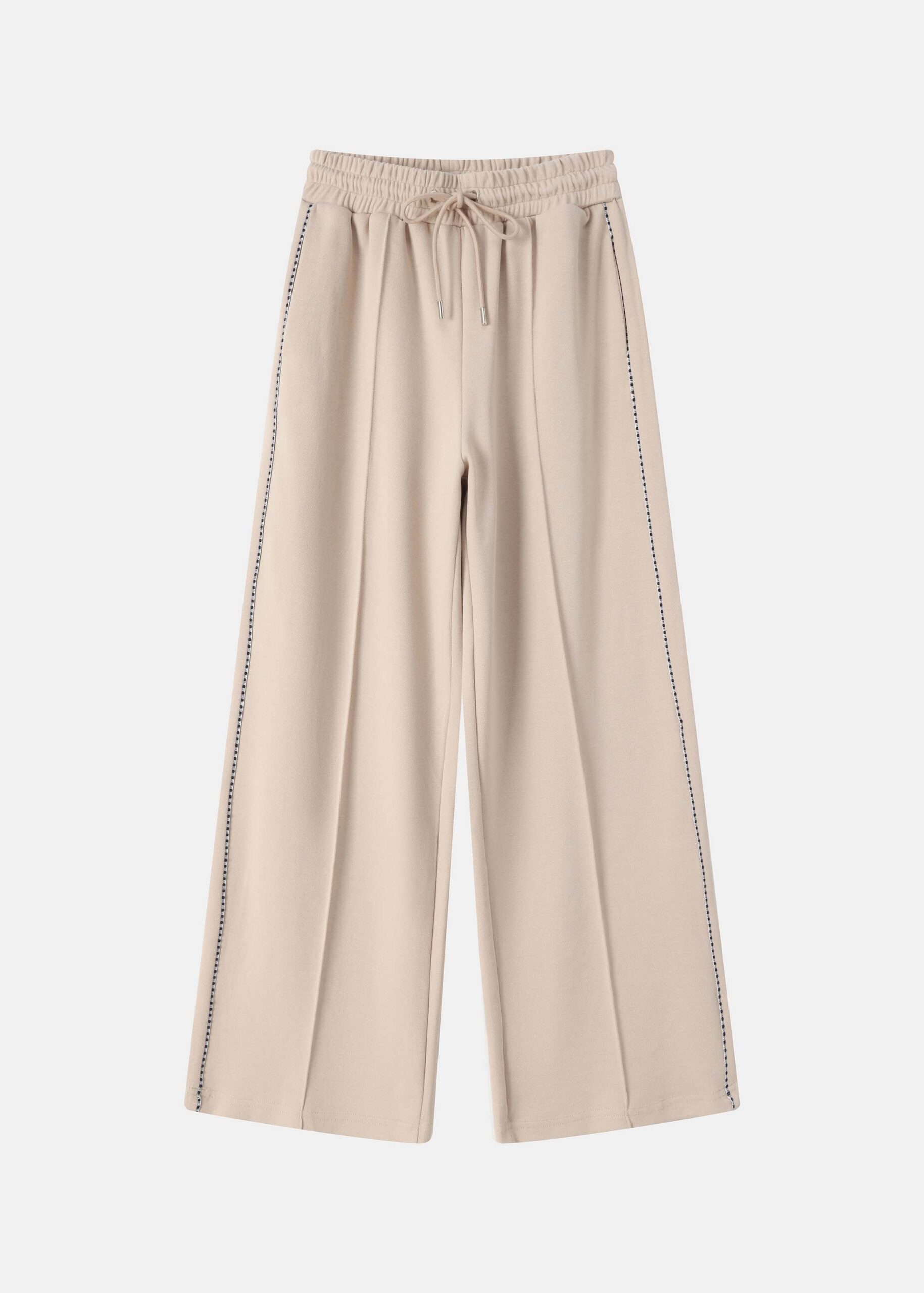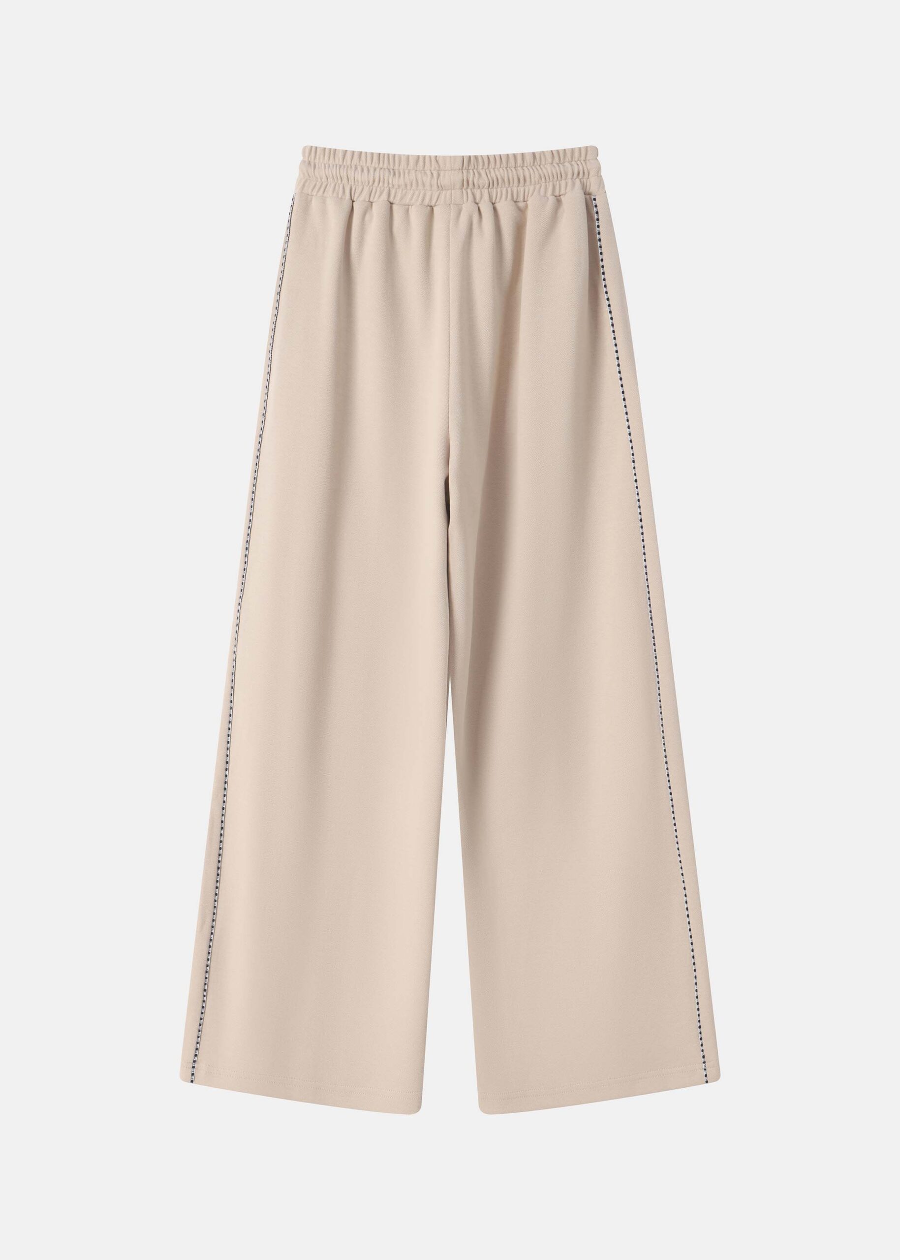 Women trouser, wide-leg, elastic waist with front tie, front pockets, side embroidered decor, comfortable and practical