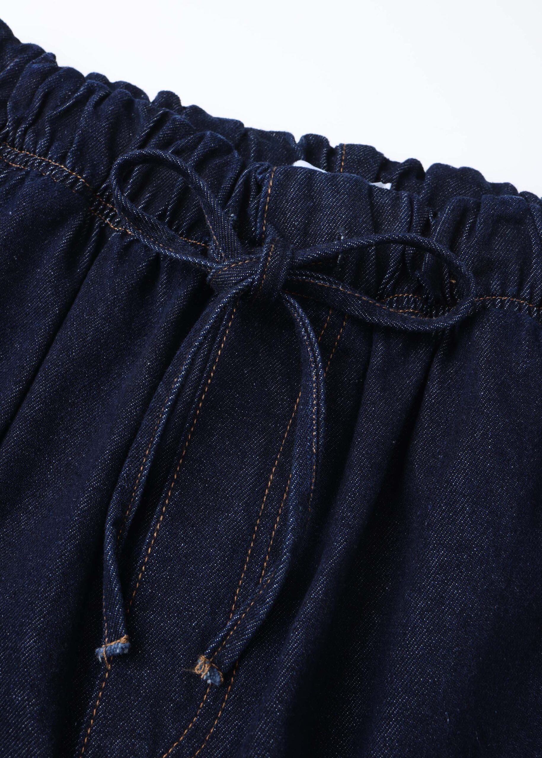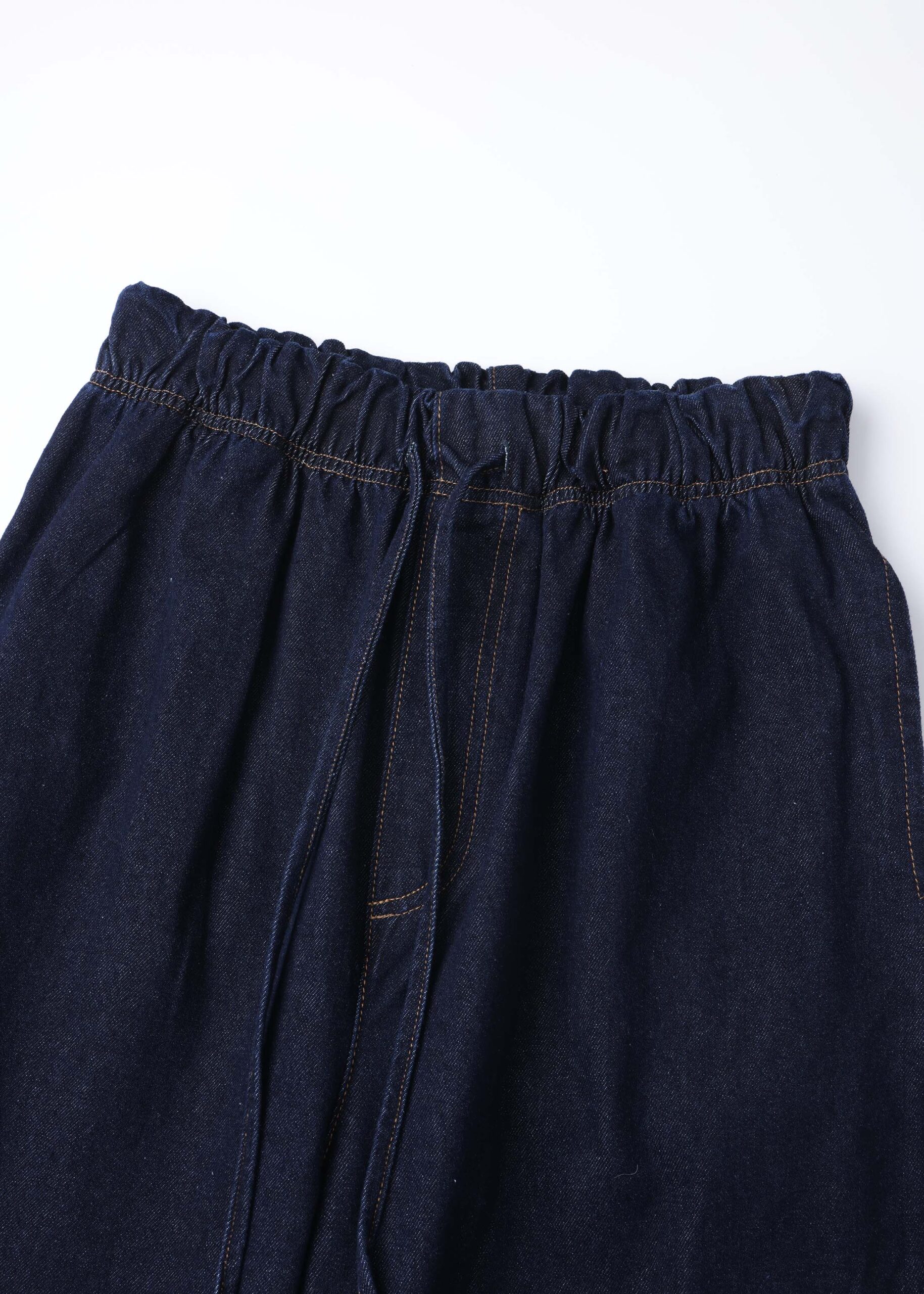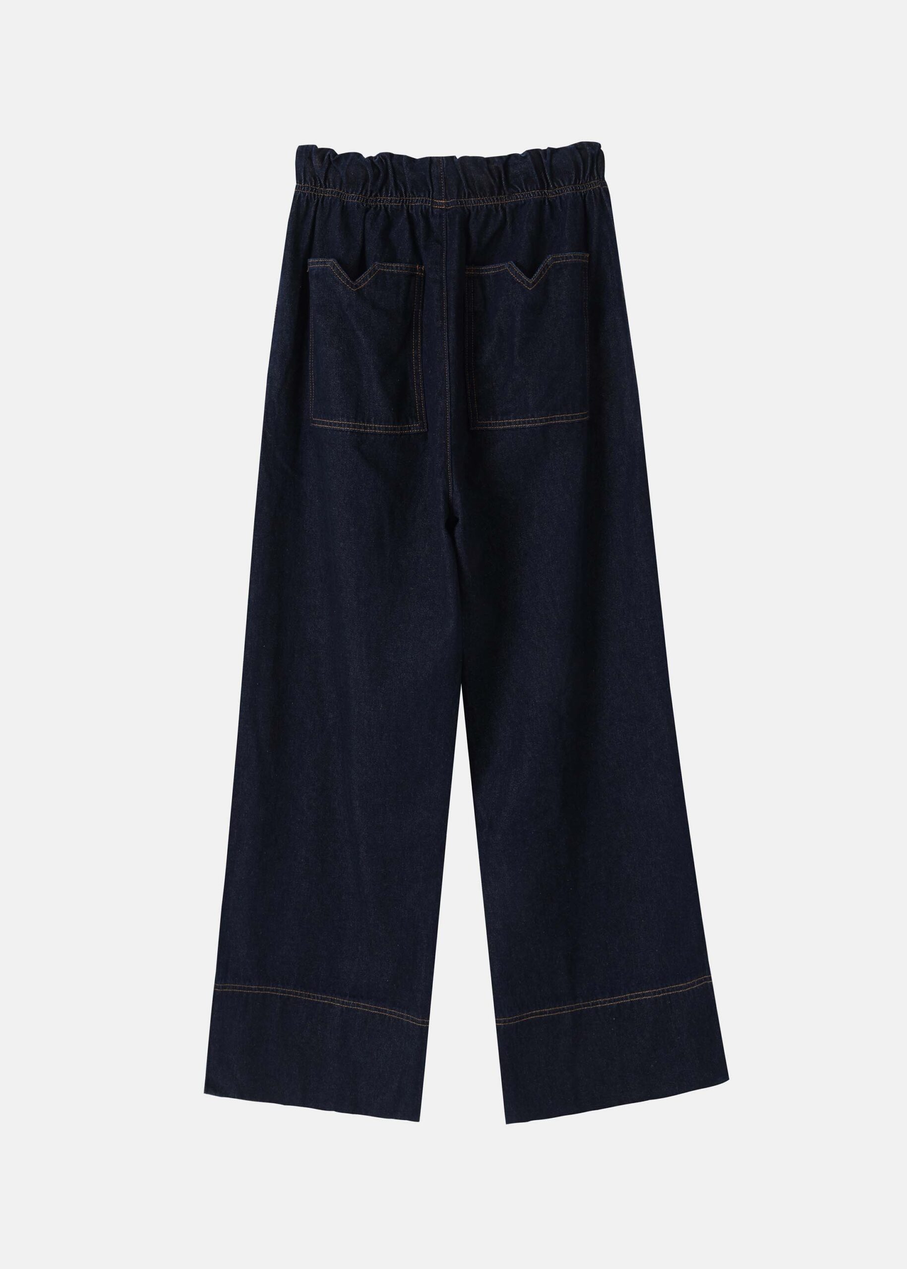 Women trouser, jeans, wide-leg, elastic waist with front tie, front and back pockets, practical and unique