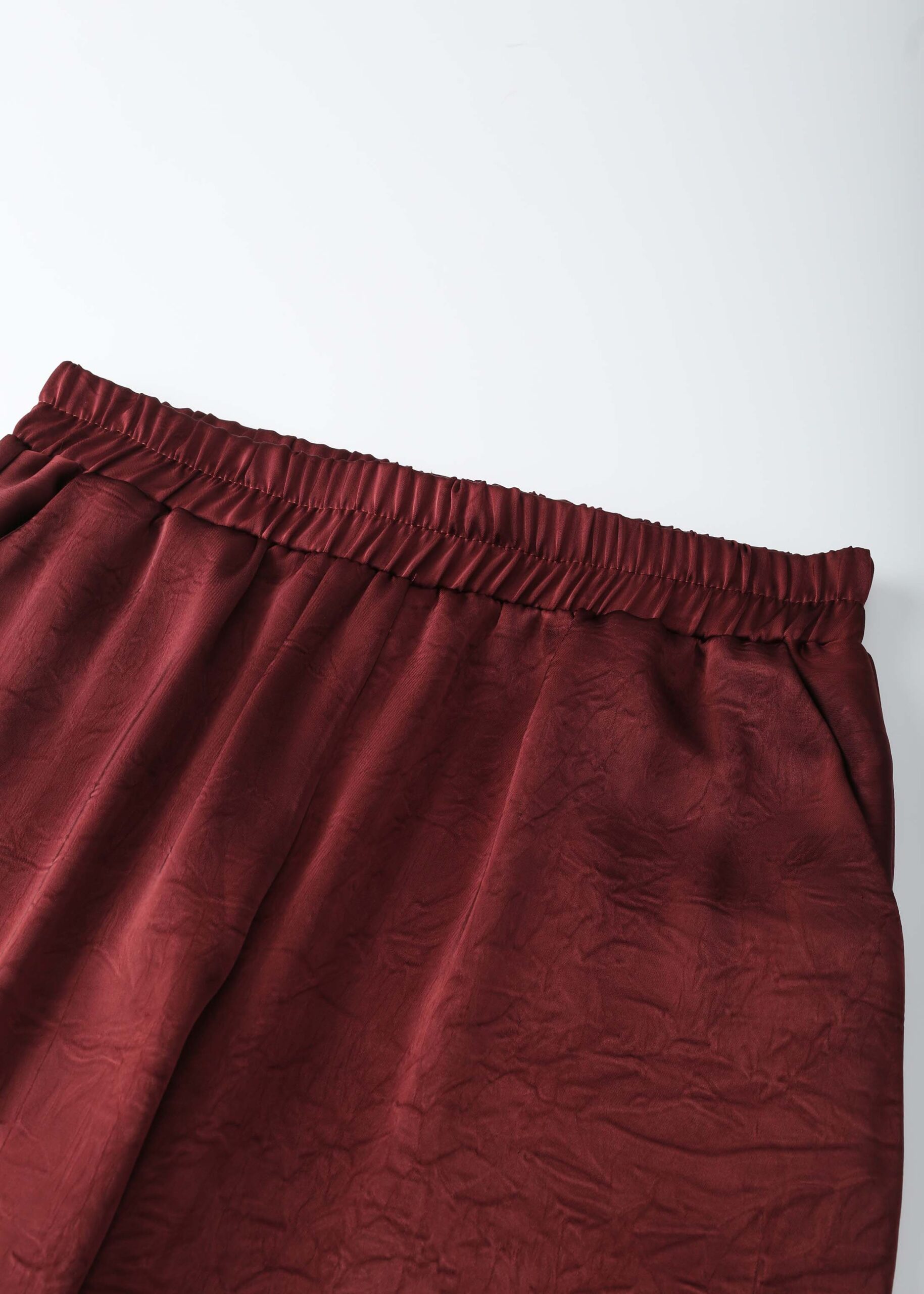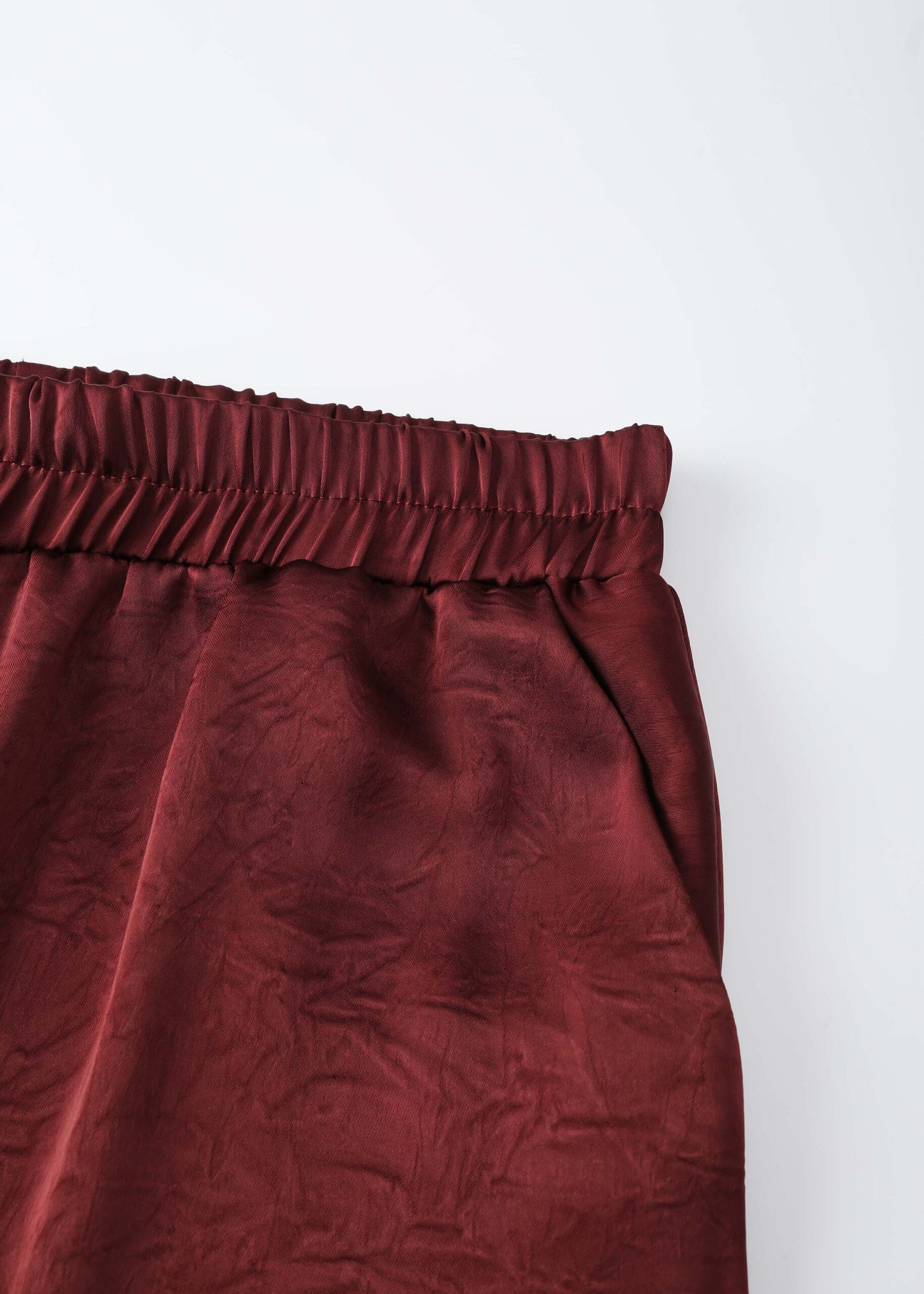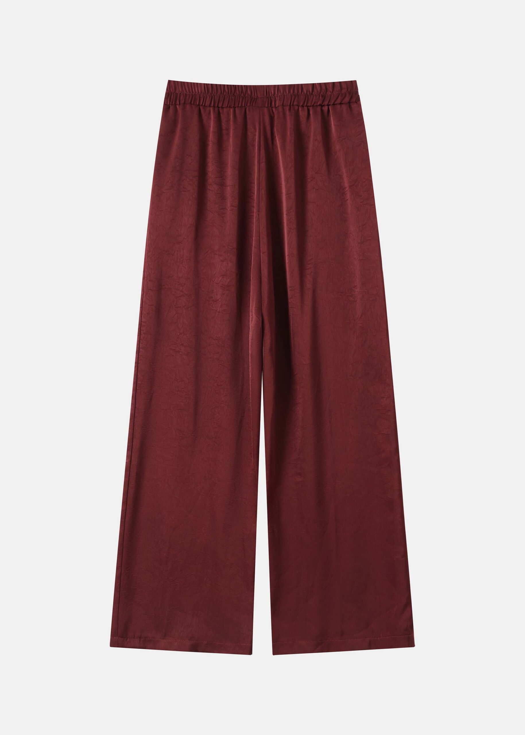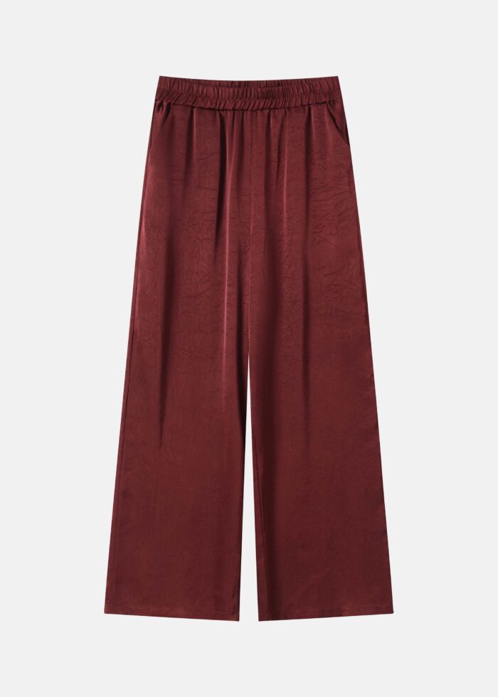 Women trouser, flow, satin, crinkled, elastic waist, front pockets, unique and modern