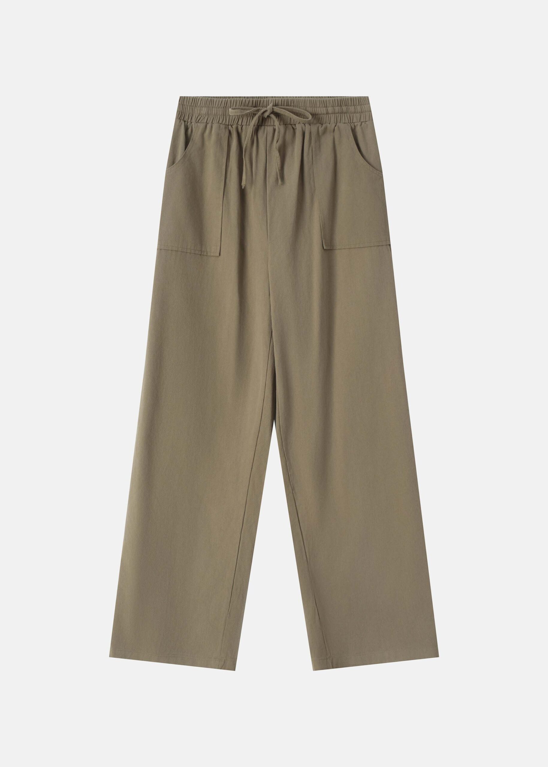 Women trouser, elastic waist with front tie, front patch pockets, fake pockets from the back, unique and modern