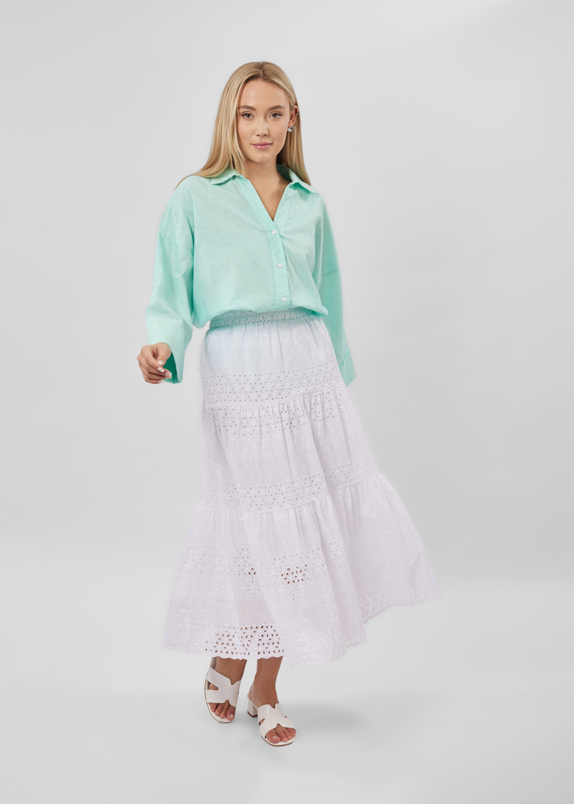 Women skirt, midi length, embroidery, layers, elastic waist, unique and suitable with many styles