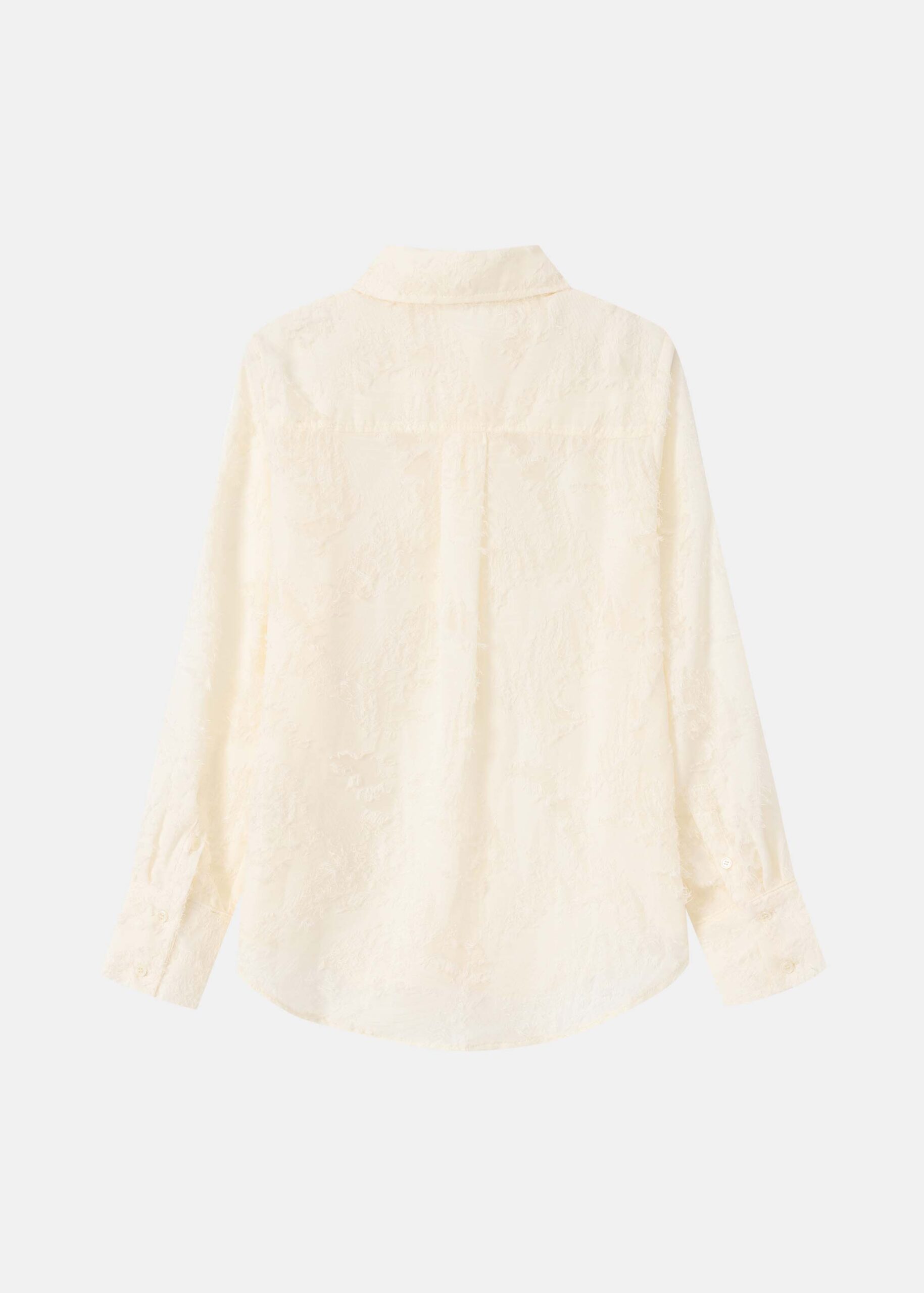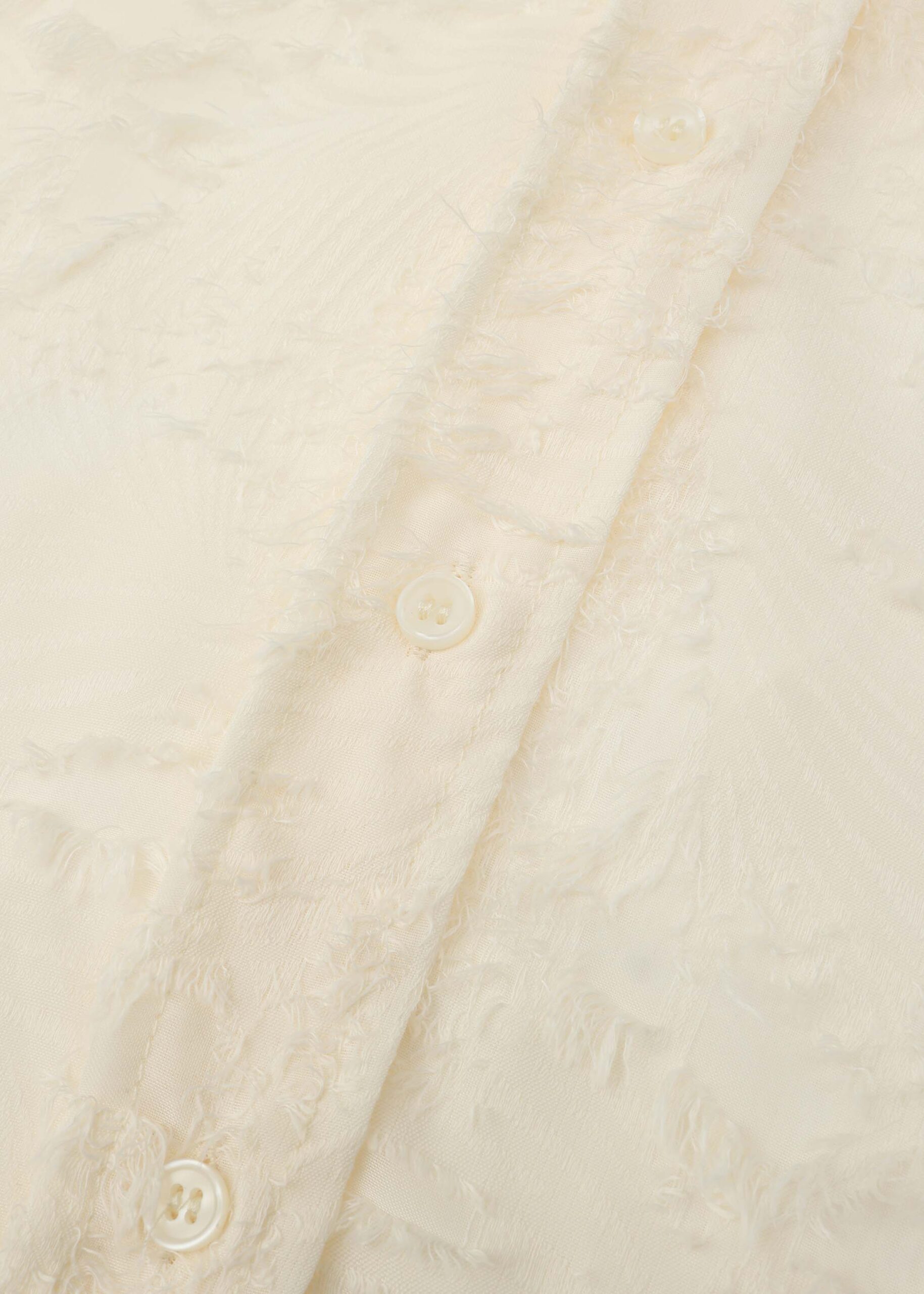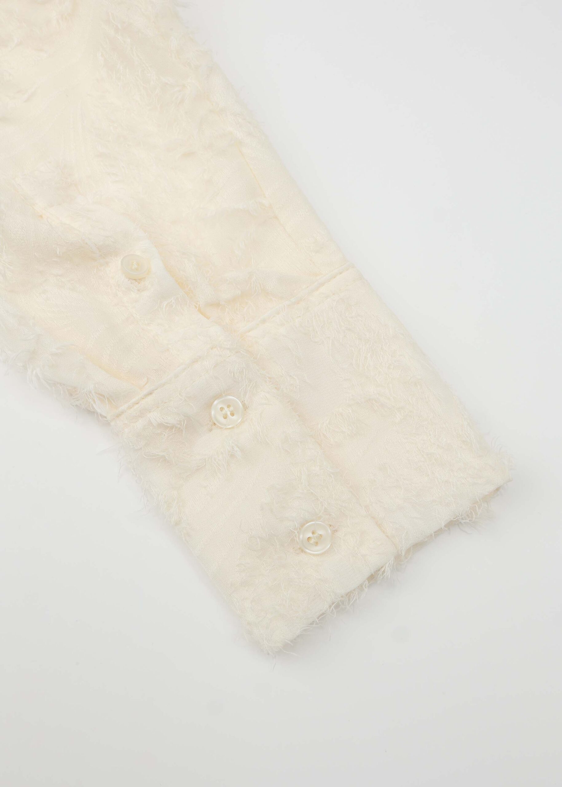 Women shirt, embroidery, hairy design, rolled collar with front button, front buttons to clos,e long sleeves, tight cuff with buttons, unique and modern