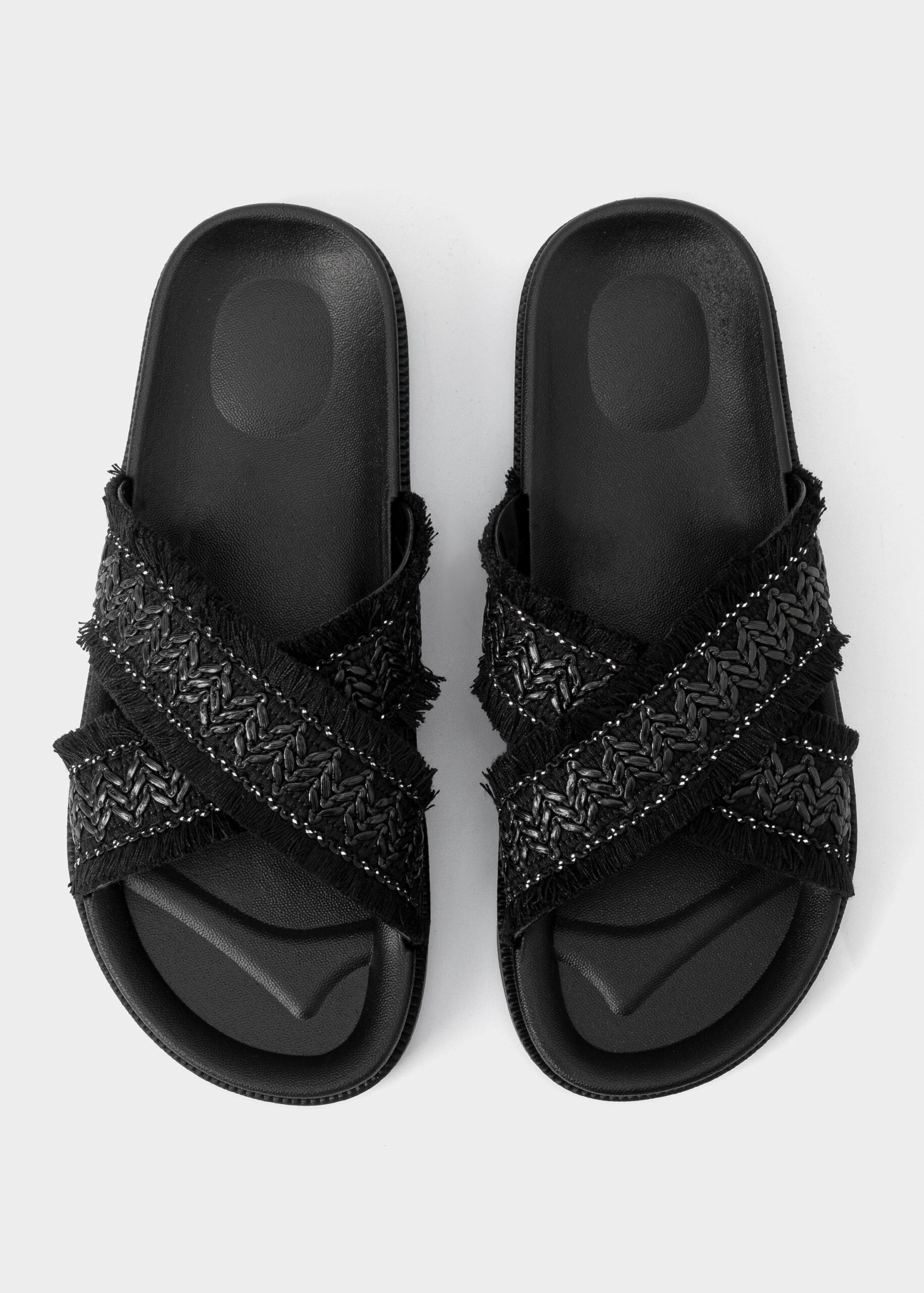 Women slipper, flat, open round toe, upper cross straps with embroidery design, comfortable and unique
