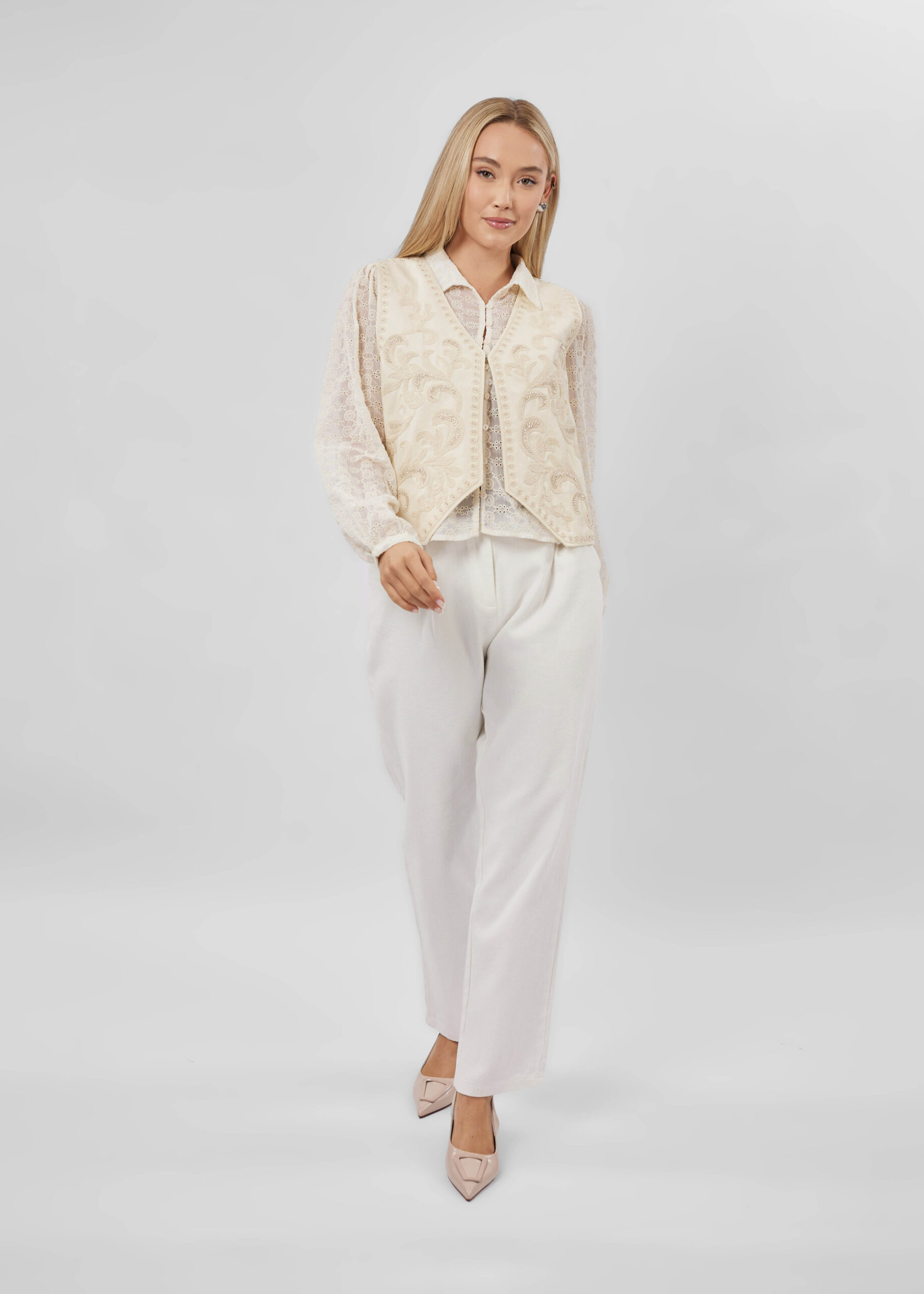 Women vest, embroidery design, V neck, open, sleeveless, unique and modern