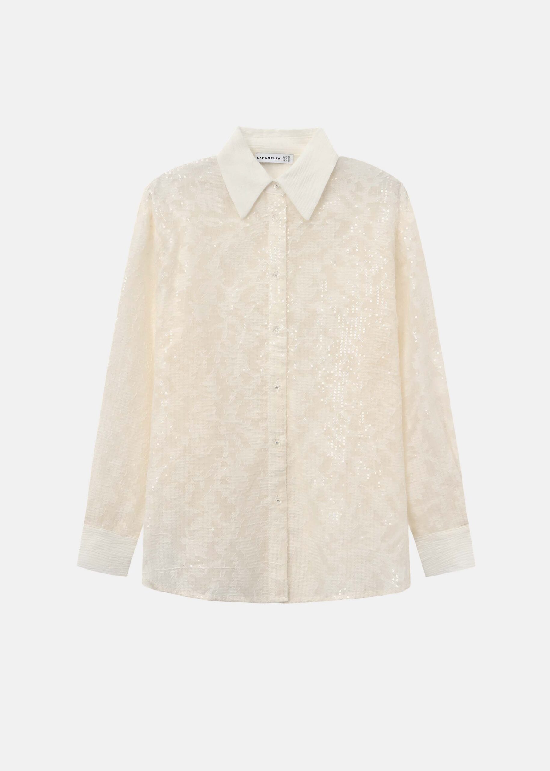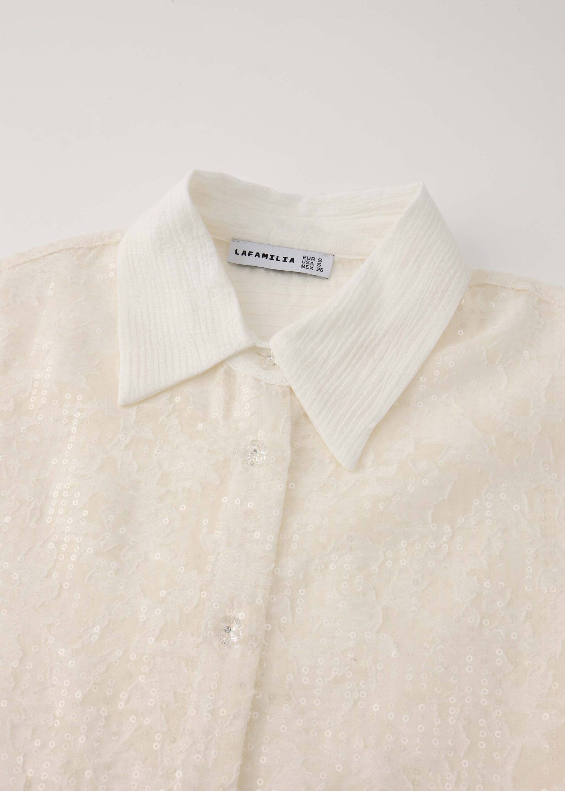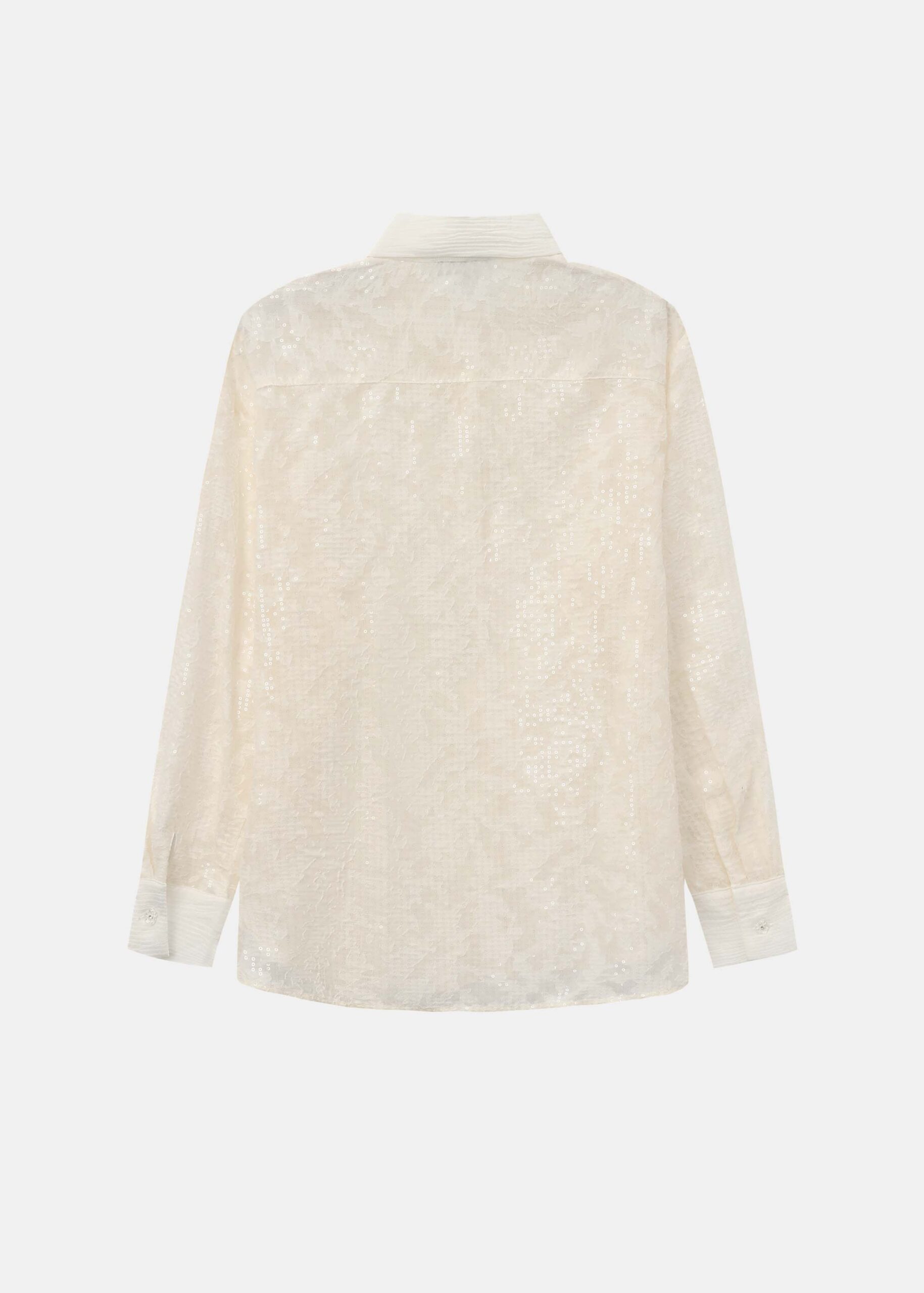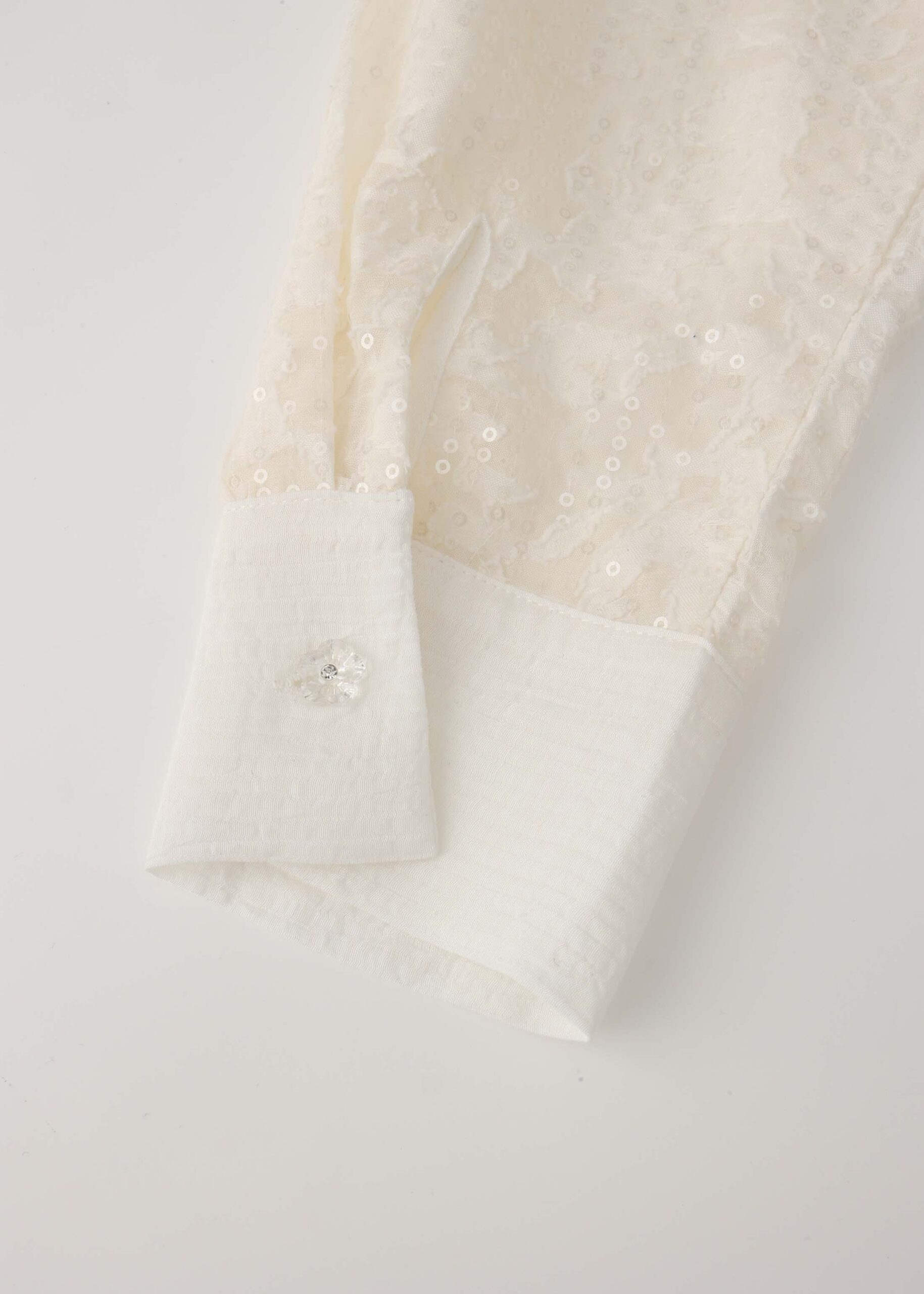 Women shirt, embroidery, beads decor, front buttons to close, long sleeves with tight cuff, rolled collar with front button, unique and modern