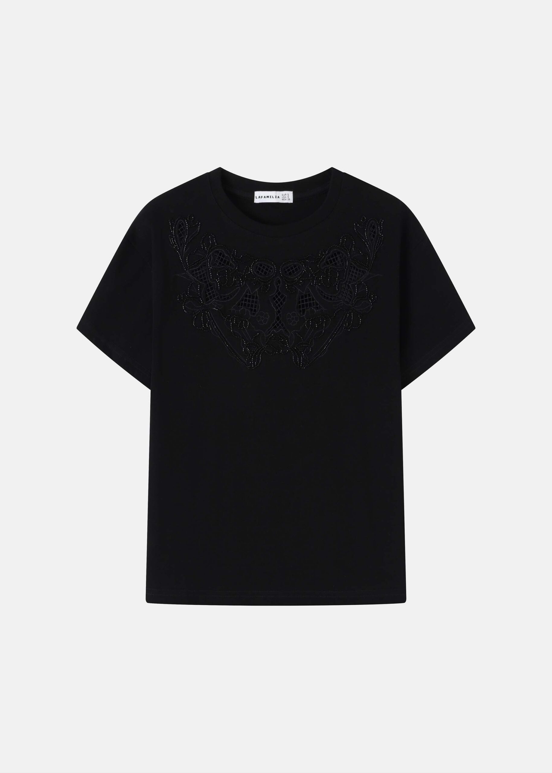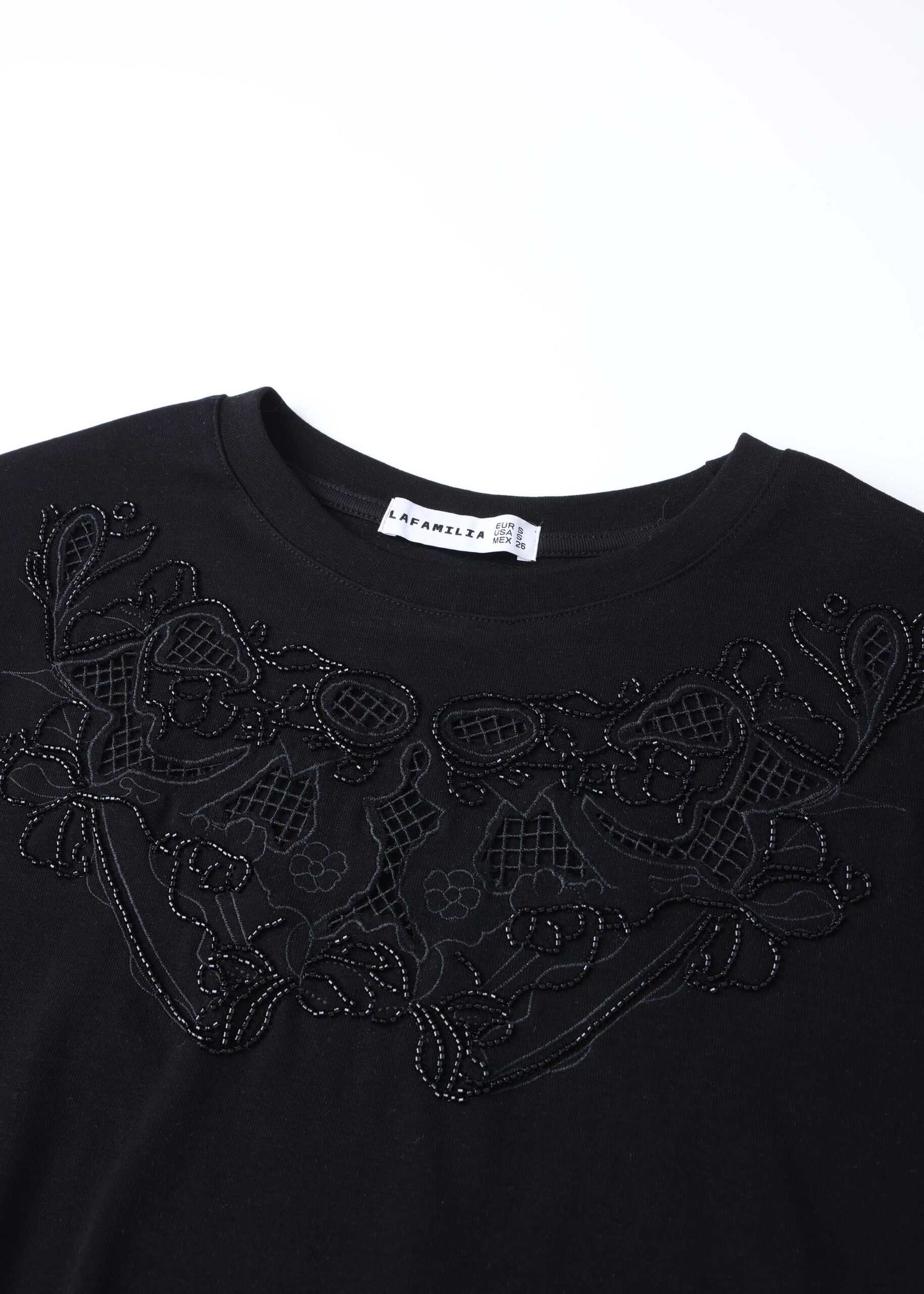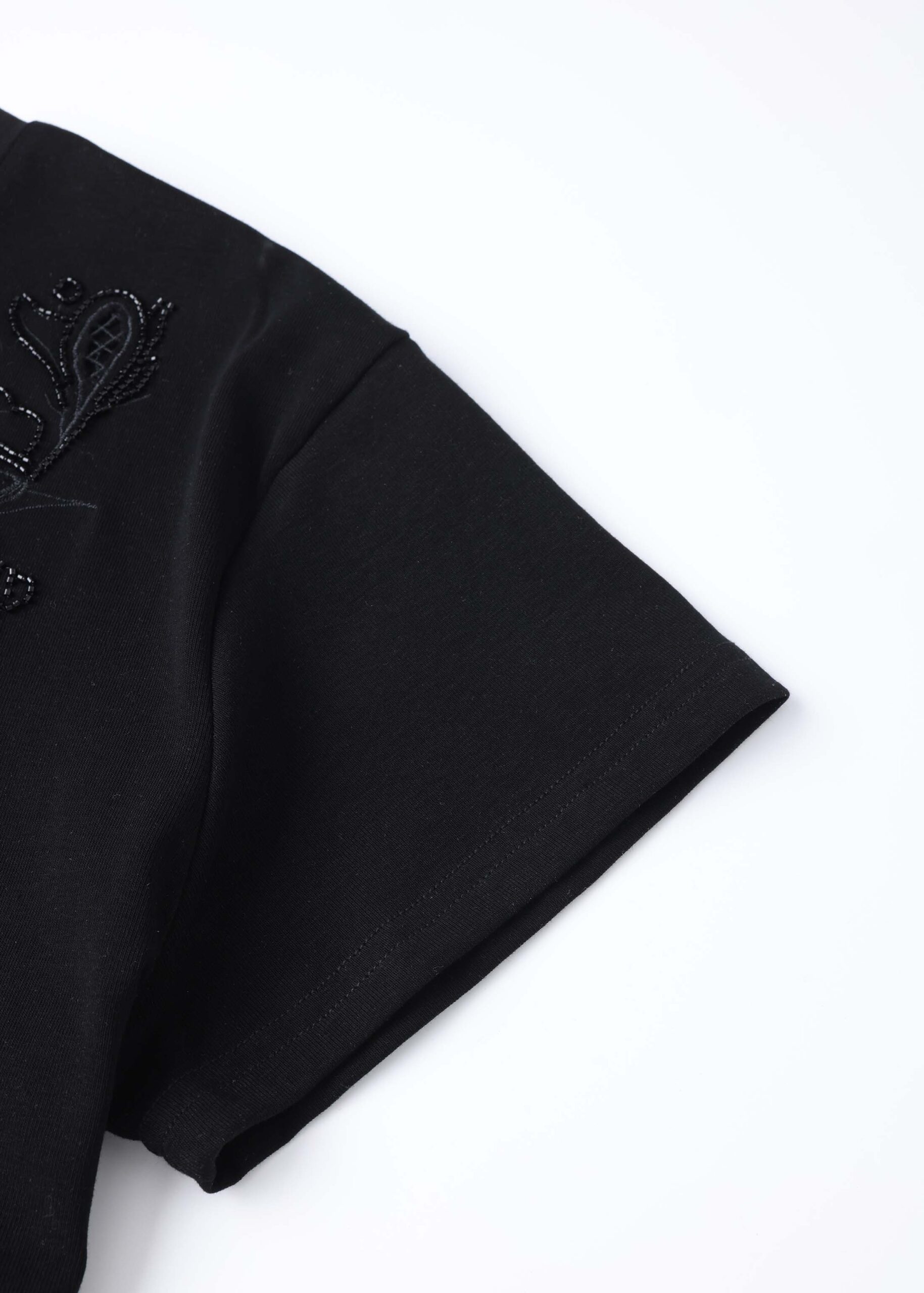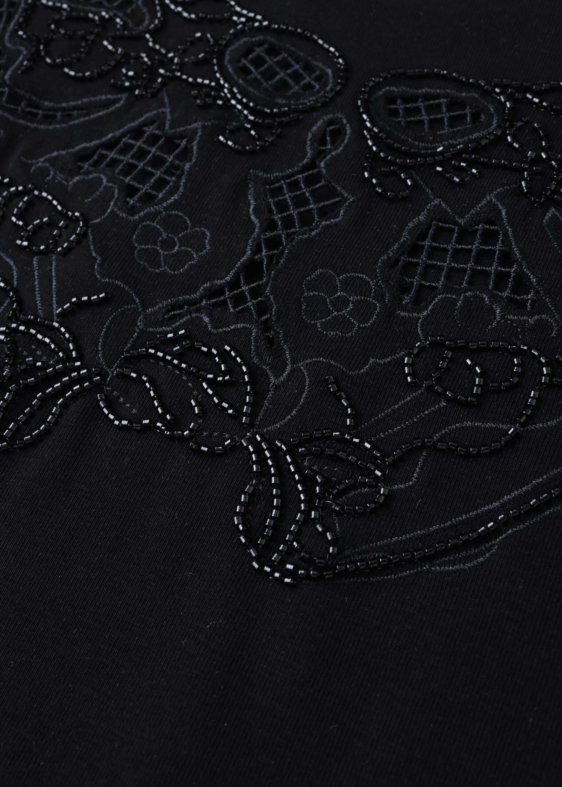 Women top, eyelet embroidery design from the front with beading decor, round neck, short sleeves, unique and modern