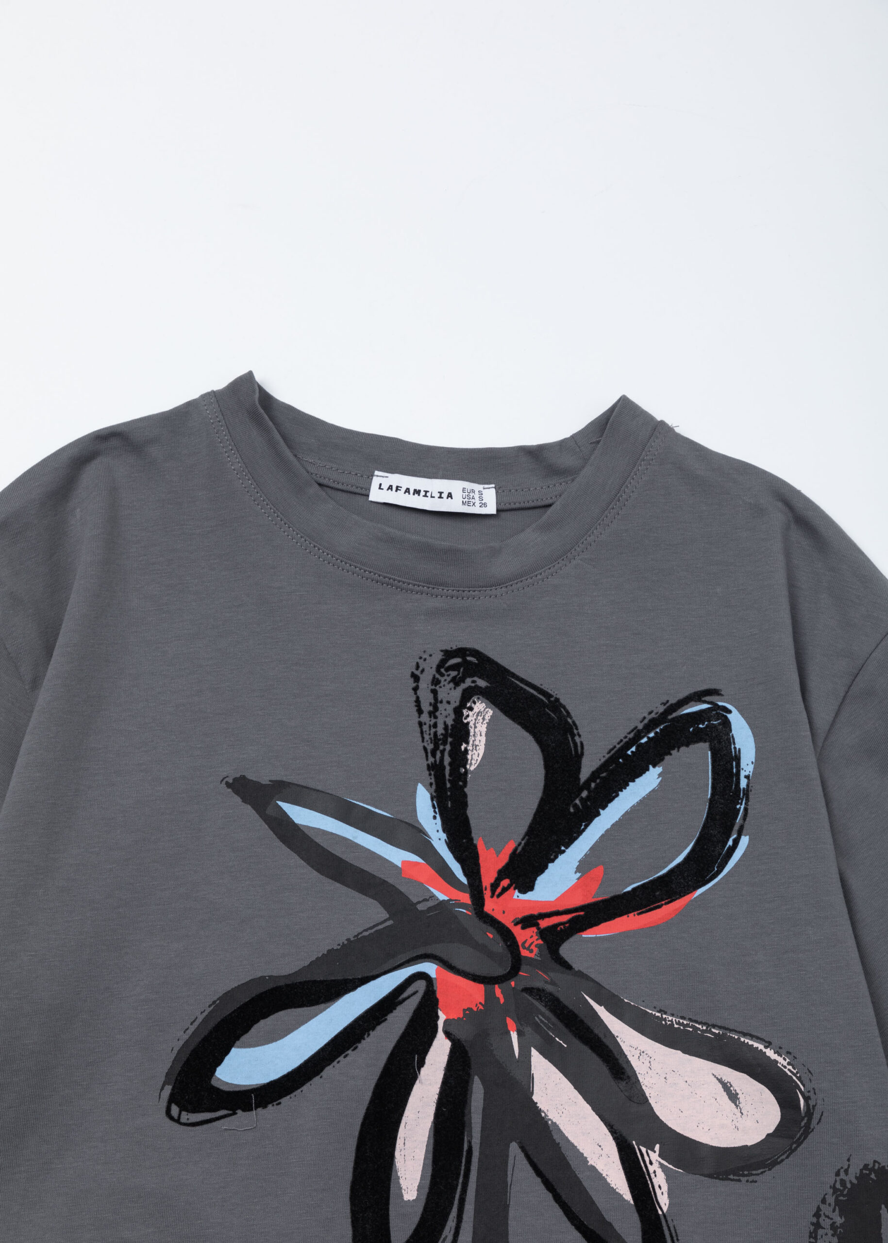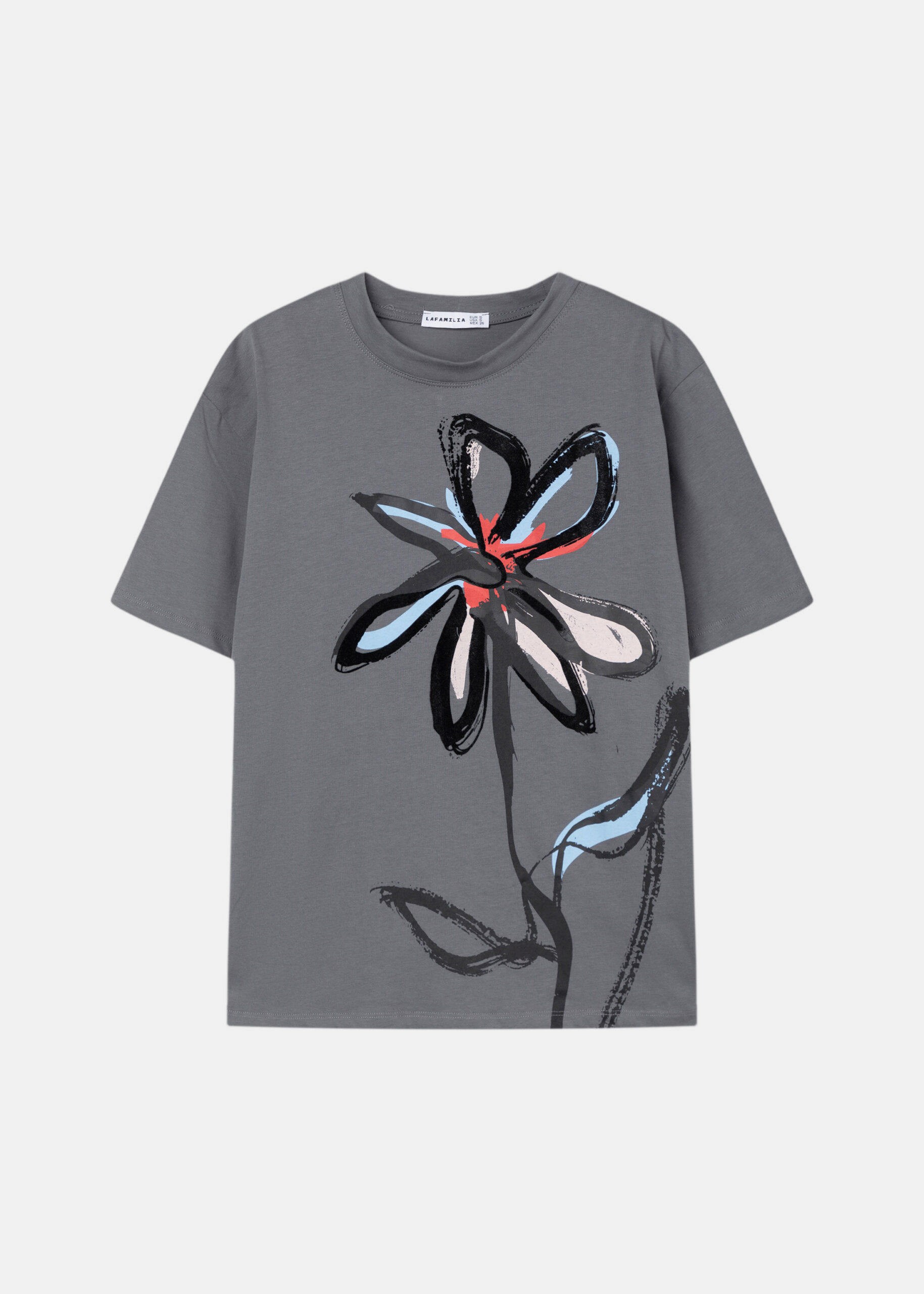 Women t-shirt, flower printed from the front, round neck, short sleeves, unique and practical