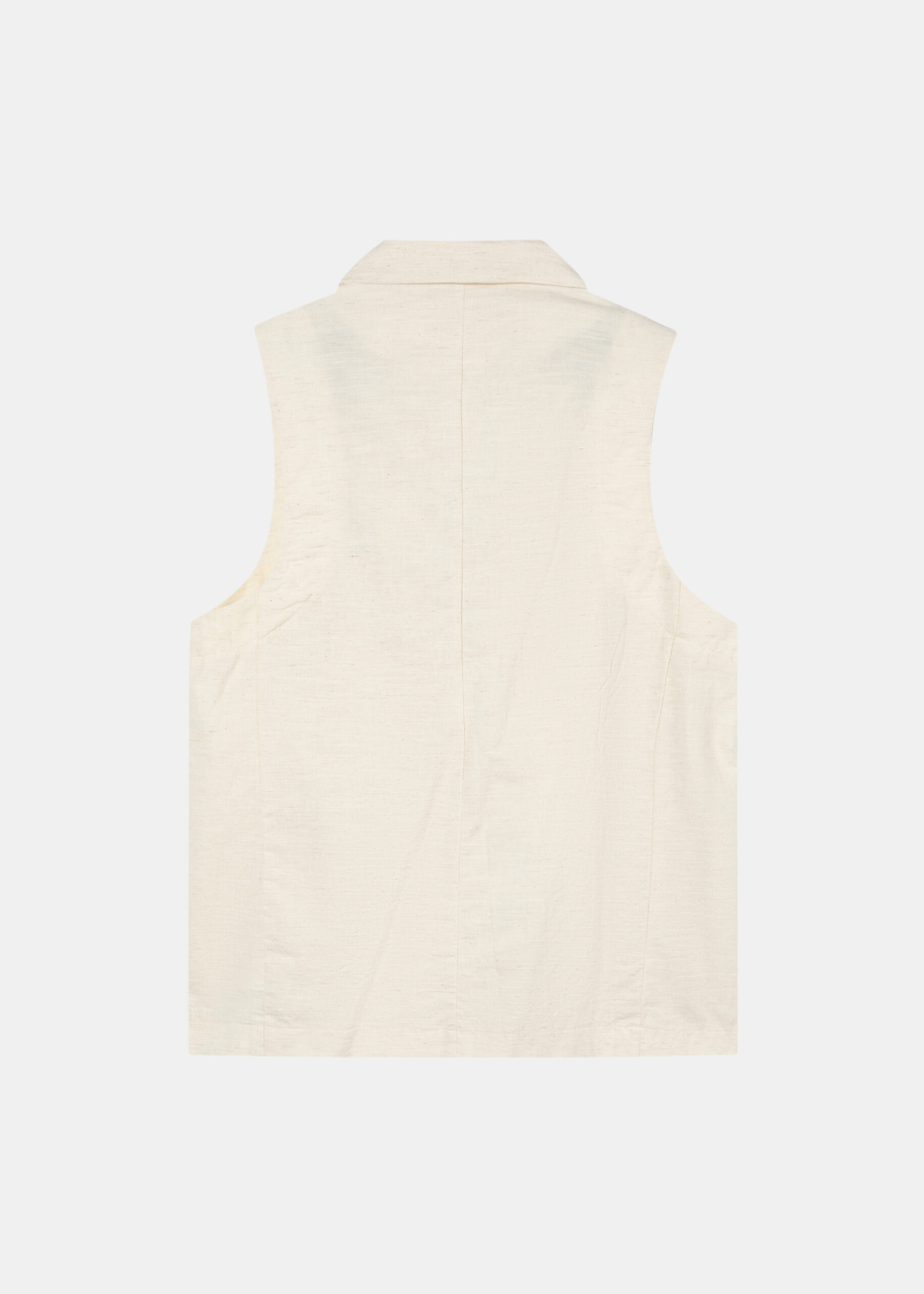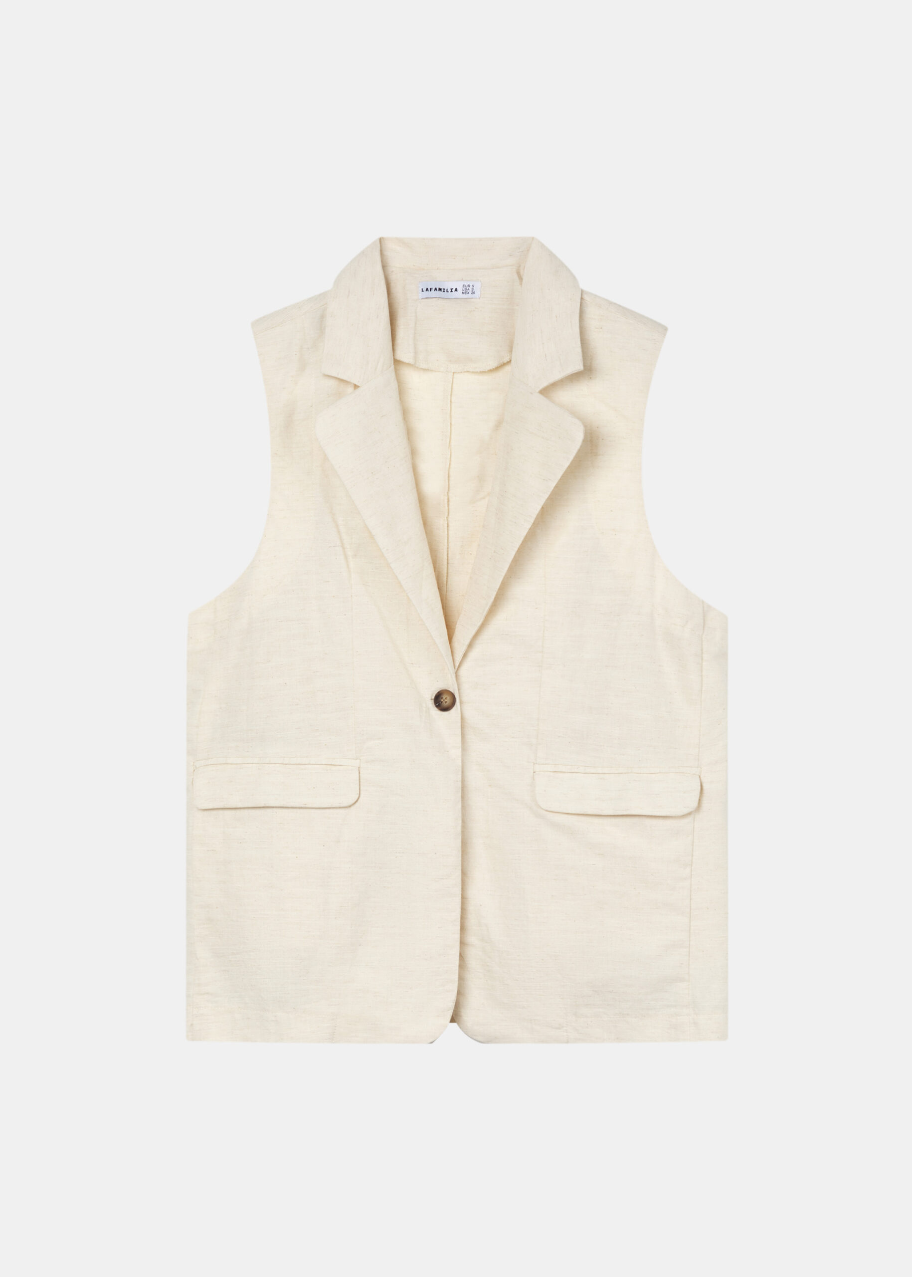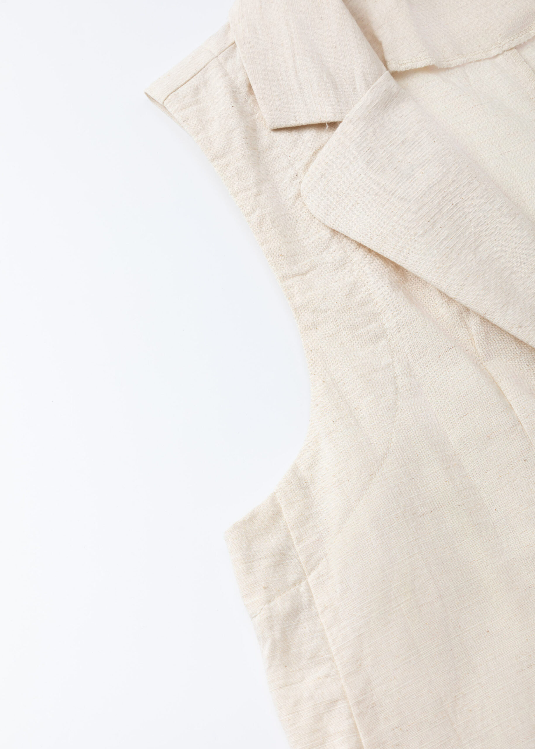 Women vest, formal, plain, sleeveless, V rolled collar, front button to close, front fake pockets, unique and modern