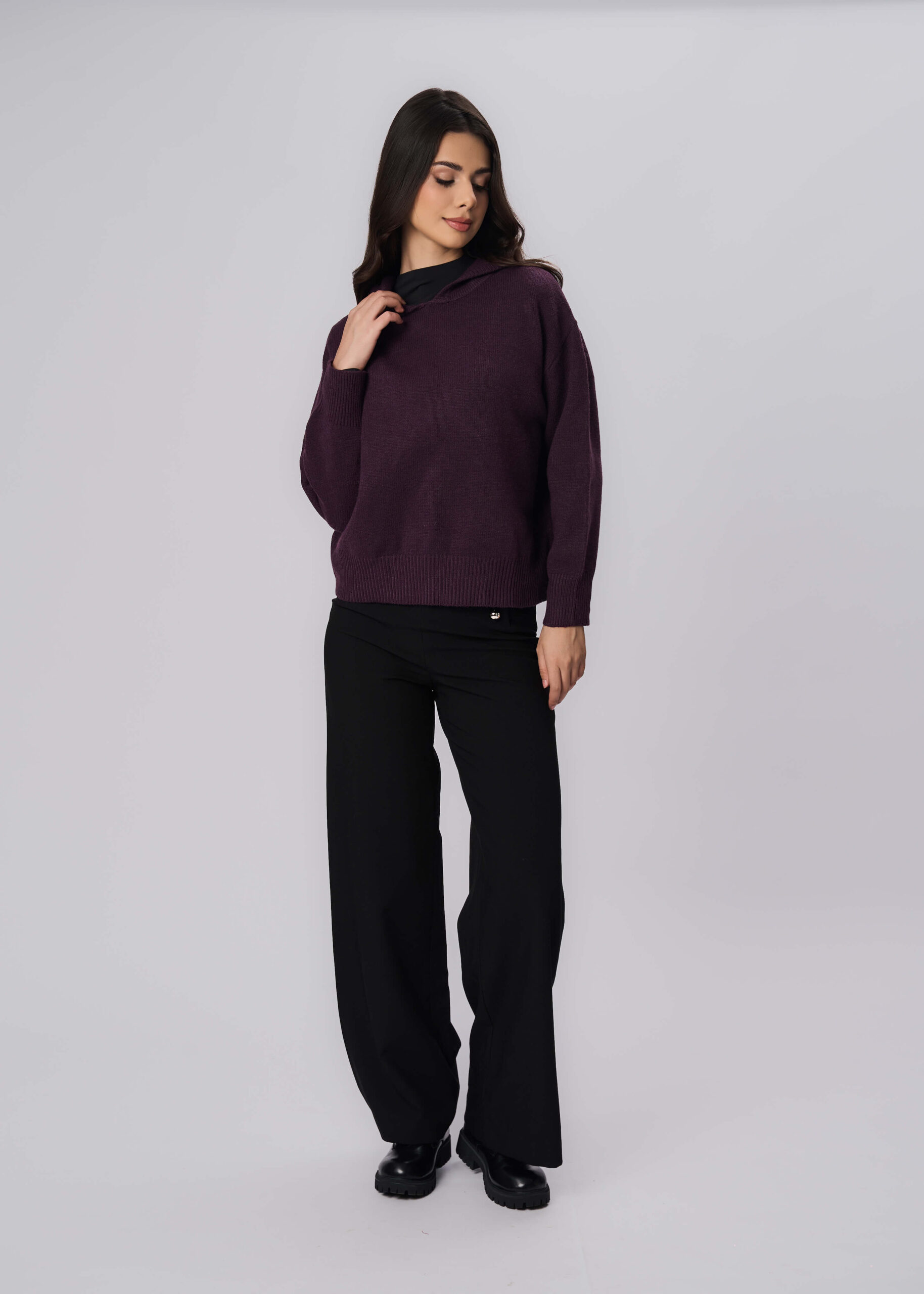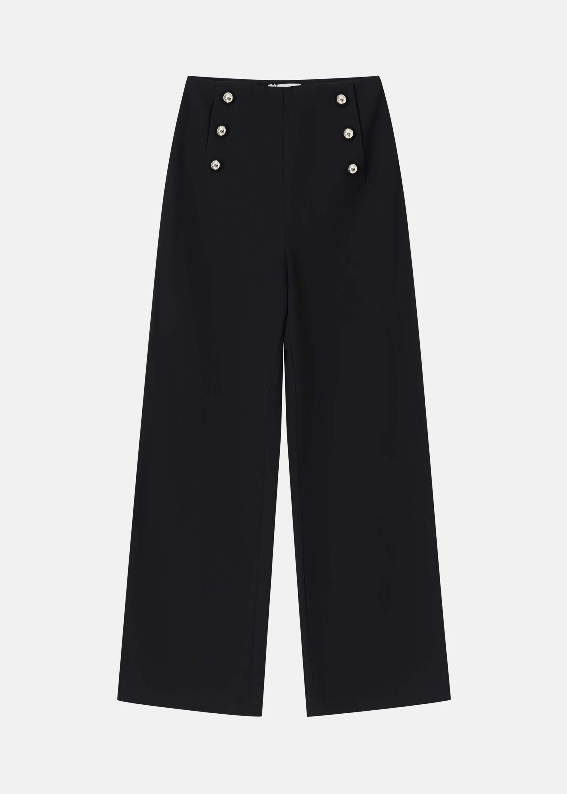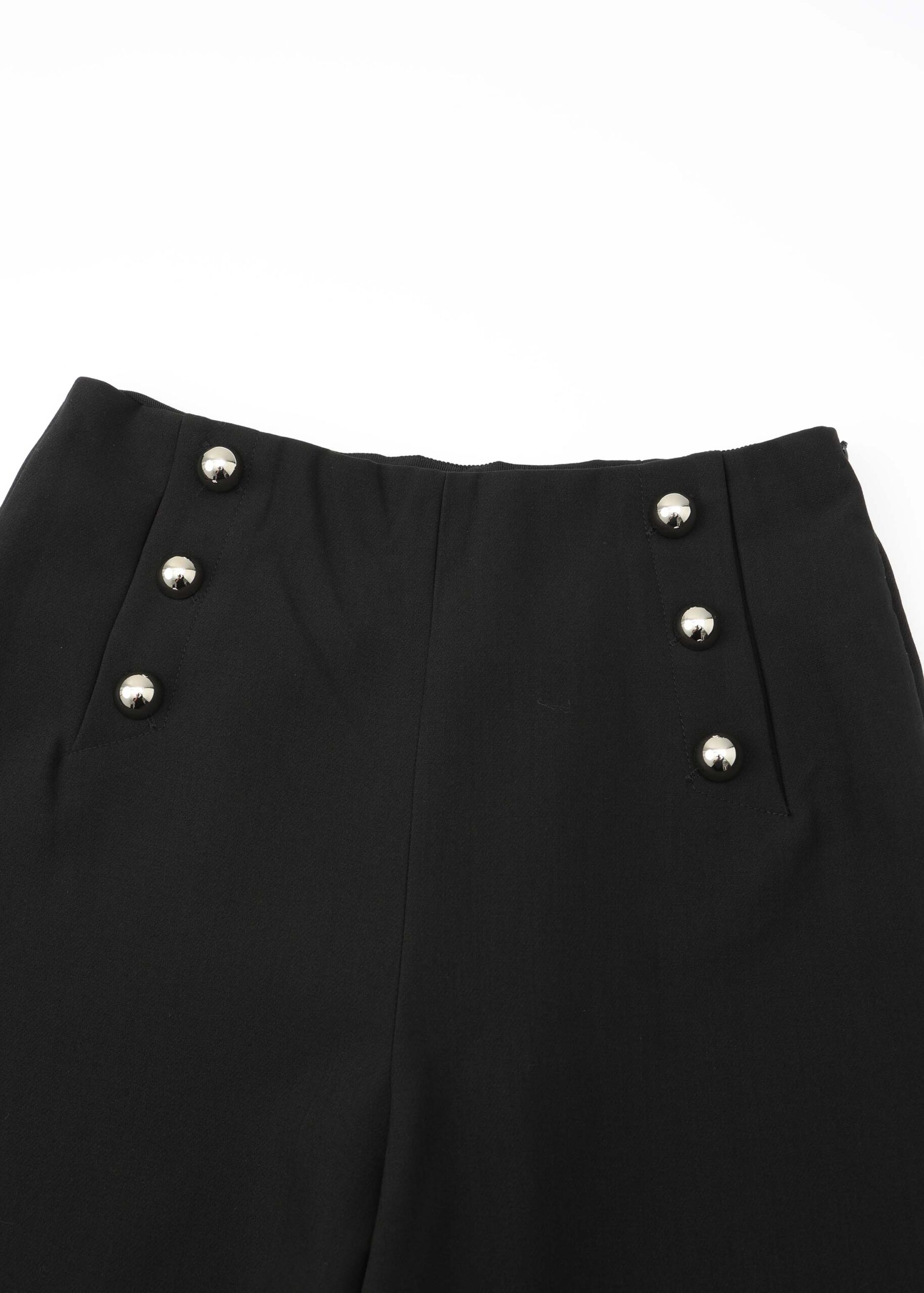 Women trouser, formal, flow, high waist, front buttons decor, side zipper closure, back pocket, unique and modern