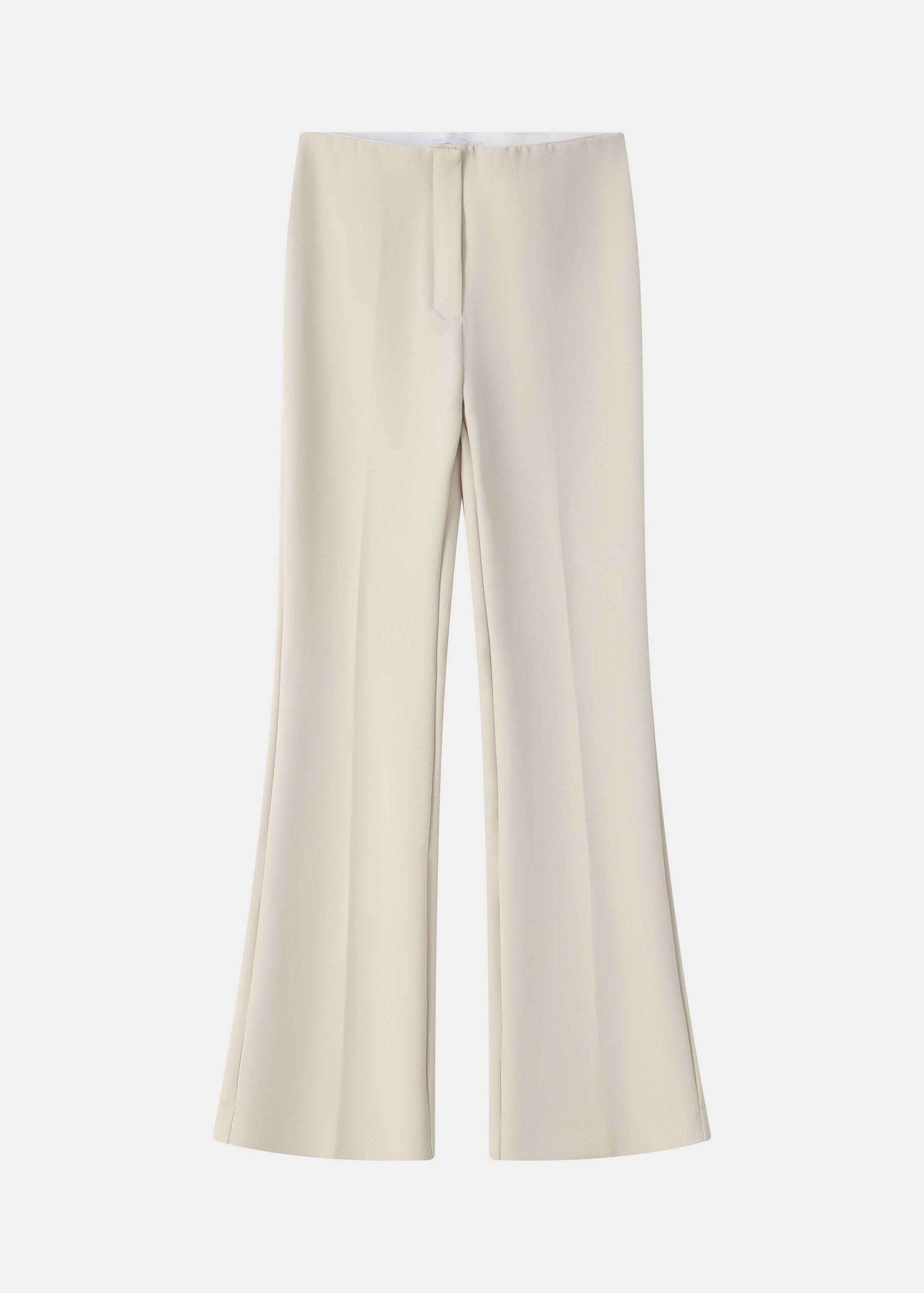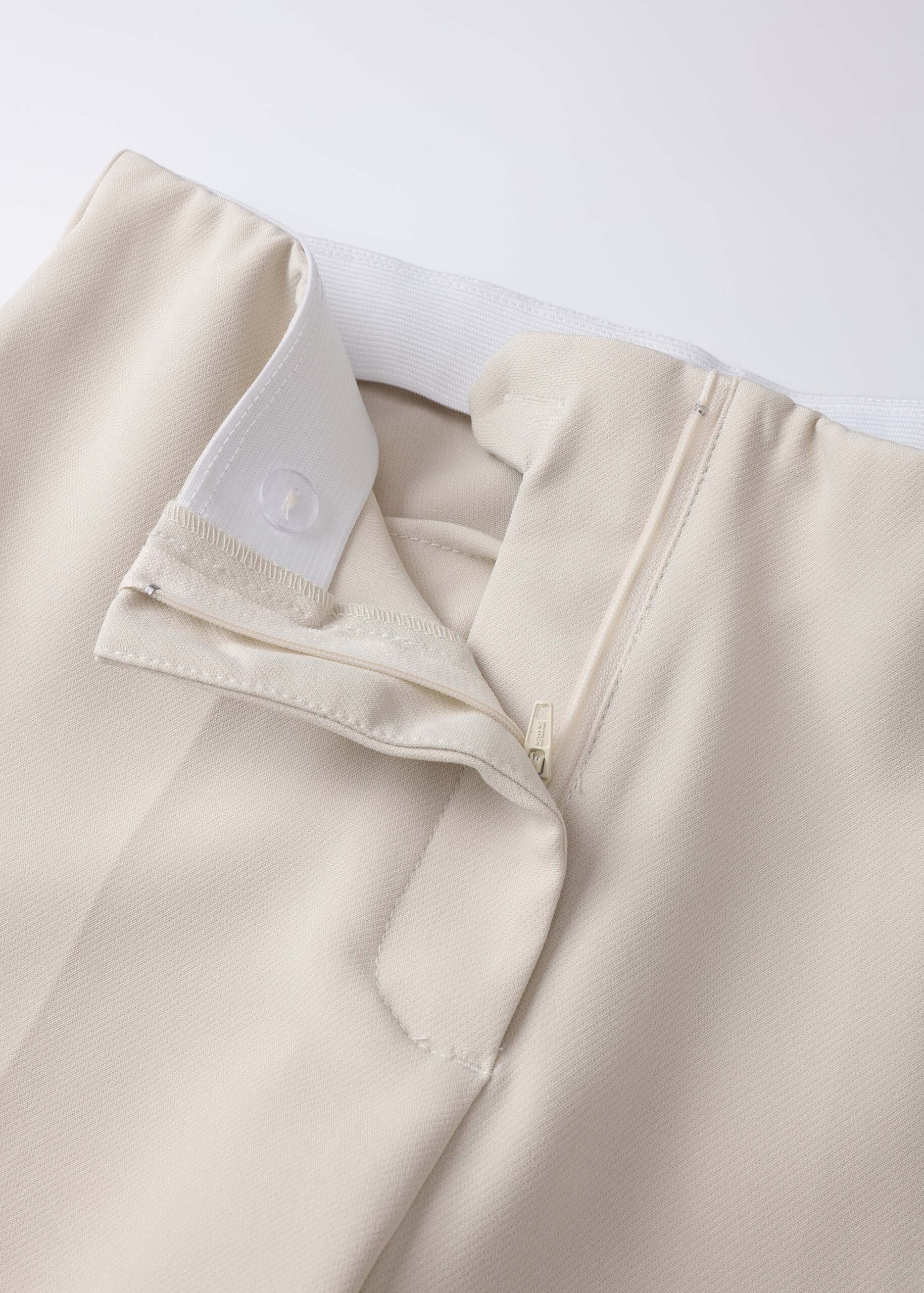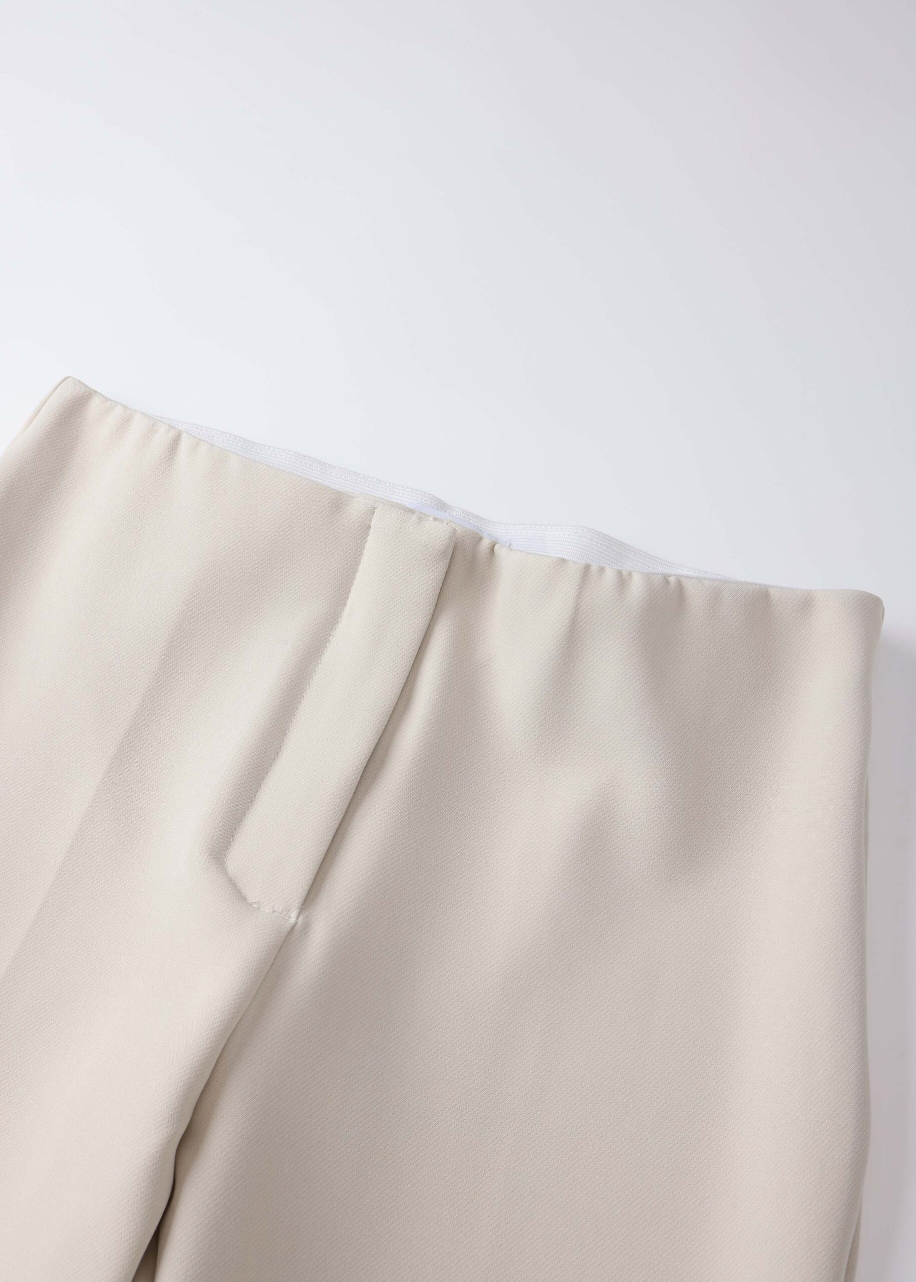 Women trouser, high-waist, straight-leg, front button and zipper closure, unique and modern