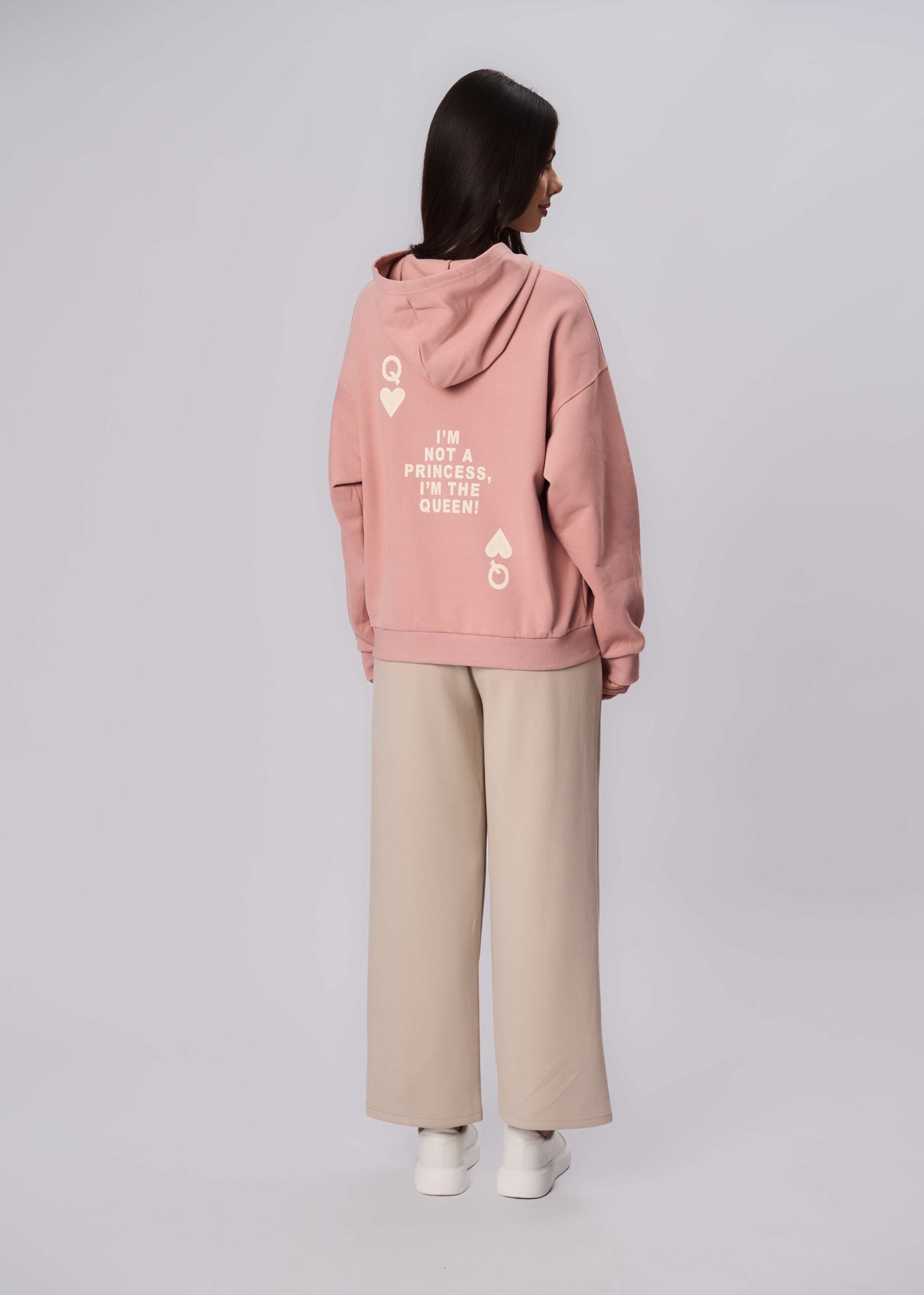 Women hoodie, “I’m not a Princess I’m the Queen” printed from the front, hood, front pocket, long sleeves with tight cuff, comfortable and warm