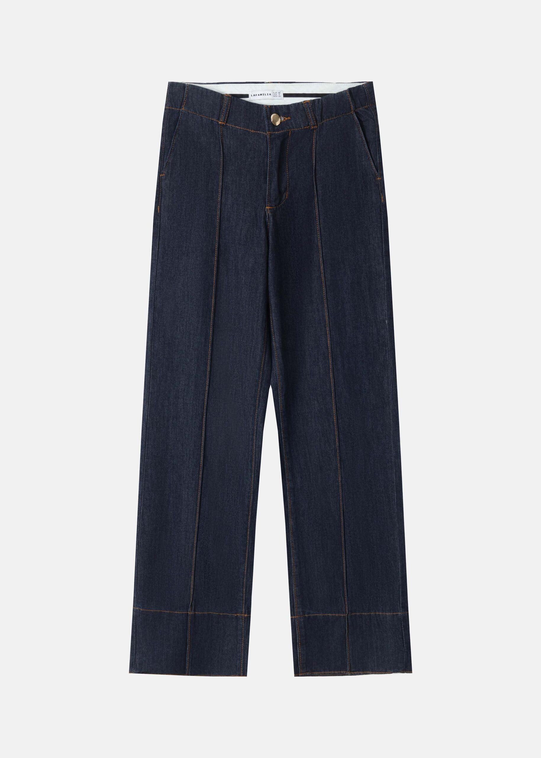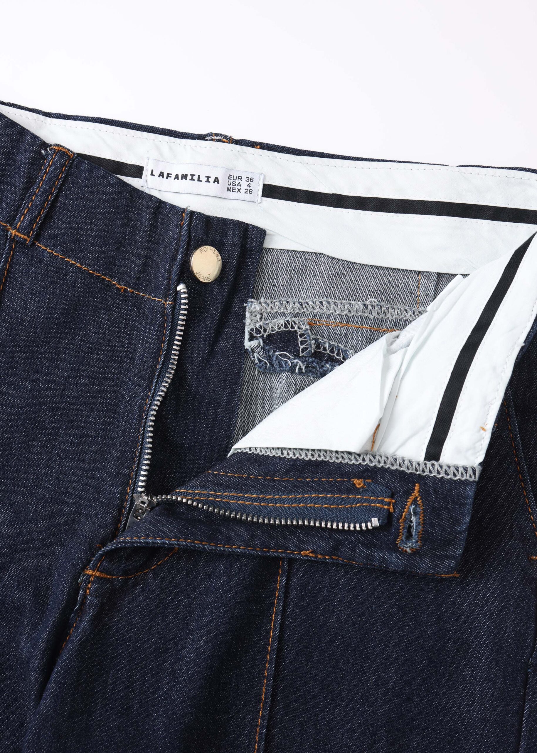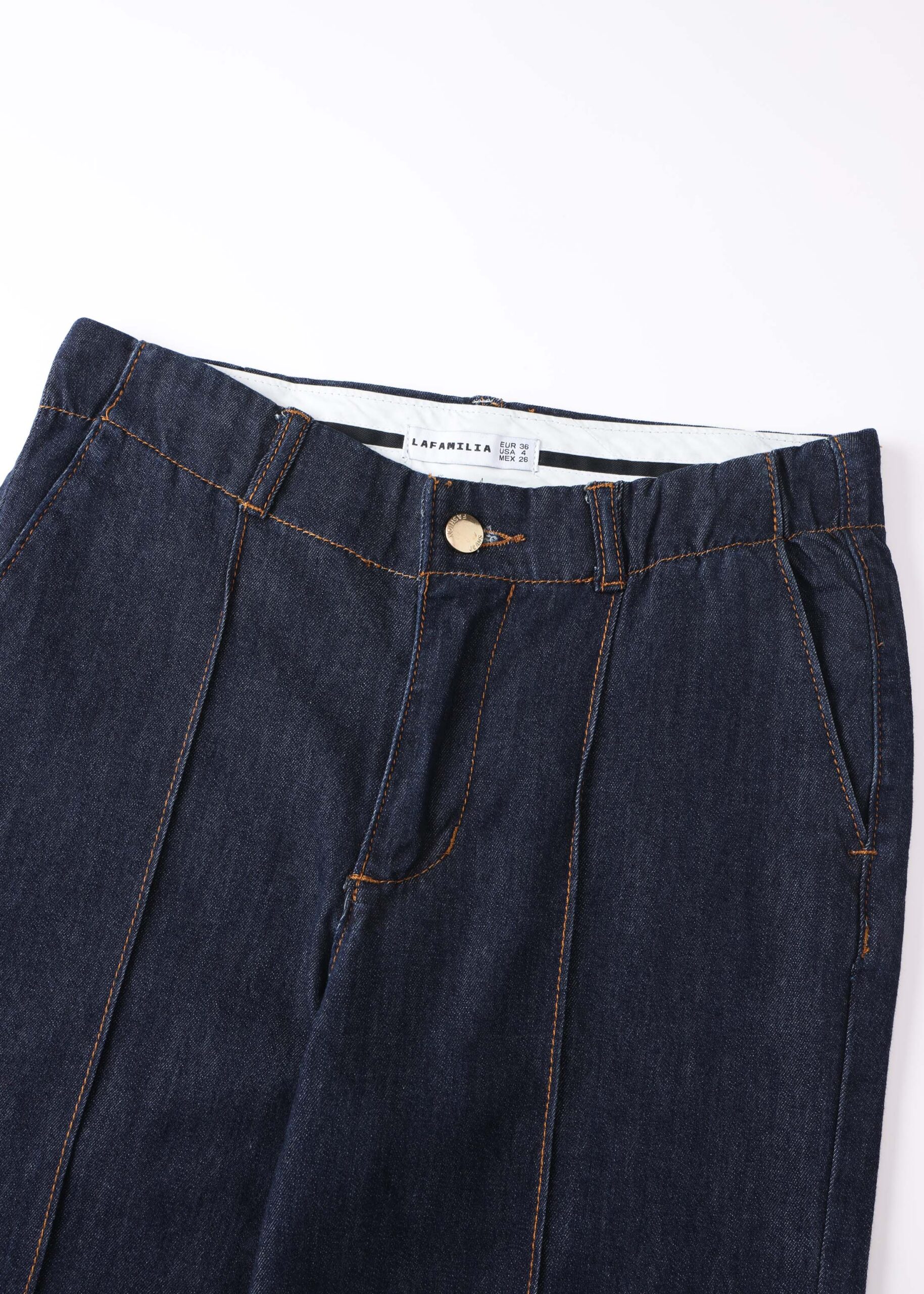 Women trouser, jeans, stitching details, front button and zipper closure, front and back pockets, unique and modern