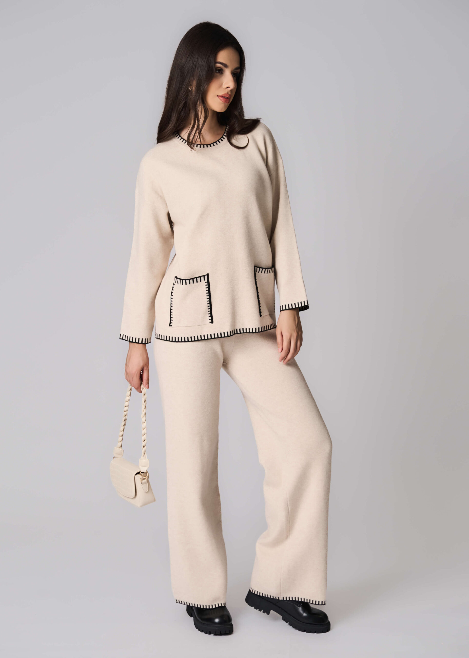 Women trouser, knitted, plain, flow, elastic waist, embroidery design from the bottom, unique and modern